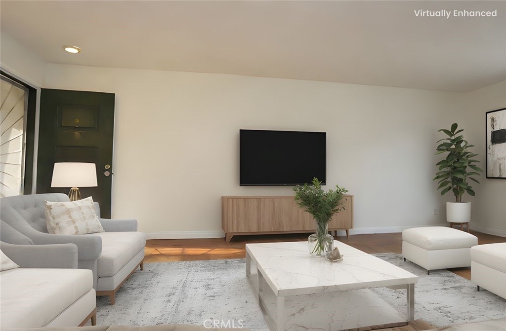 This updated 2-bedroom, 2-bathroom condo is located in the Casa Del Amo community in Fullerton. The home features fresh interior paint, laminate flooring in the living room, hallway, and bedrooms, and tile flooring in the kitchen and bathrooms. The functional layout includes a primary suite and central heating and air conditioning. Enjoy a private back patio, two assigned carport spaces, and access to the community pool. The monthly HOA dues cover water, trash, and gas utilities. Conveniently located near Cal State Fullerton and within the Fullerton Joint Union High School District.