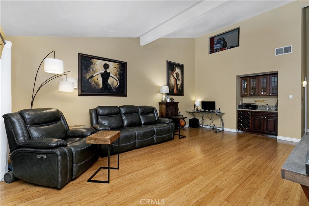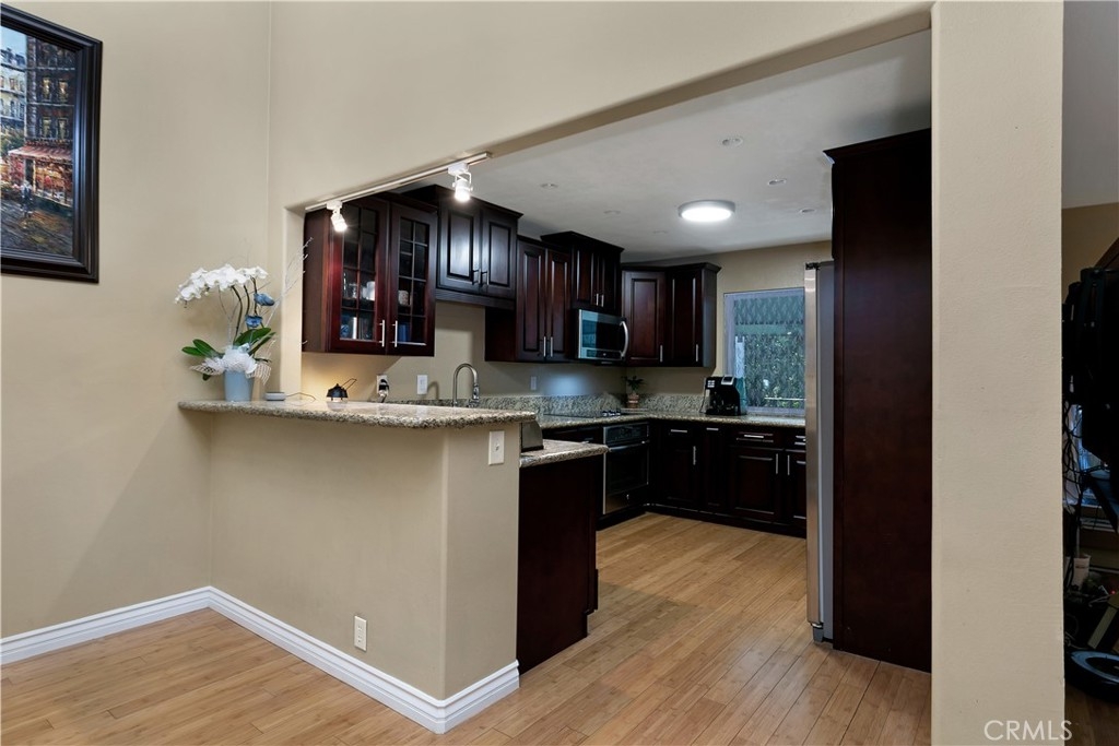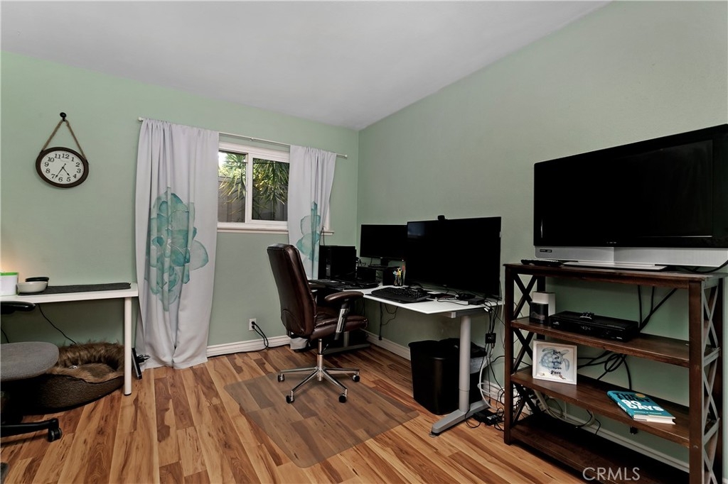 Charming upgraded 2 bedroom + large den/office home in the wonderful Casa Del Vista neighborhood. This expansive floor plan provides an open and bright living room with built-in wet bar, vaulted ceilings and access to covered balcony. The gorgeous kitchen has granite counters, cherry cabinetry, stainless steel appliances, and separate dining area. The spacious master bedroom has a walk-in closet, an oversized bath and access to the serene patio. Second large bedroom has a beautiful walk in closet with newer closet organizer. Third bathroom with enclosed laundry area. The den is easily converted into a 3rd bedroom. Two-car garage with vaulted ceiling garage with a 19 x 6 storage area. Additional features include double paned windows throughout. Wonderful community amenities include pool, jacuzzi, tennis court and club house!