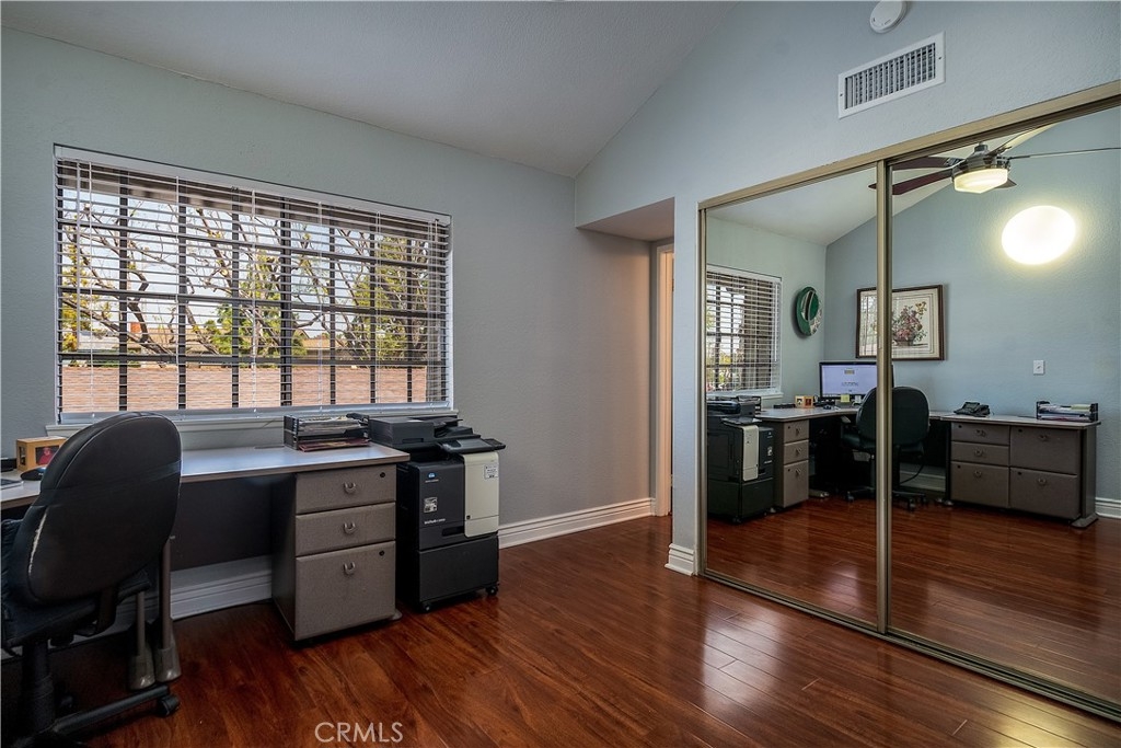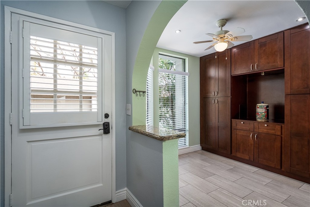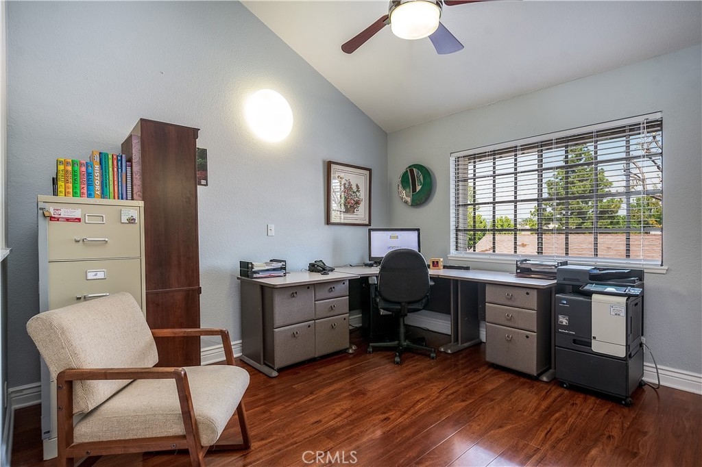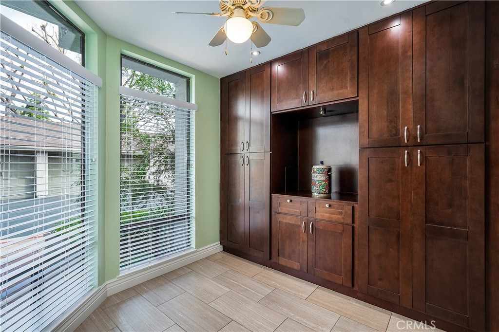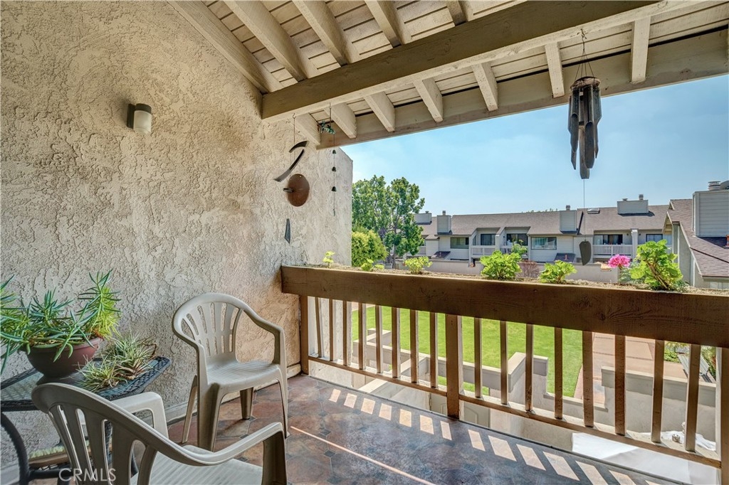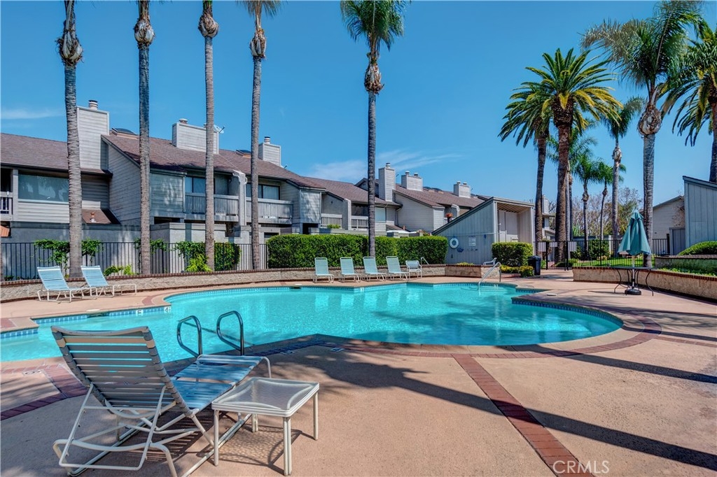 Great opportunity to own a unit at the Chapman Villas Townhomes community in Fullerton. Waiting for you to call home is a charming 2 bedroom, 2.5 bath home with a bonus room/office. This move in ready unit features an updated kitchen with recessed lighting, granite counter tops, multi-color backsplash and beautiful soft close cabinets with lots of storage space. The kitchen opens up to the dining area that has an open space concept with the living room. In the living room you will find high ceilings and a fireplace you can enjoy during the winter months. The laundry area is conveniently located inside the unit. The primary bedroom has a lovely vanity, two closets, a loft and a balcony that is facing the community courtyard. The second bedroom has a closet and a full bath. The home has an enclosed, private patio area with access to the community courtyard. For parking you will find a detached two-car garage that can also be used as storage. The community has pool and spa area you can enjoy during summer months.