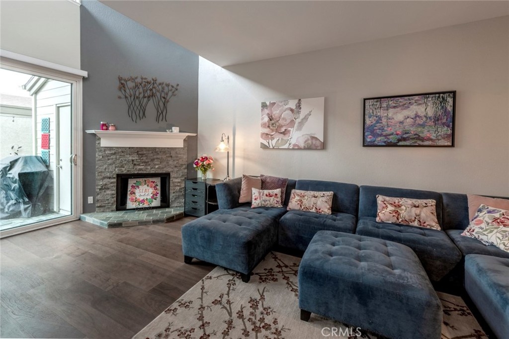 Desirable 'Chapman Villas' Townhome, with no one above you or below you. Great location in this smaller community within walking distance to good shopping, dining, Fullerton College and Cal State Fullerton.  Easy access to 57 and 91 freeways.  Unit has 2 bedrooms - both with ensuite remodelled bathrooms, mirrored closet doors, closet organizers, and remote-control ceiling fans.  Master bedroom includes a covered balcony that looks over the association pool and jacuzzi.   Professionally remodeled kitchen, quartz countertops, newer appliances, custom maple cabinets and new wood flooring downstairs. Additional features include dual glazed windows, dual glazed skylights, new HVAC (2016) Nest thermostat, water heater recirculation unit, newly installed front door with security screen, and wood-burning gas fireplace. Private, tiled patio with a gas barbeque is great for entertaining with easy access to the pool/spa area. Extra wide double garage with built-in shelves is located right across from the unit. Located in the Troy High School District, close to CSUF, the 57 & 91 Freeways, and close to Downtown Fullerton’s arts and entertainment district. HOA includes water/trash, pool, spa and several play areas for kids and pets.