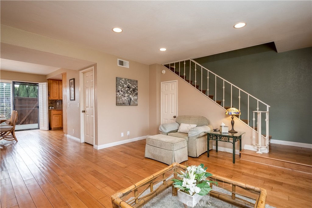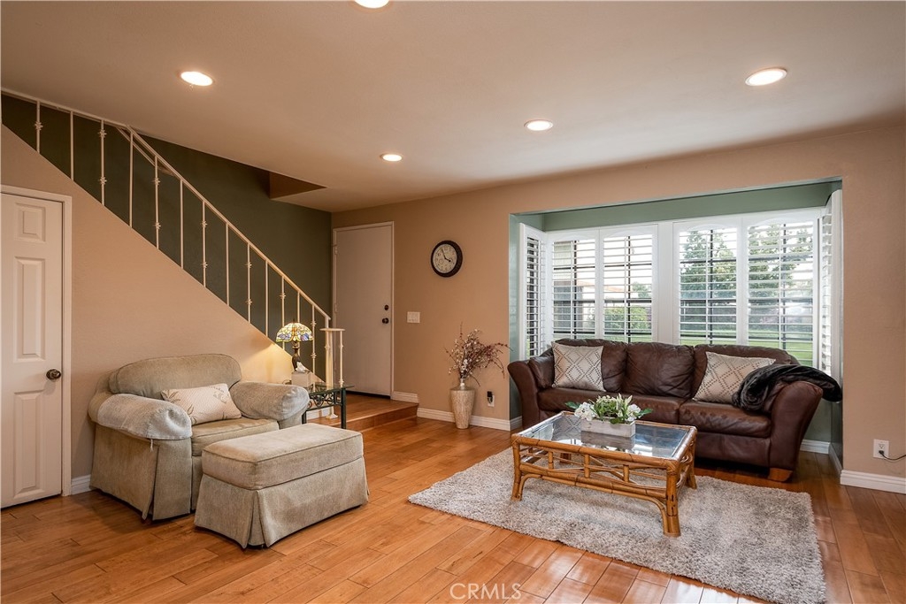 Welcome home to Chelsea Park! Call the movers, this home is ready for you to move right in! Located in a quiet peaceful, gated community, this hidden gem is the one! Enjoy 2 master suites upstairs that have lots of space with full baths attached. The Wet Bar is off the living room and is a true delight for your guests! Additional features include: Beautiful Hardwood floors, quality carpet in the bedrooms, Plantation shutters throughout, Granite, Ceiling fans and recessed lighting. The private laundry room off the downstairs bath has plenty of room for storage and offers plenty of convenience!! Enjoy overlooking the lush green grass and sparkling community pool, just in time for summer! The large back patio area is perfect for barbecuing and entertaining. Enjoy plenty of fresh lemons from your own lemon tree!! HOA includes water and trash!!Plenty of guest parking, Close to shopping, restaurants and freeways. Dont miss this one!!