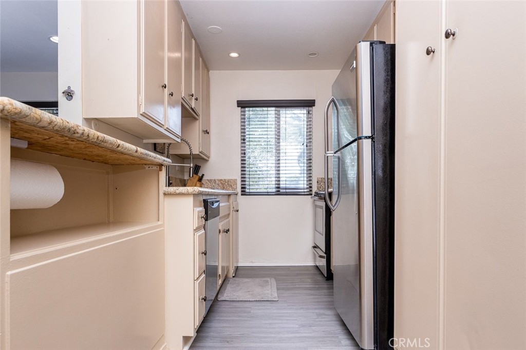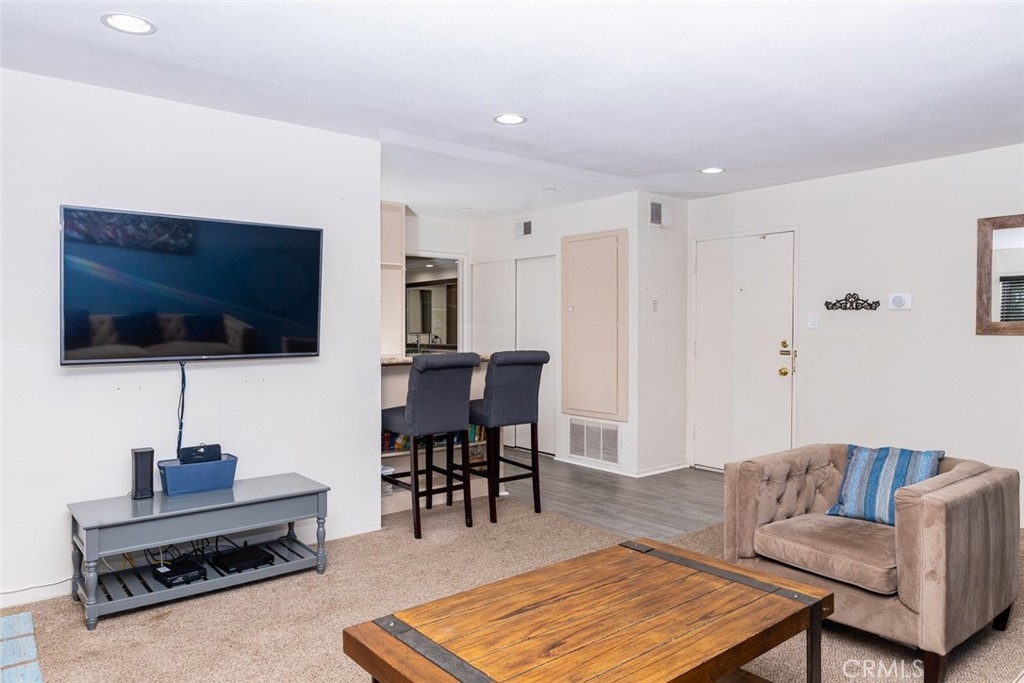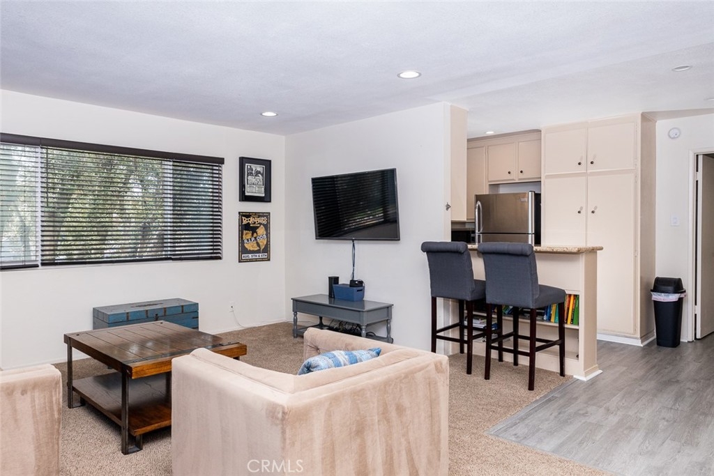 1 Bedroom/ 1 Bathroom on second story end unit so you only have neighbors on one side of you. Condo was completely remodeled three years ago. Central air conditioning system was completely replaced one year ago. Water heater was replaced 6 months ago. New granite countertops, new kitchen sink and faucet. Sink cabinet was recently replaced and is brand new. Recess lighting through out the home. Carpet has memory foam padding for extra comfort. All windows were replaced with double pane sound resistant windows three years ago. New electrical panel installed four years ago. Popcorn ceiling removed and modern texture applied three years ago. New vinyl plank flooring installed one year ago. Light dimmers installed on most light switches. New high power toilet installed three years ago. New European vinyl tub/shower installed three years ago. Faux wood blinds are three years old and in good condition. Will remain with the condo at sale. Quiet and calm neighborhood. Unit is located in the A building which is the nicest of the four buildings. Community is gated and centrally located walking distance to Cal State Fullerton. Close to 91/57/5 fwy, restaurants, gas station, bars, grocery stores, post office, coffee shops and public transportation. Parking is one covered carport spot and one permitted uncovered spot plus plenty of street parking. Amenities include: swimming pool and jacuzzi, laundry room on every floor of the building, gym with sauna, library, BBQ area, garden and fountain area, on site maintenance, elevators, spacious community entry area with couches and coffee table. All stainless steel appliances are three years old and in good working condition. Available to be purchased with the condo for ease of move in.