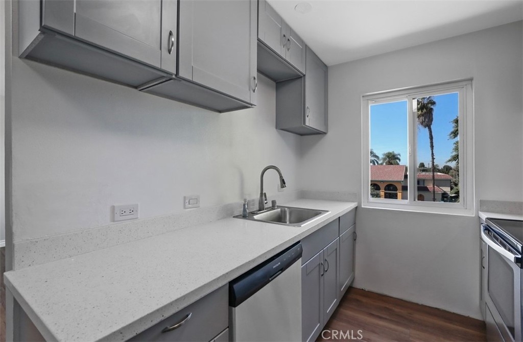 Exceptional 1 Bed/1 Bath End Unit Condo-COMPLETE REMODEL in the heart of Fullerton. Less than one mile from CSUF! NEW EVERYTHING-Kitchen; Cabinets with Appliance package, including dishwasher, spa-like shower with floor-to-ceiling tile, elegant bathroom with Granite TWO sinks, large mirrors, storage and NEW flooring and modern paint! Brand new hot water heater, lighting, garbage disposal, baseboards and ceiling fan too! Reserved covered parking with storage and guest parking also included. Amenities GALORE! Beautiful pool, hot tub, GYM with locker room, men and women individual Saunas, Library, Gardens, Fountains, BBQ and picnic facilities, on-site maintenance, secure access, elevator, impressive entryway with meeting space and more! At nearly 700 Sqft on the top floor end unit with a modern remodel is arguably the best unit in the complex! Move fast, it won't last long! Interest rates are low and the market is HOT. Hurry (this is a deal) and close before the end of the year. Nothing comparable to this in the surrounding area. Extraordinary Opportunity. Come and tour your new home!