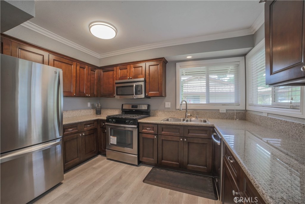 This STUNNING Coco Palms home just hit the market in Fullerton and is sure to sell FAST !! This private end-unit condo, (with no-one above or below) features a spacious patio and 2 generously sized bedrooms. Updated kitchen. Both bathrooms have been fully renovated and tastefully appointed (new showers, tile, vanities, and toilets). This home has a 1 car garage. Prepare to fall in love with the modern finishes of this home - from the crown molding and designer paint to the new lighting fixtures and gorgeous laminate flooring throughout! Newer HVAC system with warranty ! New dual pane windows ! Not a flip - this home has been cared for and maintained meticulously. The pride of ownership really shines through. FHA & VA Approved!! HOA re-plumbed and re-roofed 2-3 years ago. Zoned for the 10/10 Troy High School. Minutes from Cal State Fullerton. Easy 57 and 91 freeway access. Don't miss this one !!