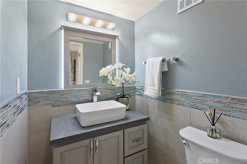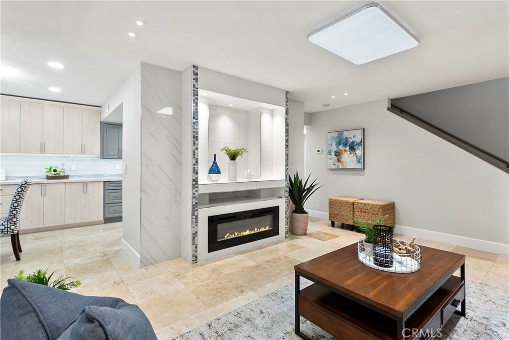 Welcome to this beautifully remodeled condo in the Country Hills of Fullerton. This condo has been completely remodeled with recessed lighting throughout with sensors, 3 mini-split AC units for high efficiency, and newer fireplace tile. The kitchen and all 3 bathrooms are beautifully upgraded with custom backsplash and chrome hardware. Enjoy the large covered patio that is adjacent to the green belt. The large master suite has vaulted ceiling and has a balcony and walk-in closet with custom shelves and drawers, AND a Murphy bed. The second bedroom is also equipped with an en-suite bathroom. (Total of 2 master suites). All doors are new, and garage floor has been freshly painted. The community offers a pool, spa, and sports court. Close distance to award-winning Sunset Lane Elementary, Parks Jr High, and Sunny Hills High School.
