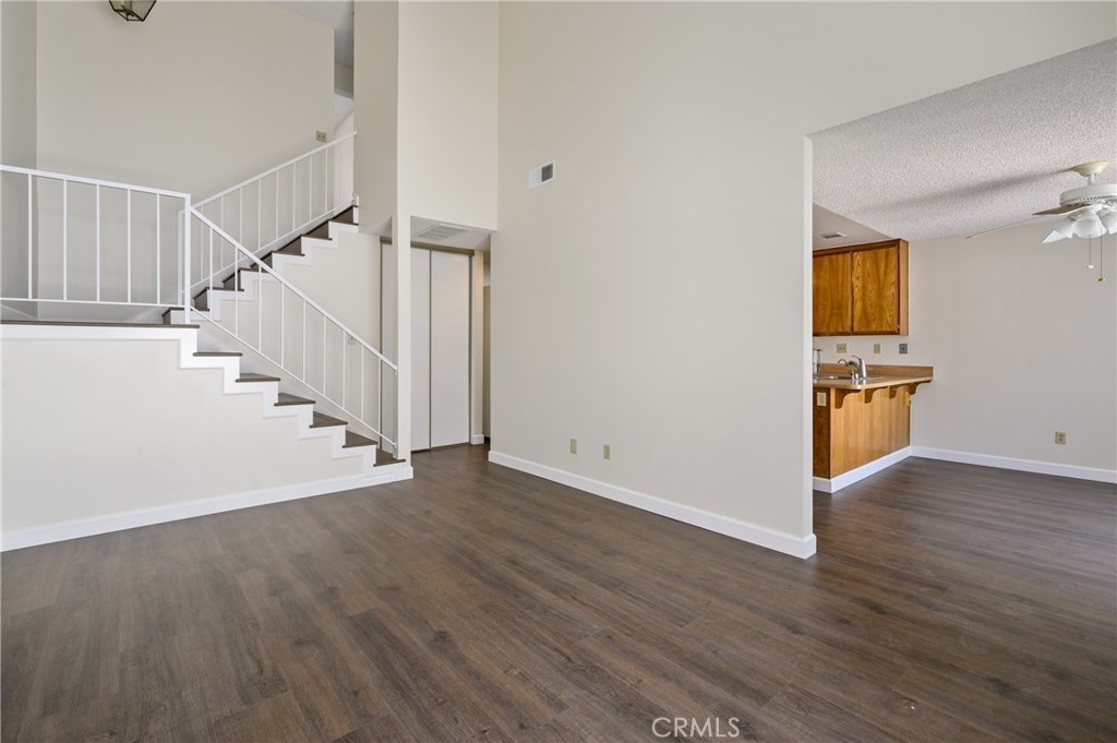 Welcome to The Bluffs. A collection of Homes that sits against a backdrop of towering Mature trees, meandering walking paths, biking and hiking trails, family-centered Community amenities and easy access to expansive City Parks. The unit has been stripped off its original flooring and now features wide- planked luxury vinyl wood floors beautifully complemented with crisp and clean baseboards. All walls have been refreshed in milk mustache color creating a blank canvass to anchor any of the living spaces and bedrooms. A brand new installed roll-up garage door usher you inside your 2 car garage. A downstairs powder room sits behind the Kitchen. New Homeowners will have the freedom to upgrade and customize the original kitchen and all bathrooms. With high vaulted ceilings and well laid out floor plan this House has enormous potential to be a Beautiful Home. A dining/breakfast nook area looks out to a quaint front patio fully fenced in durable vinyl. From the garage, you'll be a few steps away from the kitchen and the stairway leading up to the bedrooms. An abundance of guest parking, privacy-gated swimming pool, sport court, playgrounds and verdant walking paths is what the community offers. Top it with great city schools which this House attends, so look no further. Make this House your Home!