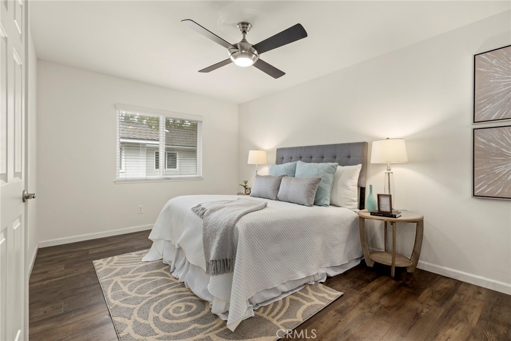 Nestled in the desirable Coyote Hills "Bluffs" neighborhood surrounded by lush mature trees in a tranquil atmosphere, this end-unit (attached only on one side with no one above or below) boasts fresh coat of paint and ready to move in. Upper level entrance provides added privacy with a covered porch, featuring 2 bedrooms and 1 bathroom. This single-level unit offers bright and airy living room that is open to the dining area. Updated kitchen with granite countertops and stainless steel appliances, dual pane windows, recessed LED lighting and central air. Walk down the hall through the double doors to find spacious master bedroom with a walk-in closet, and convenient 2-car garage below in addition to plenty of guest/street parking. Take advantage of all the wonderful amenities: association pool/spa, sports court and a playground for children in a park-like setting. Surrounded by single family residences and conveniently located near hiking/biking trails, Los Coyotes Golf Course, parks and restaurants. Award winning schools: Sunset Lane Elementary, Parks Junior High and open enrollment for High School. This is a fantastic opportunity to live in West Fullerton at a great price.