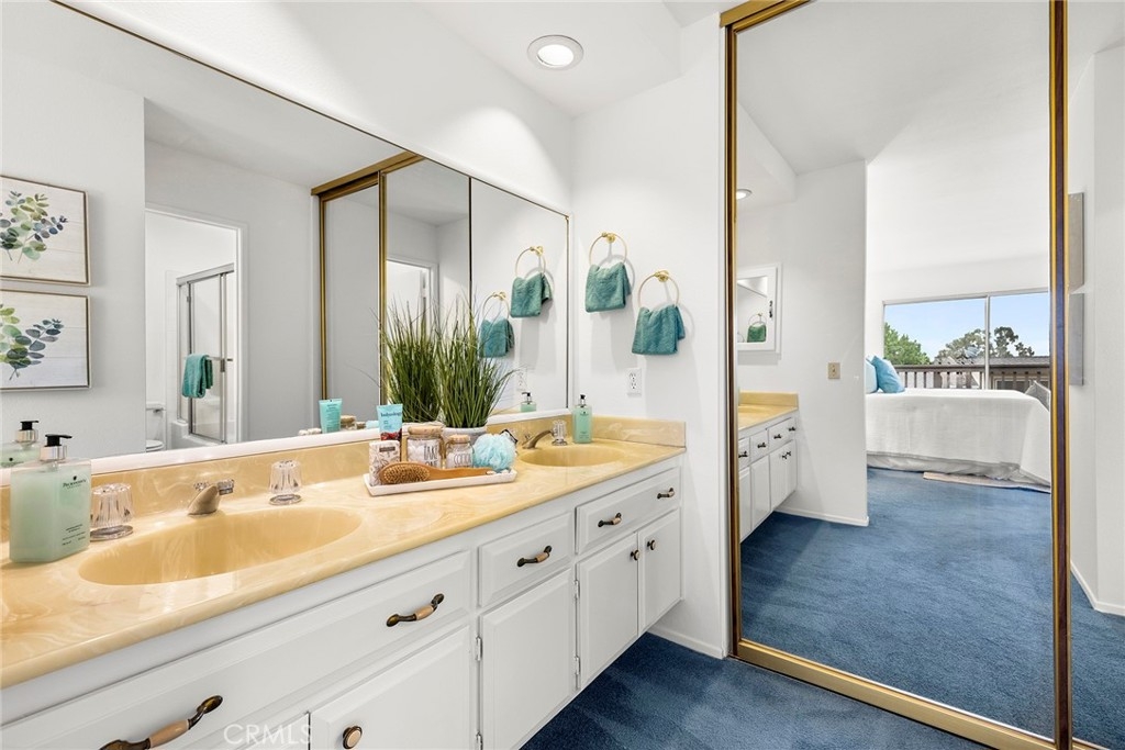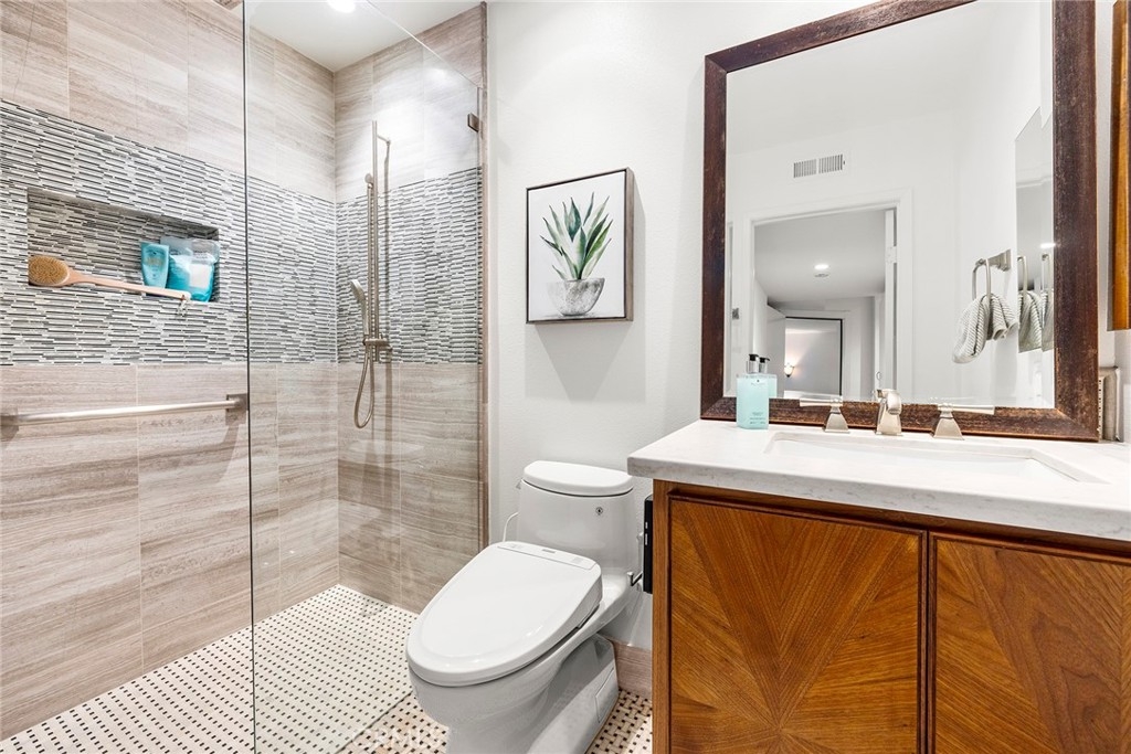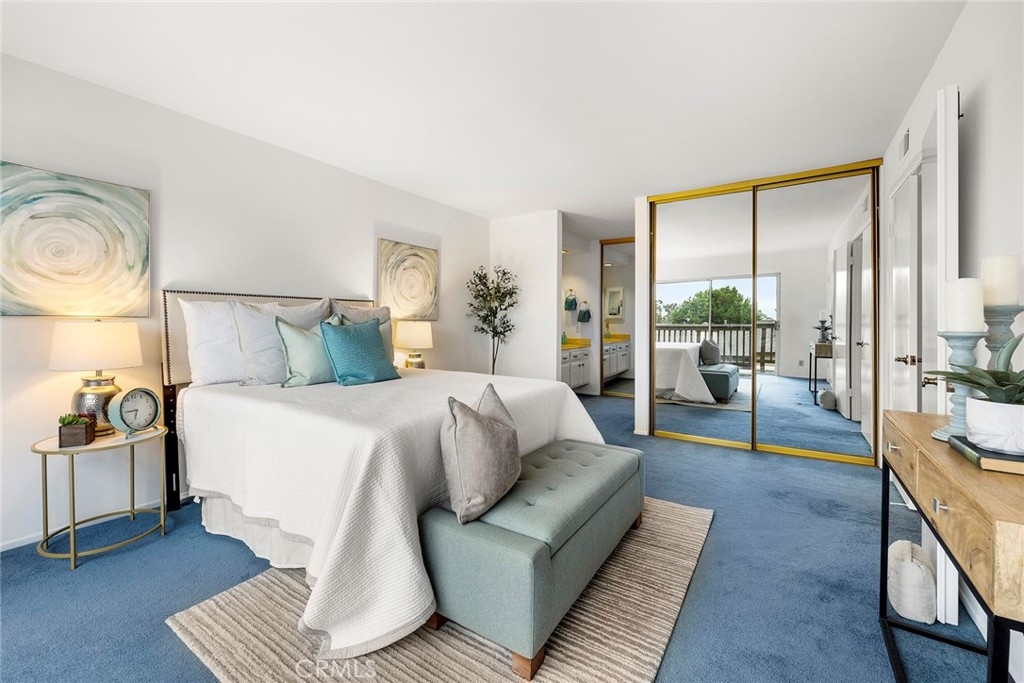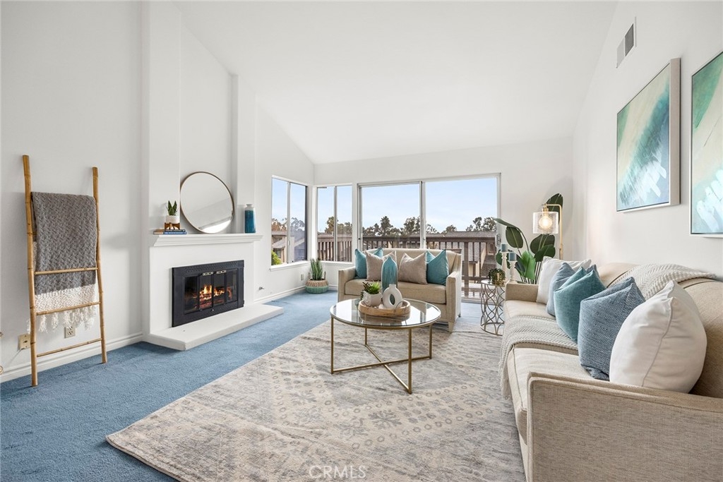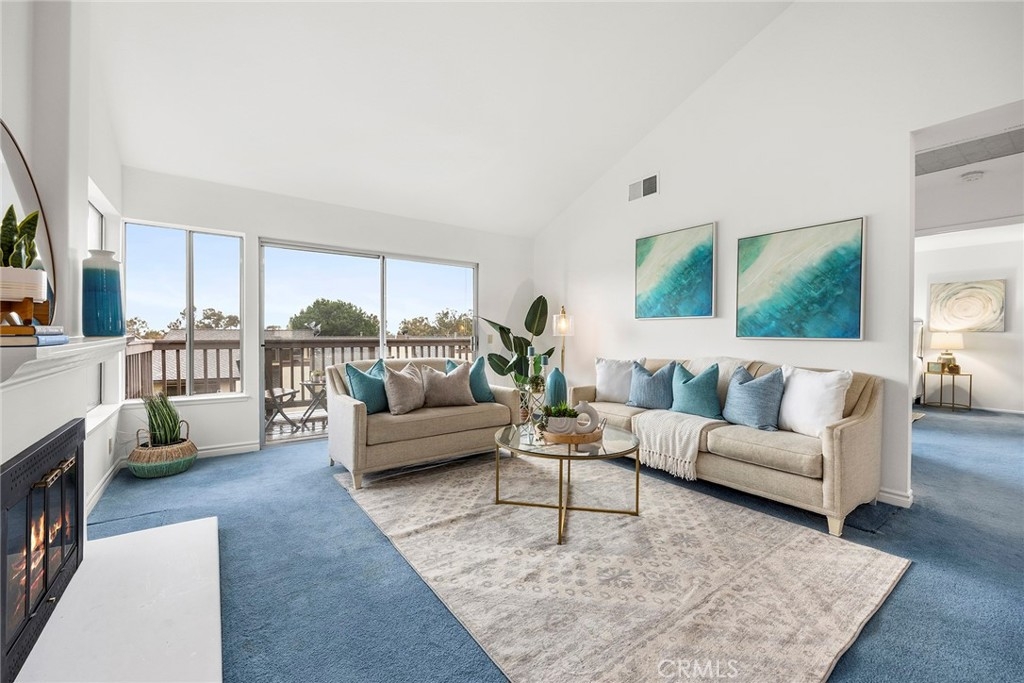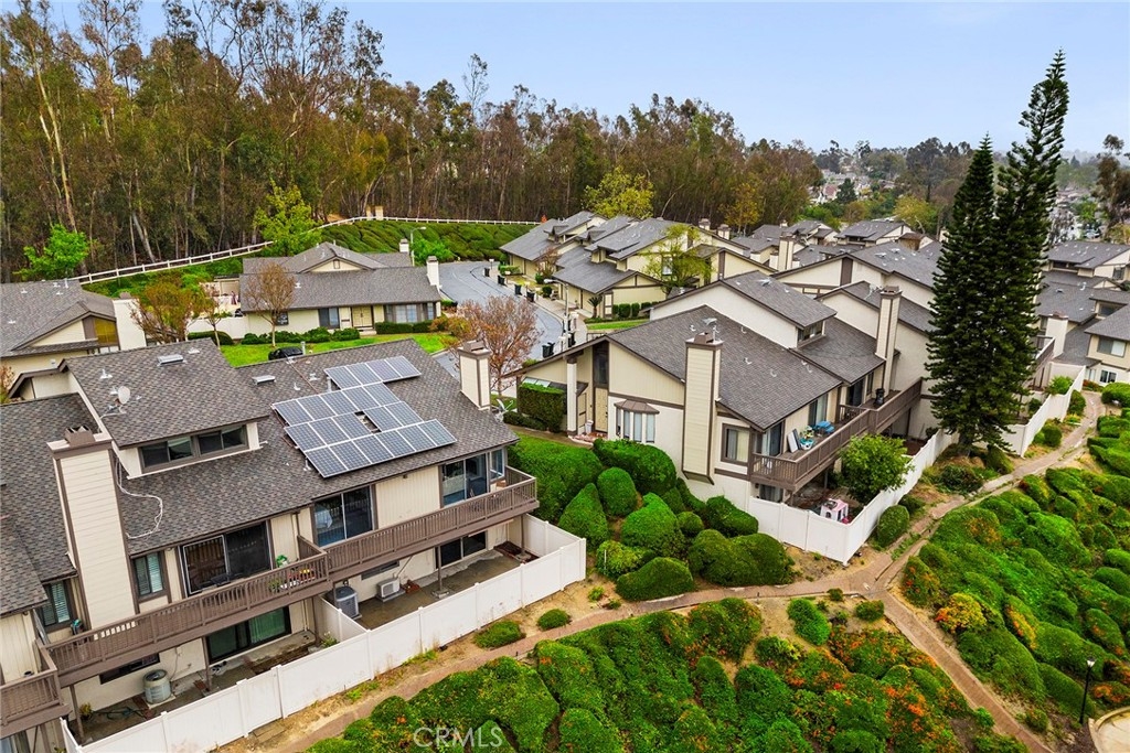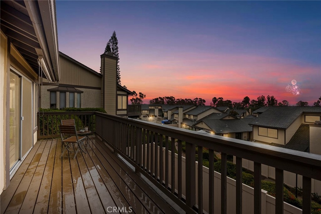 Beautiful Sunset VIEW & Disney fireworks ! A charming end-unit home, featuring an ideal floor plan for Single-Story living since all common area and the primary suite is positioned on the MAIN-LEVEL. Step inside to appreciate the light & bright ambiance from vaulted ceilings and numerous windows creating an excellent natural light to illuminate the space. Remodeled kitchen with top of the line Sub-Zero and Bosch appliances along with plentiful custom cabinets, convenient breakfast nook for easy day-to-day living, spacious living room with intimate fireplace opening out to an expansive balcony to enjoy the endless stretches of the sky. Additional bedroom and a secondary living room (could be used as a 3rd bedroom) downstairs with direct access to the private backyard suits various lifestyles. Many upgraded features include remodeled kitchen and a bathroom, additional wall AC unit for extra comfort along with sound proofing in secondary living room, PAID-OFF SOLAR, EV charger in garage, water softener, ample storage in attic and fresh coat of paint. Prime location just moments to multiple parks and trails, zoned for award-winning Fullerton school district.