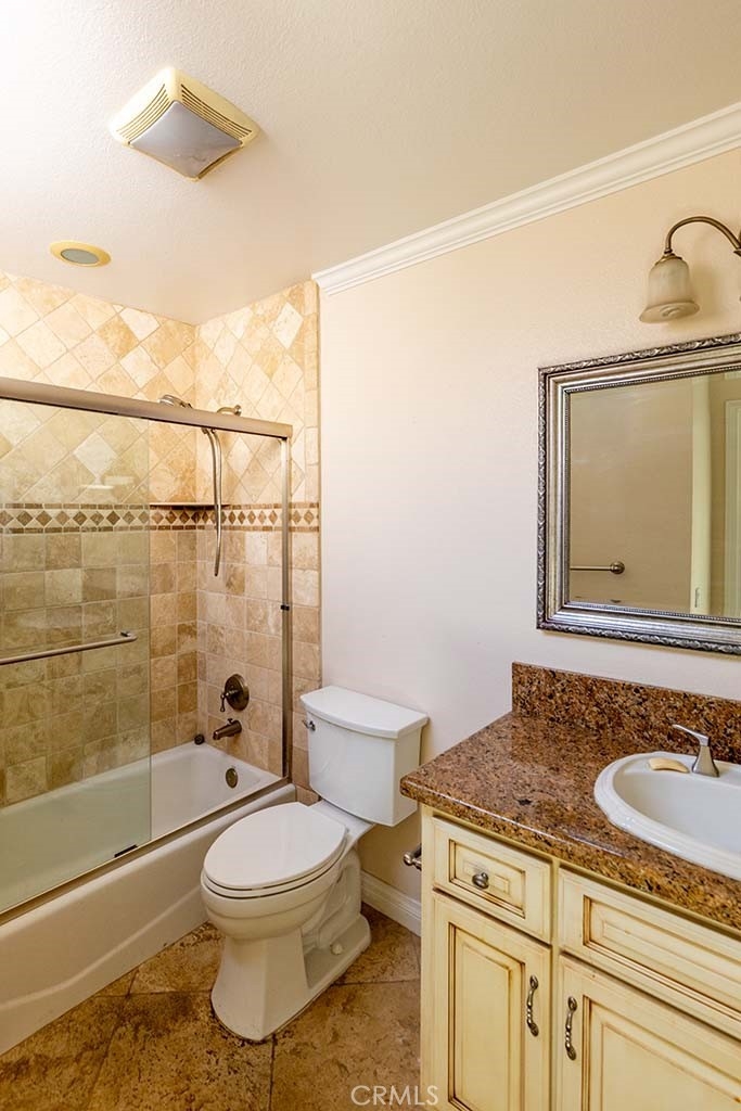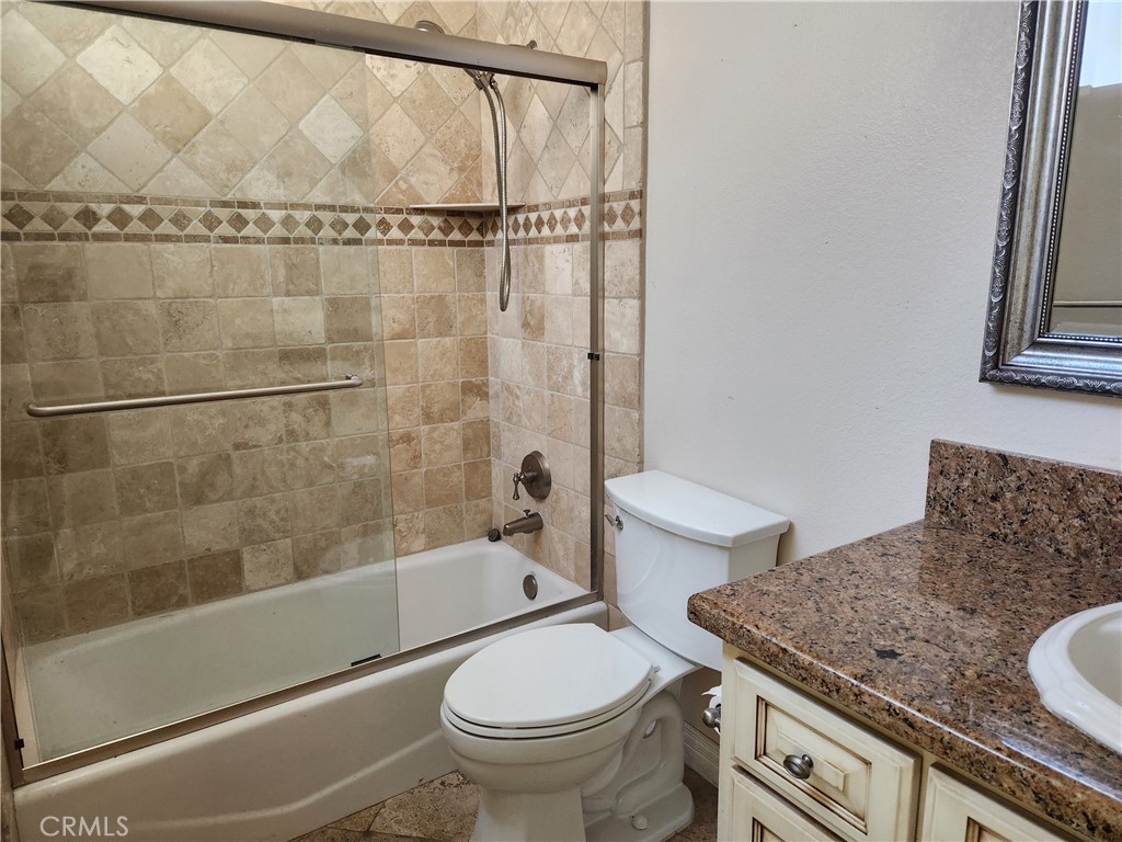 Highly sought after model in Fairway Village! End unit with 3 bedrooms 2 bathrooms with approximately 1572 sq ft. Updated kitchen with stainless appliances granite counters and stone flooring. Other features include, double door formal entry, Cathedral ceilings, ceiling fans, and built in cabinet in guest room. The Primary bedroom is located on the lower level with ensuite bath, with dual sinks, walk in closet and and large walk in shower with a private balcony. There is new carpet in the bedrooms and fireplace in living room with sliding door to the large balcony. Convenient 2 car attached garage and plenty of guest parking. This secure community has a 24 hour guard at the gate, and many HOA amenities to include pool, spa, clubhouse, pickle ball ,tennis courts, and meandering greenbelts. Located close to St Jude Hospital and the vibrant life of Downtown Fullerton. Won't last!
