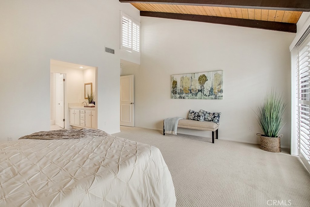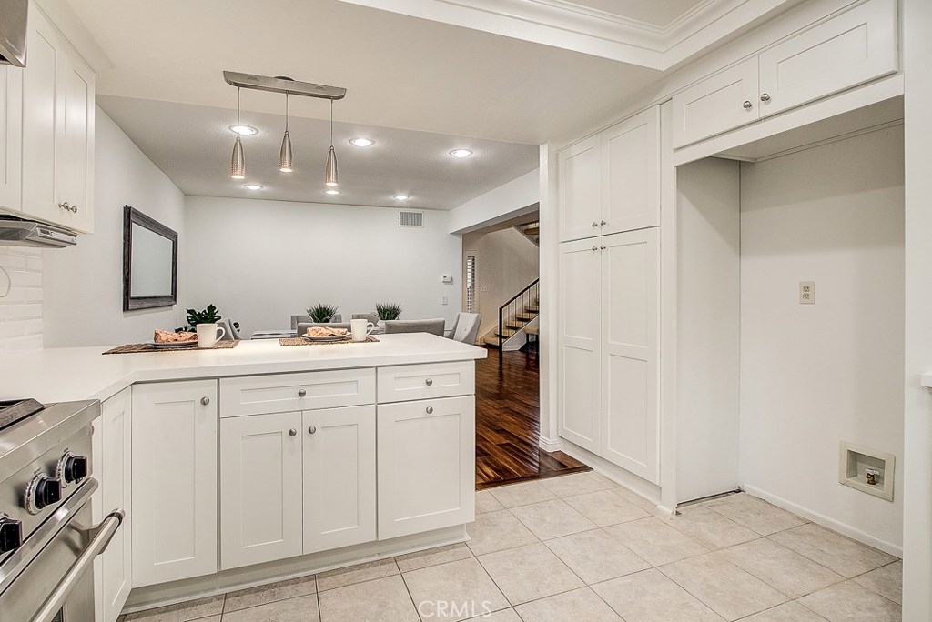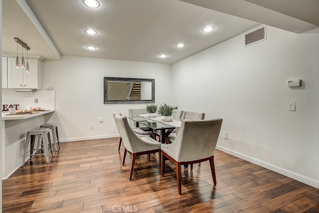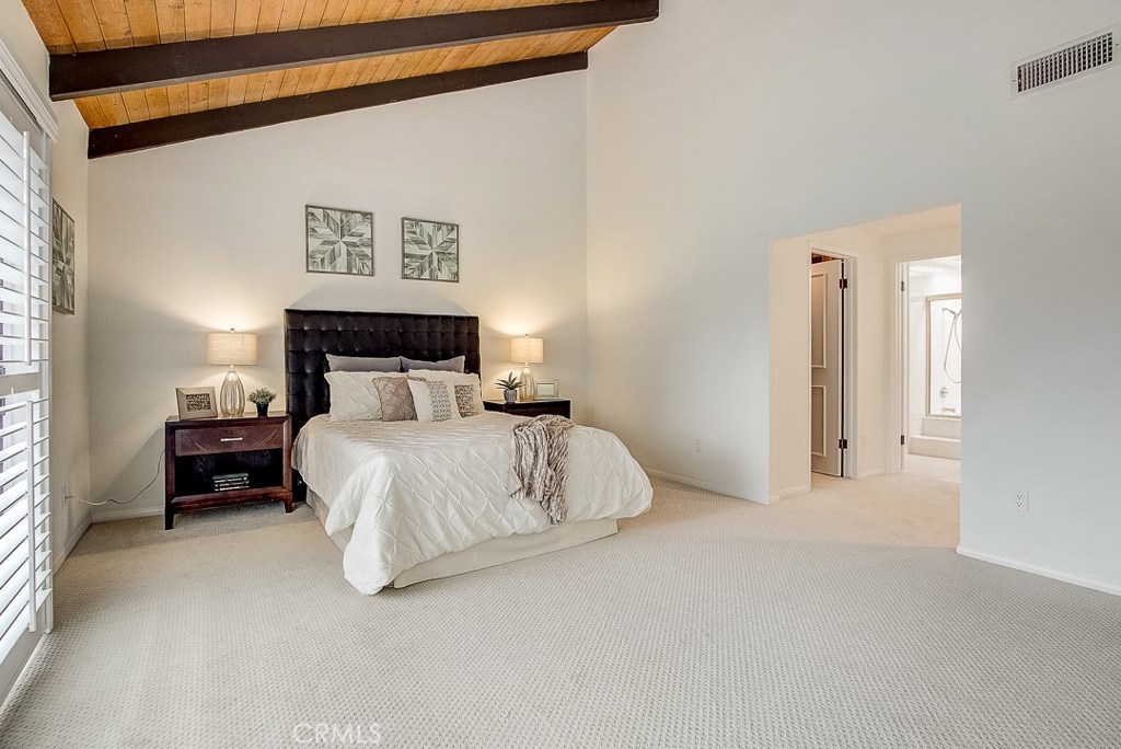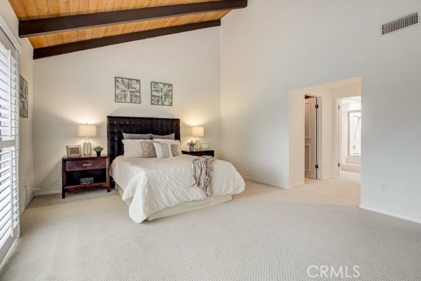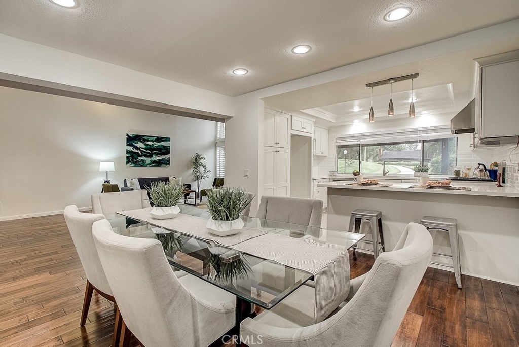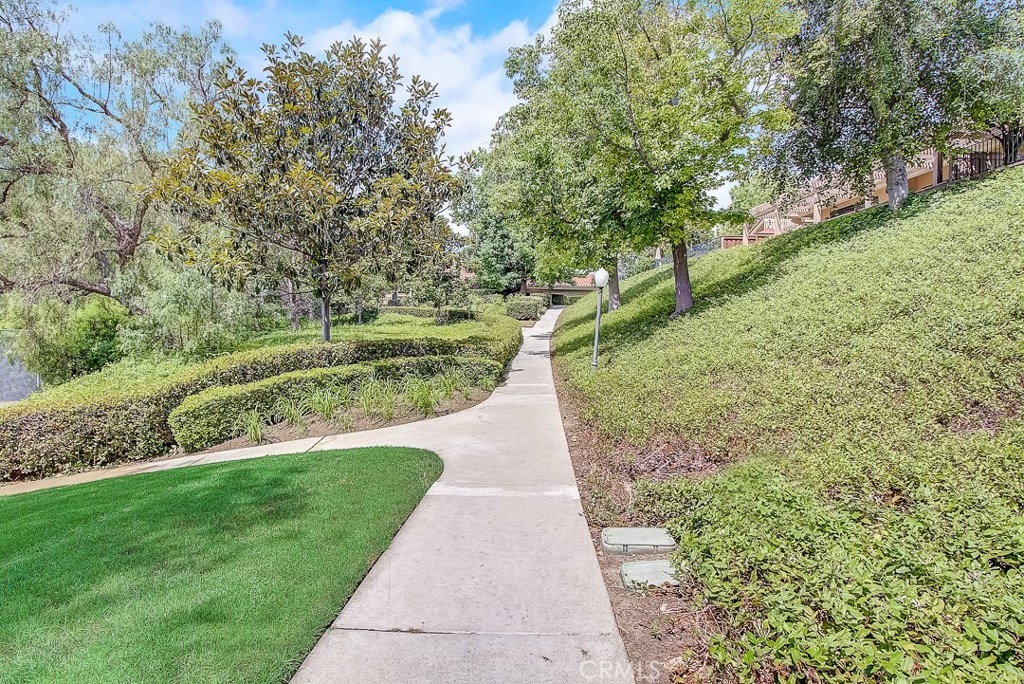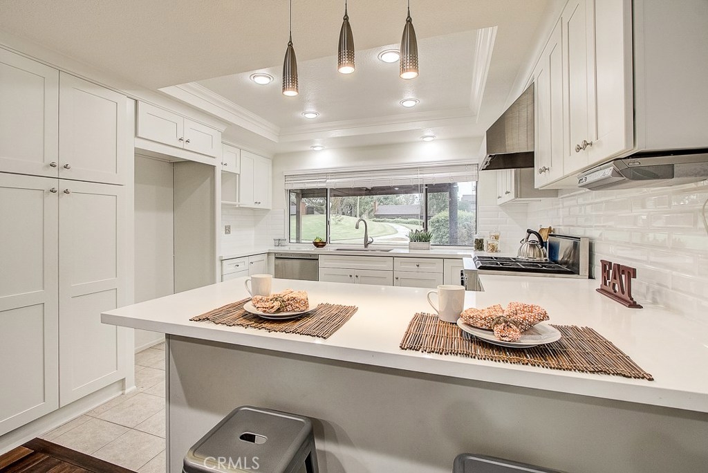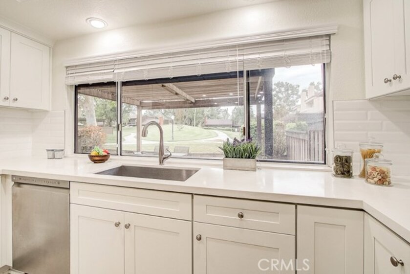 Meticulously maintained, this guard-gated Fairway Village home is ready for its new owners. Vaulted ceilings with wood beams, fresh neutral paint and a cozy fireplace in the spacious living room add to the elegance of this highly desirable floor plan. The sumptuous remodeled kitchen is well-appointed with marble counters, white cabinetry, new stainless steel appliances, a generous pantry,recessed lighting, and a breakfast bar with pendant lights and seating. The adjacent dining room has recessed lighting and rich wood laminate floors that flow into the living room. A convenient downstairs bedroom with full bathroom is perfect for guests. Up the open staircase, the master suite welcomes with a sizable closet, ceiling fan, a private balcony, and a spa-quality bathroom with dual mirrored vanities. The secondary bedrooms have spacious closets and share the full hall bathroom. Enjoy relaxing in the backyard with hardscape, cement patio with awning. HOA amenities include, guard-gated community, two sparkling pools, a clubhouse, BBQ area, green belts and trails, and basketball and tennis courts. Neighborhood amenities include the highly sought after Beechwood Elementary School and Fullerton High School. Close proximity to Fullerton College, Cal State Fullerton, Fullerton Golf Course, shops and restaurants.