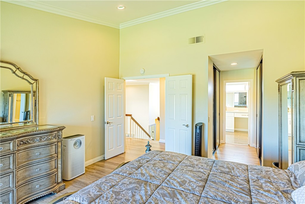 Welcome to this beautifully upgraded residence in the highly sought-after Fairway Village community. This home offers a serene retreat, perfectly situated away from street noise, providing breathtaking views of the golf course, mountains, and expansive green belt. As you enter, you'll find a thoughtfully designed layout featuring a bedroom and bath on the entry-level, making it ideal for guests or easy living. The interior is bathed in natural light, thanks to numerous skylights and large windows that enhance the open feel of the space. The living room is a highlight of the home, boasting a floor-to-ceiling fireplace, soaring high ceilings, and a glass slider that opens to a charming patio—perfect for entertaining or enjoying quiet moments. Upstairs, you'll discover a spacious secondary bedroom with an adjacent full bath. The master suite is a true sanctuary, offering <<a private balcony with >> stunning views of the lush green belt, golf course, and mountains beyond. This home has been meticulously maintained and cared for over the years, ensuring it is move-in ready for its next owner. The Fairway Village community is unparalleled, featuring 50 acres of beautifully landscaped grounds that include two inviting pools and spas, <<two lighted tennis courts and a multipurpose/basketball court >>, a clubhouse, common RV parking, and a 24/7 manned entrance gate. Conveniently located near St. Jude Hospital and Medical Center, shopping centers, dining options, colleges, universities, and the popular Beechwood School (K-8), this residence truly offers the best of both worlds—an island of tranquility in the city. This is more than just a house; it’s a place you can call home for many years to come. Don’t miss your chance to experience the lifestyle this exceptional property has to offer!?”