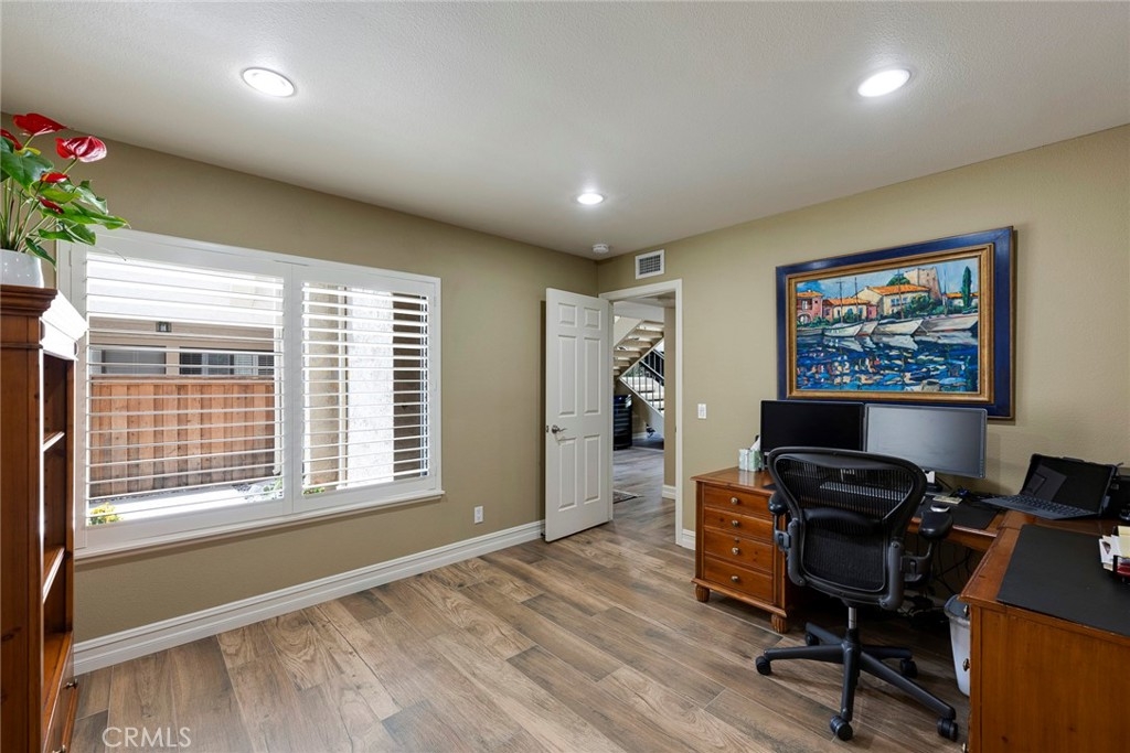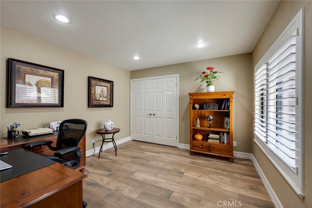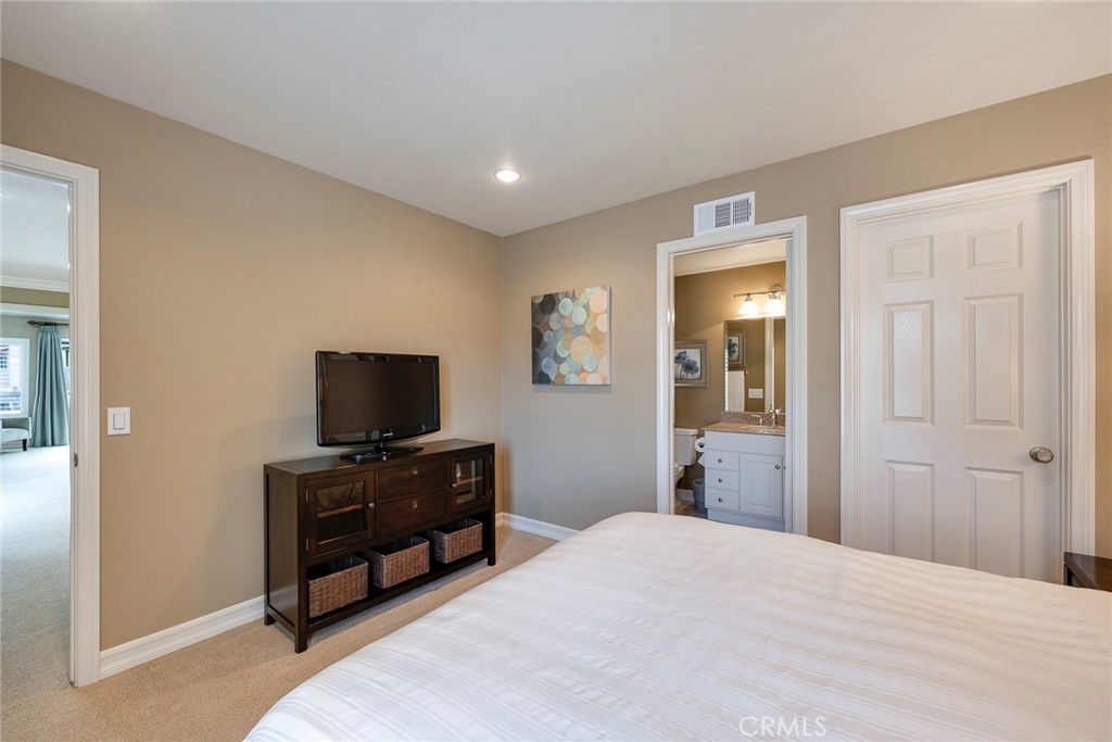 This wonderful attached home is located in the guard gated community of Fairway Village. Located on a cul-de-sac this beautifully maintained home boasts: 3 bedrooms (One bedroom on the main floor), 3 baths and approx. 1,963 square feet. The gorgeous kitchen overlooks the dining area and into the family room-perfect for everyday living and entertaining. New porcelain/ceramic flooring was installed in 2020. Both the living and family rooms have high volume ceilings. The interior was painted in October 2020. The kitchen, dining area, family room, master bedroom and large patio looks out to the greenbelt-A very nice setting. Both bedrooms upstairs have their own private bath. The one master bedroom is large with a balcony and vaulted ceiling. The kitchen, windows and baths were redone in 2006 and still look new. New dishwasher installed in 2020. New garage door, garage door opener and water heater were installed in 2019. Other features: Fireplace, Raised baseboards, crown molding, recessed lighting, ceiling fans, six panel doors and closet organizers. Enjoy the community amenities: Pools, spas, tennis courts and RV parking area. Come on out and take a look at this fantastic home today!