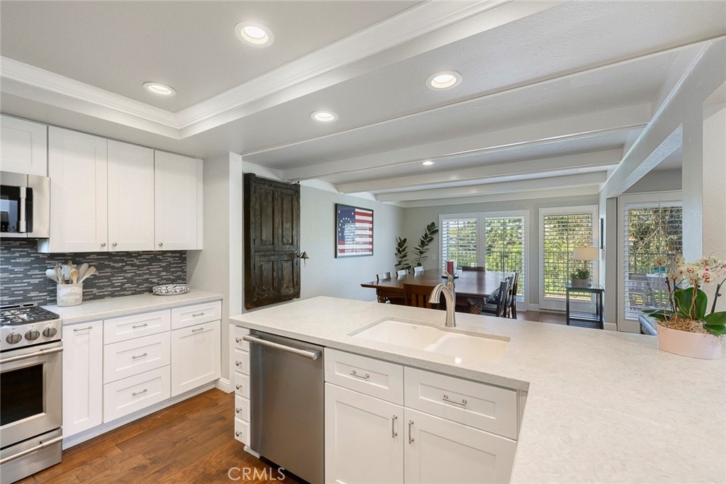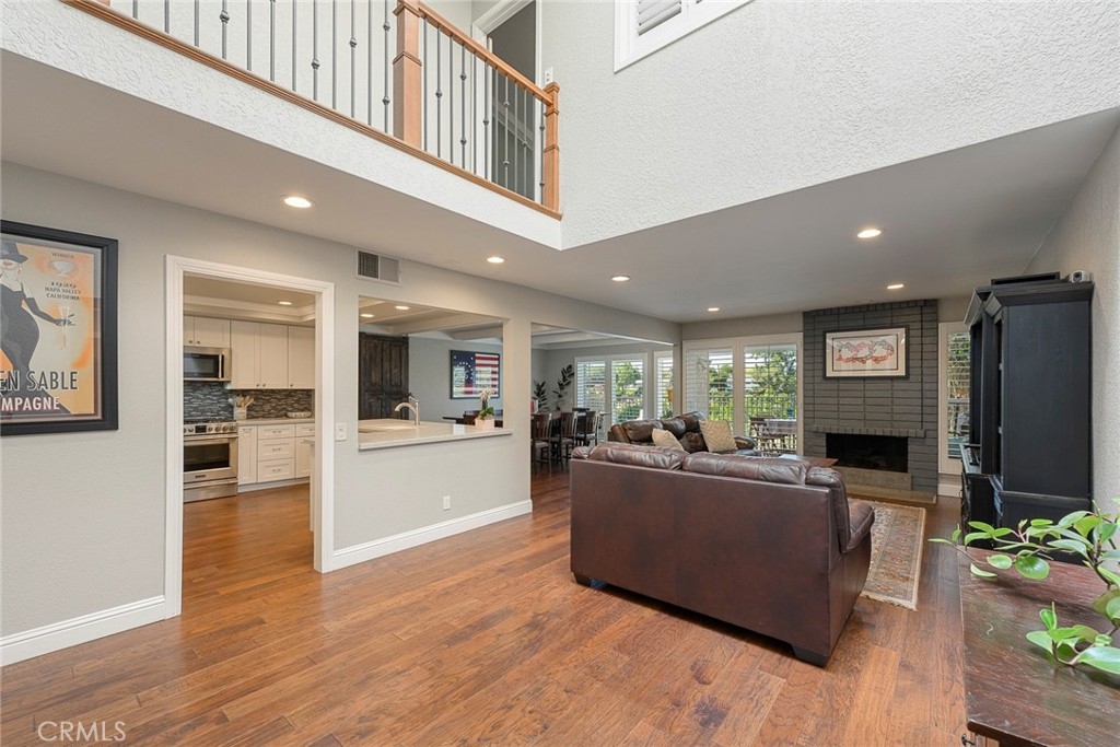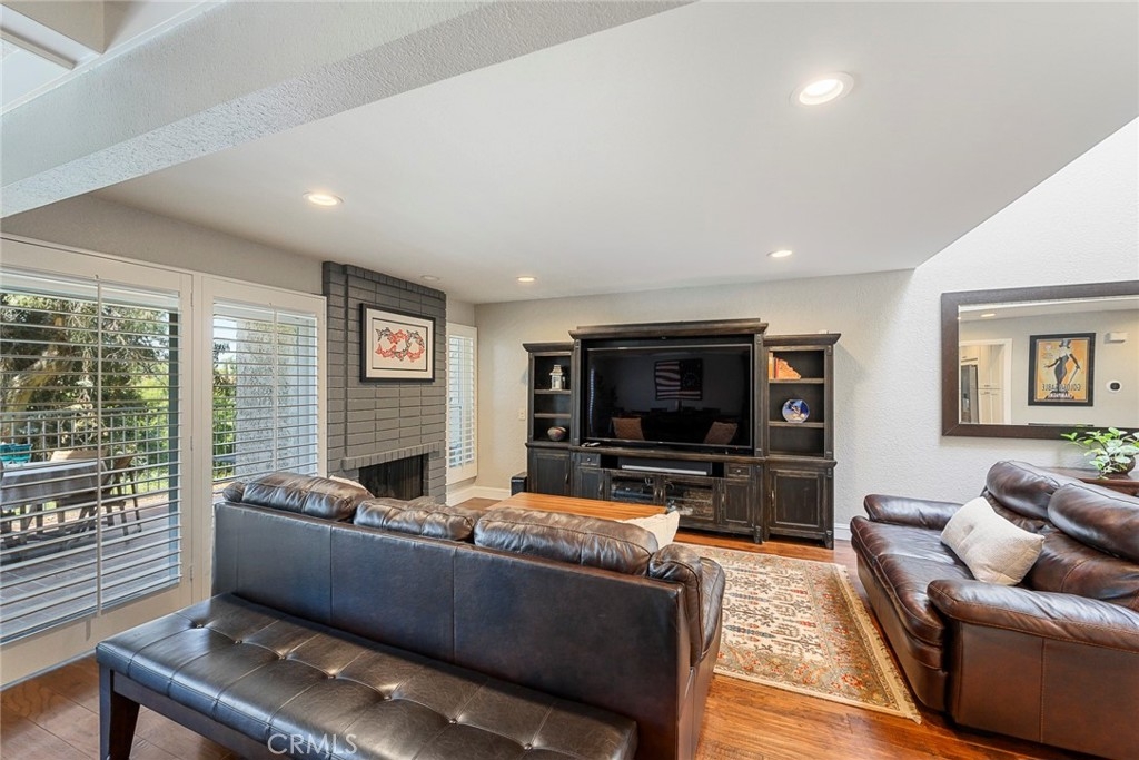 This wonderful attached home is located in the guard gated community of Fairway Village. LOCATED ON A CUL-DE-SAC AND BACKS TO THE GOLF COURSE, this terrific home boasts: 3 bedrooms (One bedroom on the main floor), 3 baths and approx. 2,179 sq.ft. In 2016: Total kitchen remodel (Cabinets, counters, appliances & fixtures), hardwood floors were installed in the living area & downstairs bedroom, beautiful staircase railing and fresh interior paint. The living area, kitchen and master bedroom look out onto the golf course/trees. The living area with fireplace, kitchen and eating area are flow together-Perfect for everyday living & entertaining. In 2015-Windows and sliders were updated. Upstairs you have two bedrooms and two baths. The master bedroom is oversized with fireplace, sitting area, high volume ceiling, view balcony and a private bath. Other features include: Raised baseboards, Plantation shutters, skylight and inside laundry closet. 2 car garage plus a driveway! Enjoy all the community amenities: Pools, spas, tennis courts, and RV parking area. Come on out and take a look at this fantastic home today!