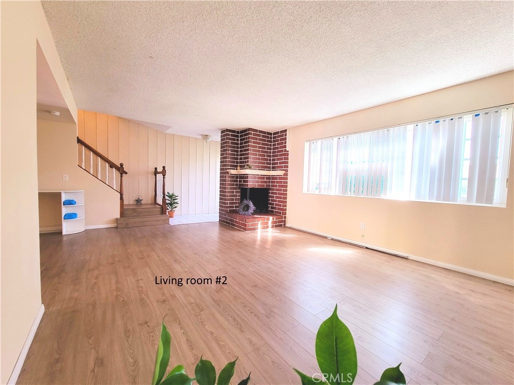Graceful 4 bedrooms 2.5 bathrooms end-unit townhouse in the lush and well-maintained Foothill Village Community. This 1,776 sqft two-story home offers a very practical floor plan and the interior walls new paint throughout. It features bright and airy living room accentuated by a brick fireplace, spacious family room with dining area, through a French door to the back is a private brick patio, which brings enjoyment from the sunshine, moonlight, and greenery breeze. The functional open kitchen with a breakfast bar adjacent to the laundry room plus a pantry, have a direct access to the first one-car garage. Downstairs laminate and tile flooring throughout with a powder room. All four bedrooms on the second floor and carpets throughout. The master bedroom with a walk-in shower bathroom, other three bedrooms shared the hallway bathroom. The second one-car garage is next to the house. The HOA fee includes the water, trash, common area landscaping, exterior maintenance and insurance, swimming pools, clubhouse, and playground. It is very convenient to SoCal daily life in every aspect. California State University Fullerton just a few blocks away across Freeway 57. An excellent choice to either occupy or invest!