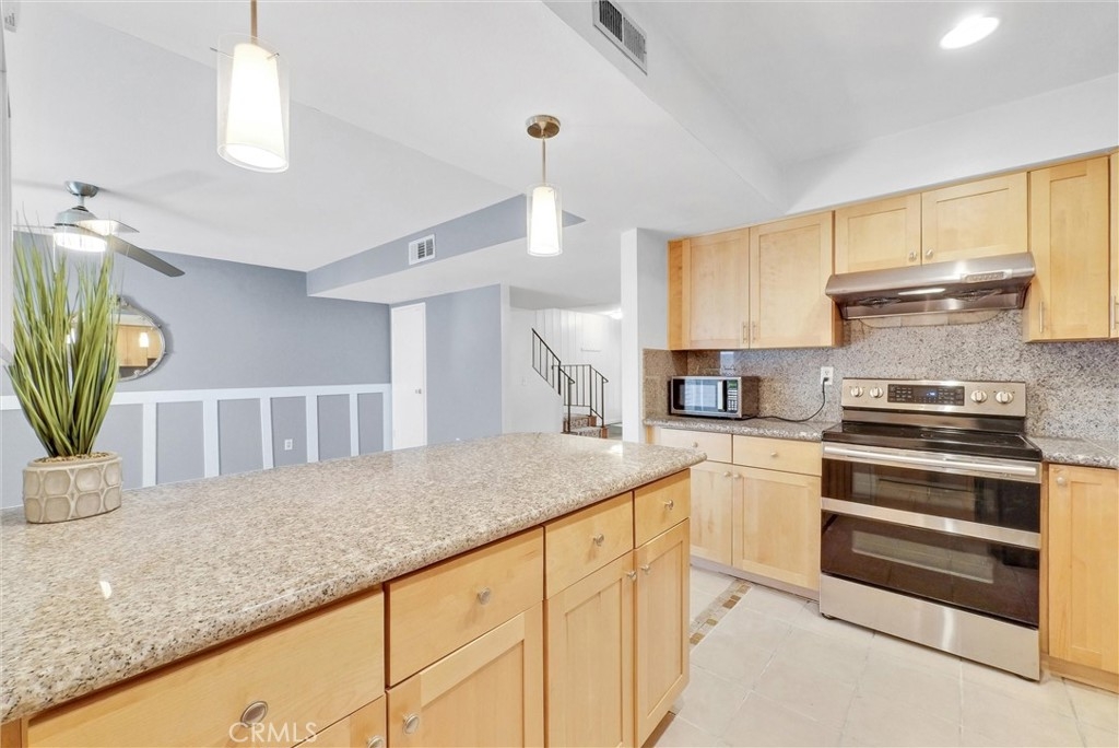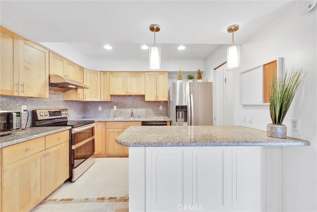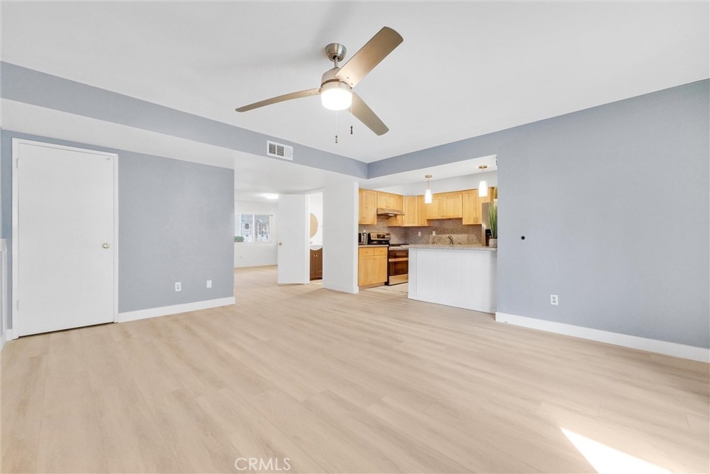 Affordable, rare-find 4-bedroom, 3-bath large townhome is now within reach with a new pricing! Come tour this beautiful and upgraded 2-story townhouse with 4 bedrooms, 3 baths, 1776 sqft along with an attached 1-car garage and a designated carport only few steps away. Situated in the highly desirable Foothill Village Community and impressive from the curb with tree-lined landscaped walkways, the front door welcomes you into a light and airy floor plan. The living room with a cozy fireplace, large windows, and the wainscoting wall exerts homey feel and extra warmth. The corner space by the stairway is roomy enough for a desk, accent chair, cabinet or any décor idea you desire. Open kitchen with upgraded newer granite countertops, cabinetry in natural wood color, and a large breakfast bar open to the family room/dining area is where you nurture and entertain. Through the sliding door is a good-sized enclosed patio with cover, allowing you to enjoy it rain or shine. Passing by the kitchen is an individual laundry area, and across is a cabinet area with extra storage space. Further down is the direct access door to the 1-car garage with epoxy floor. The upgraded downstairs bathroom with an additional shower shall impress and delight you. Gorgeous SPC planks flooring throughout the main floor. Beautiful laminate wood floor all over the second floor. The master features an en-suite bathroom with newer vanity and a walk-in shower. Three nice-sized secondary bedrooms along with an upgraded hallway bath completes the upstairs layout. Ceiling fan in all bedrooms and the family room. Wonderful association amenities include community poo/spa, playground and recreation room. The HOA due includes water and trash. Convenient to Cal State Fullerton, downtown Fullerton, shopping, restaurants, and freeways. This is truly a not-to-miss property.