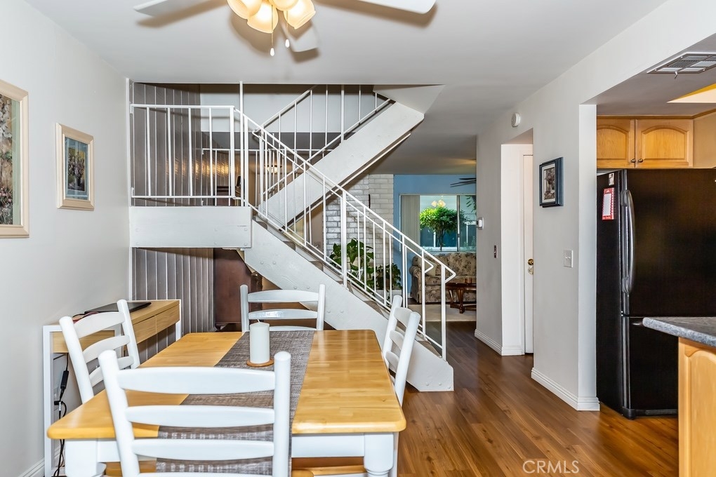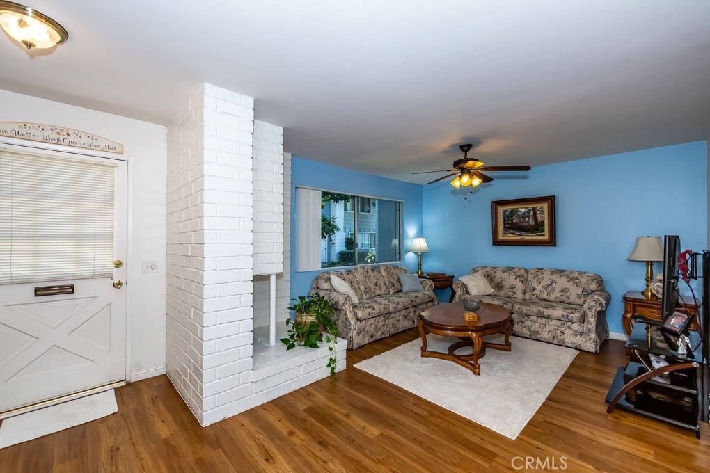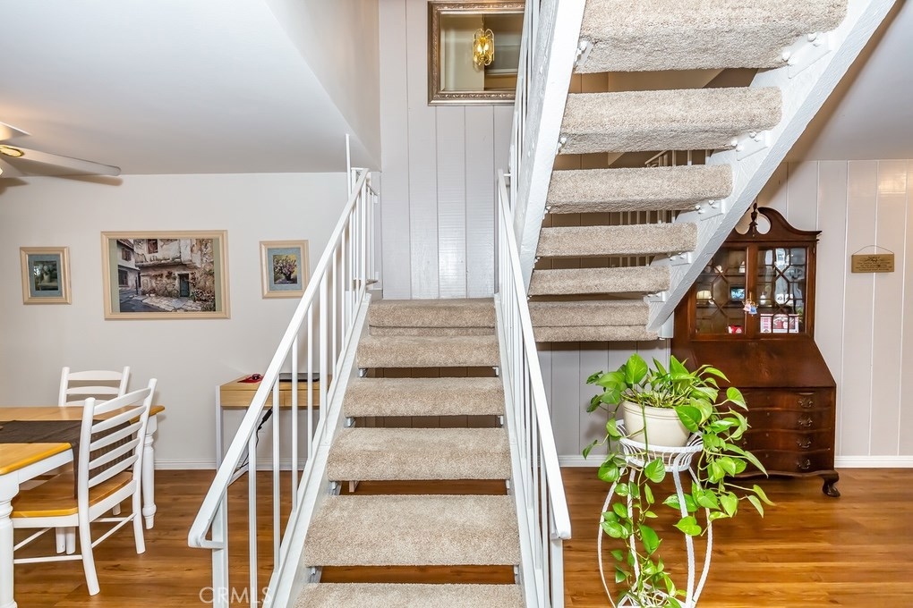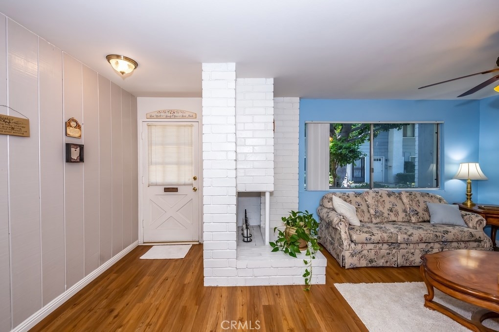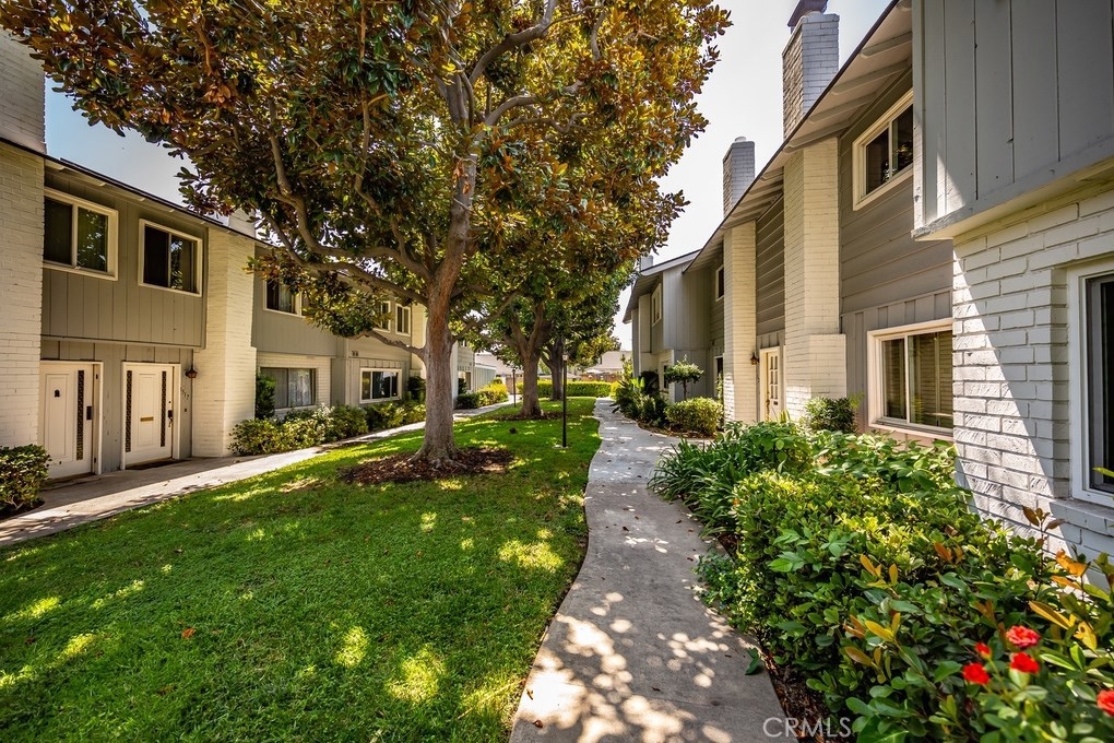 If you are a first-time home buyer or investor thinking you have been priced out of the Orange County home market-think again! Nestled in the Foothill Village Townhome Community, in Fullerton, this 2 bedroom 1.5 bath home offers an amazing value to some lucky buyer. This townhome has a generous interior sq. footage of 1210 sq. feet with a lovely exterior patio. As you enter the home you are greeted with an accent wall of Vertical Batten Board that extends through the entry and continues to the 2 story wall of the open staircase. The living room includes a wood burning fireplace and views to the greenbelt with 4 mature trees offering shade and a tranquil pathway. Downstairs also includes a half bath, dining area and kitchen. You have multiple storage opportunities with a hall closet and European Maple Cabinets in the kitchen. The dining area overlooks the enclosed patio. The patio offers a private area to enjoy the outdoors and, off the patio, is the single car garage with washer and dryer hook ups. Back inside as you ascend the open staircase you will find the full bath that includes a separate bath and shower. The large Master Bedroom enjoys a wall of mirrored closets, including full length closet organizers. The generously sized secondary bedroom, down the hall, has a spacious walk-in closet. Both the high end laminate floor downstairs and the carpet upstairs have been upgraded within the last 2 years. Come visit us early so you can make this amazing townhome your own!