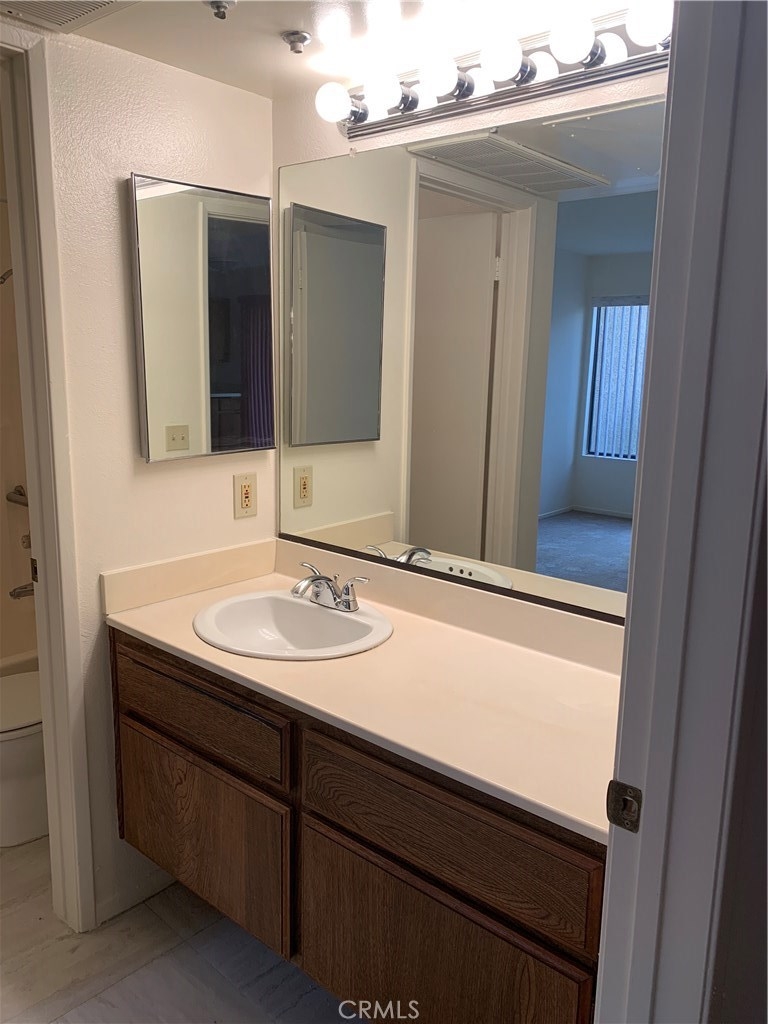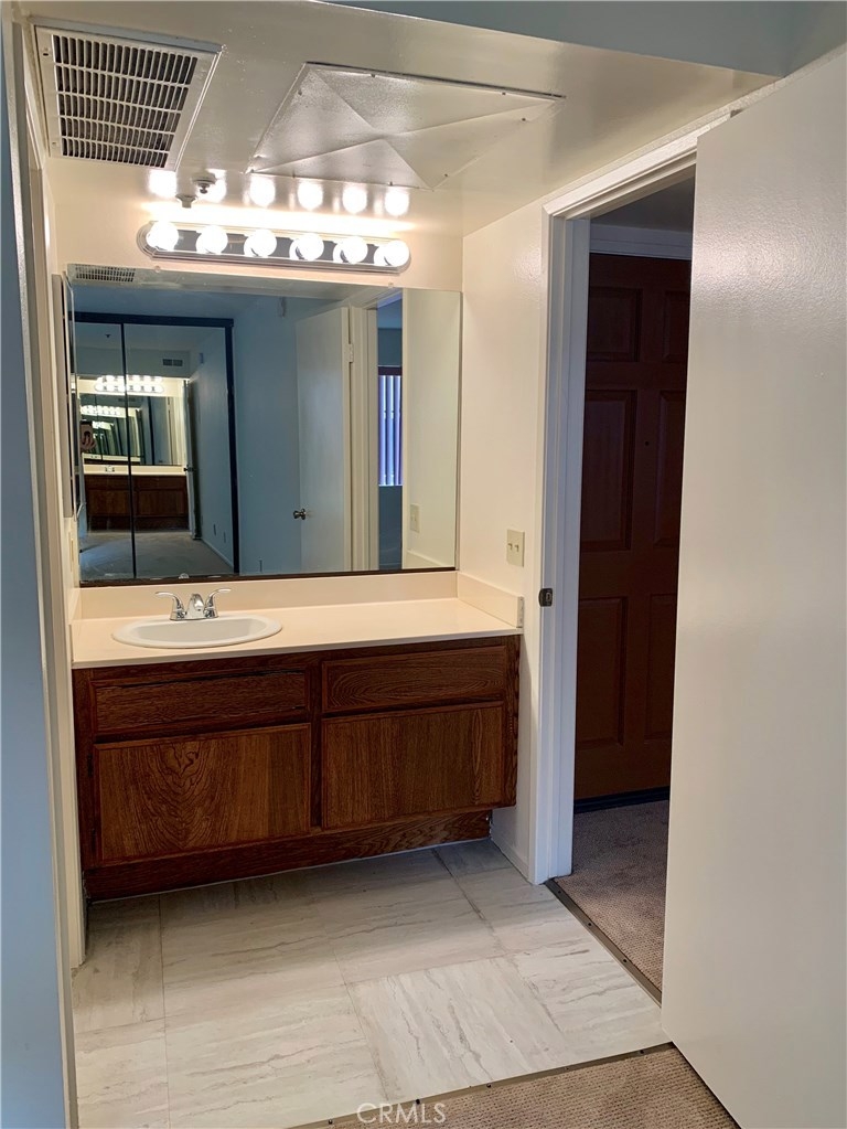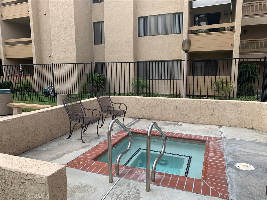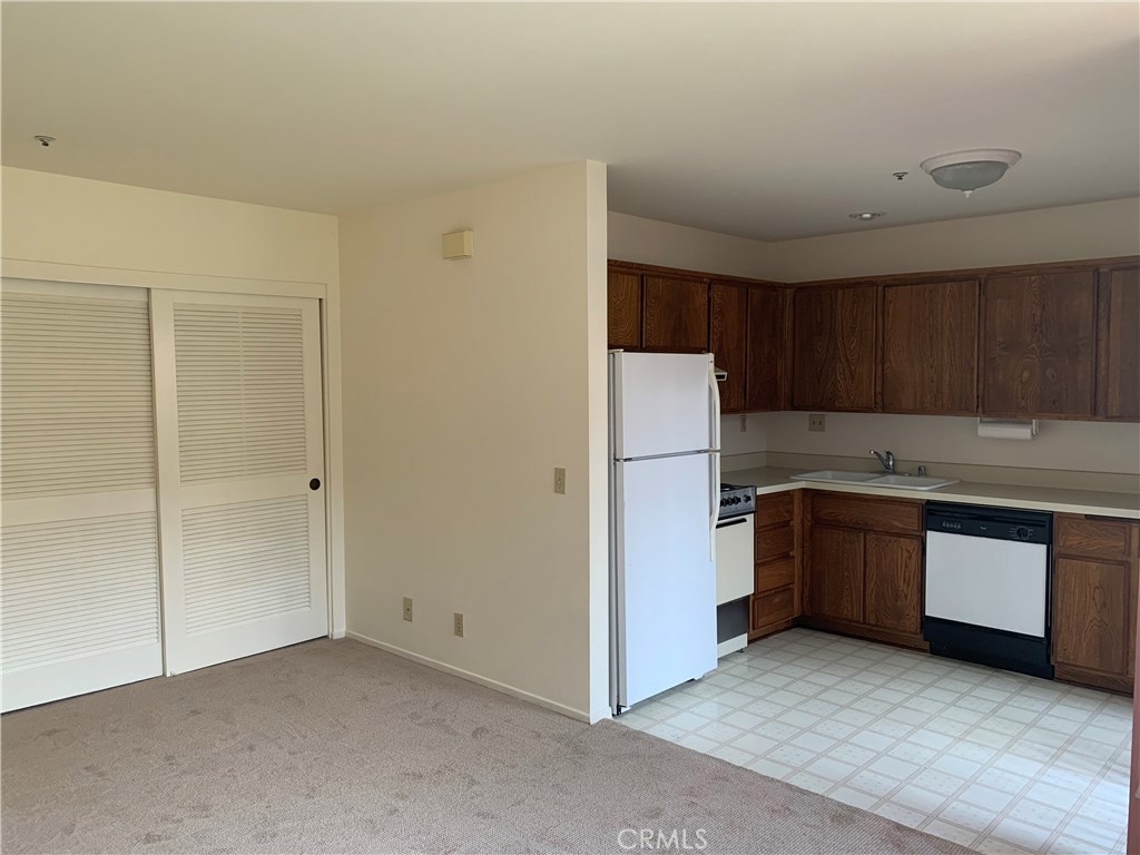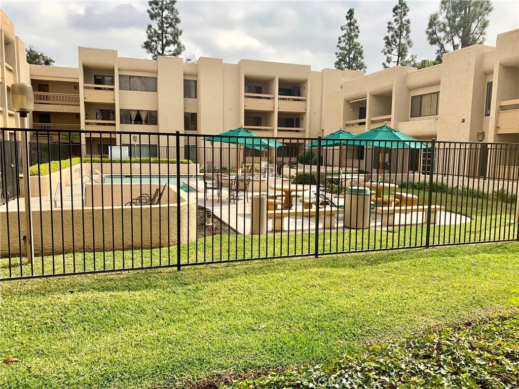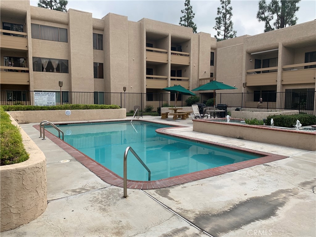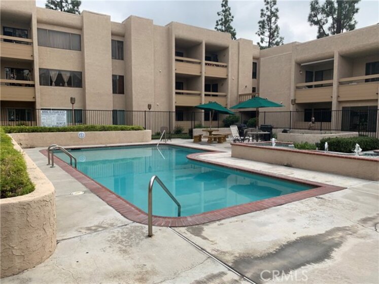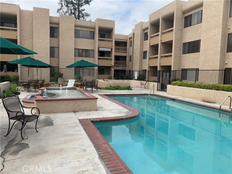 Single story home in an over 55 community. Located on a ground floor level and in a secure building, this home provides lots of peace of mind. Overlooking the central courtyard, your views open up to the pool and spa area with it’s tranquil luxury. Newly painted and with brand new carpet, this home is move in ready. The kitchen opens to the main living area and also has sliding glass doors to the private patio area. Kitchen offers warm wood cabinetry and a light open feel. A spacious living area has large window for light and a view of the courtyard, a full wall length closet for lots of storage. The spacious bedroom has good size closet with mirrored wardrobe doors and opens to full bathroom with tub and separate vanity area with new lighting