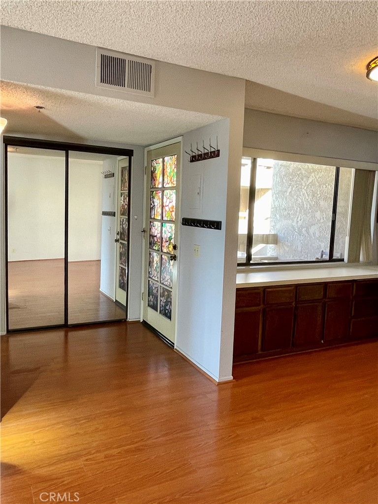The Fountains of Fullerton is a 55+ Community in desirable Downtown Fullerton that is within walking distance of Downtown Fullerton. Quiet and secluded end unit location on the 2nd floor with a greenbelt & park view from the patio area. This open studio condo has a spacious living area with adjacent kitchen that features a stove, dishwasher and plenty of counterspace plus a large window that overlooks your own private patio. Wood-like laminate flooring throughout the unit plus storage is provided by two nice-size closets. The bathroom has a large vanity and tub with shower. Relax in comfort with forced air heat and central air. Community laundry is just down the hall! The Fullerton Fountains amenities include a swimming pool, hot tub, new BBQ's, community laundry, as well as common areas. This gated community is located in a family neighborhood, adjacent to Ford Park, and provides security with gated parking and security cameras. Just a few blocks from the library, farmer’s market, and community center with senior center, restaurants, shopping and more. Conveniently located close to 91 Freeway, 57 Freeway, Metrolink, and Amtrak. Senior transit bus is available at this community. One of the lowest priced units in years in this complex!