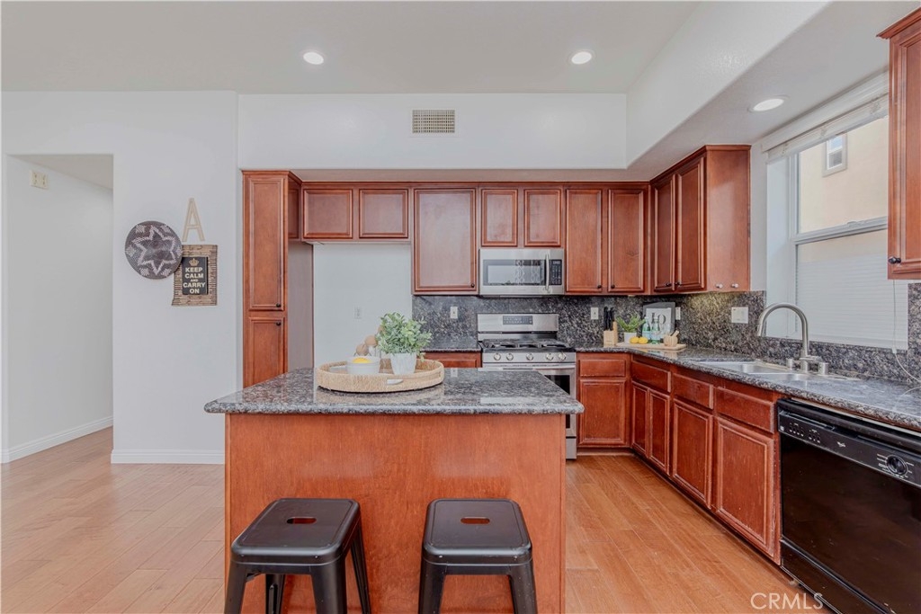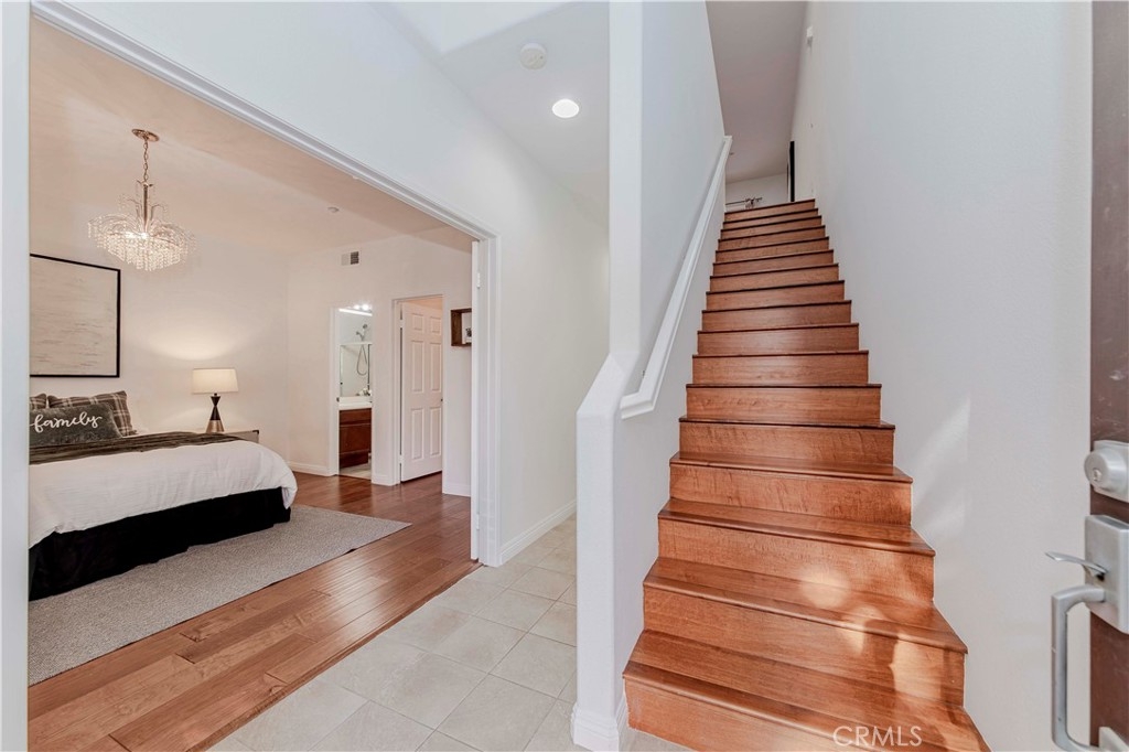 Gorgeous Townhome in Desirable Amerige Heights! Beautifully maintained 3-bedroom, 3-bath townhome featuring two spacious primary suites—one upstairs and one downstairs—each with en-suite bathrooms and walk-in closets. Bright and open floor plan with wood flooring throughout and an abundance of natural light. The modern kitchen boasts granite countertops, a center island, and a private balcony window, perfect for casual dining or entertaining. The home also includes a secondary bedroom with a large window, a full bath, ample storage, and a dedicated laundry space. Enjoy the convenience of a 2-car attached garage with direct access. Community amenities include high-speed internet, pool, tennis courts, parks, and playgrounds. Located within walking distance to top-rated schools—Robert C. Fisler Elementary & Junior High, Sunny Hills High School, and Montessori & Education Center. Close to Amerige Heights Town Center with shopping, gym, bookstore, and restaurants.