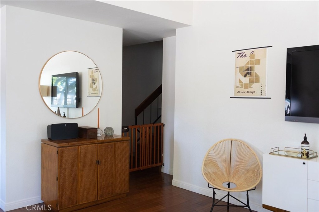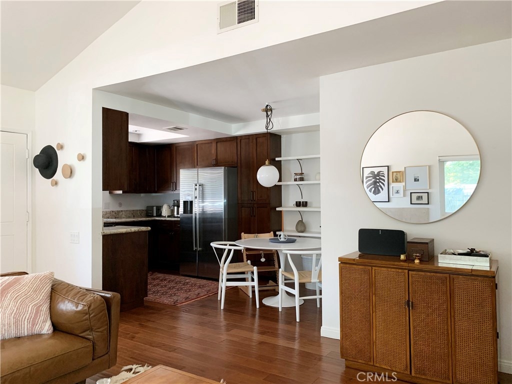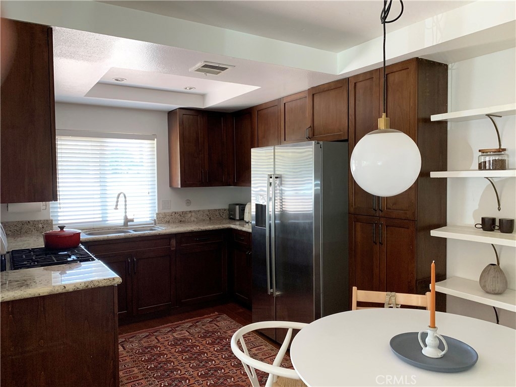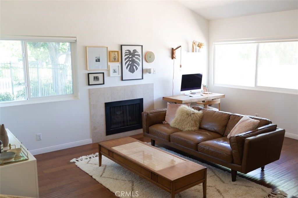 Turnkey 2 Bedroom 2 Bath condo in Fullerton. Gated Patio door leads to the main entrance. Open floor plan, high ceiling, fireplace in the living room, hardwood flooring. Remodeled Kitchen with hardwood cabinets, granite counter tops, stainless steel BOSCH appliances. Wood paneled dishwasher, stove, microwave and refrigerator. Half bathroom on the main level. Upstairs, there are two spacious bedrooms with wood flooring and a full bathroom with granite counter tops and custom tiles shower/bath tub. Washer and Dryer Hook ups in the garage. Two car garage with lots of storage cabinets. The community is gated and full of winding pathways through green grass and trees. There is a community pool and spa with spacious sitting area. Extra large parking area for visitor and very convenient street parking. Quiet and very desirable community. MUST SEE IT !!