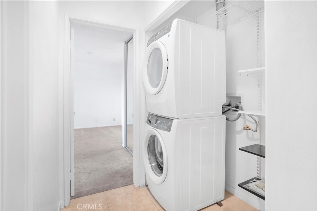 Fantastic 2 bed/2 bath condo PLUS bonus room (on separate level). Living room showcases a working fireplace, travertine tile, and a great view of the patio. Kitchen gets sunlight from a nice window overlooking the patio and includes French door refrigerator, dishwasher, above range microwave, and gas stove. Washer and gas dryer in unit, also included. The master bedroom has a private bathroom and two closets, including a walk-in closet. Updates include double-paned energy efficient windows in the living room (patio sliding doors) and both bedrooms, as well as an A/C unit and gas furnace, all installed in 2017. Carpet installed in bedrooms in 2019. Unit comes with a spacious two car garage and one additional unreserved permit parking. Complex has a pool and a mini dog park area. HOA pays for water and trash. Homes in this neighborhood have access to fiber optic internet with GigabitNow (being the first area completed in all of Fullerton). Conveniently located near the 91 and 5 freeways for those who commute. Less than 15 minutes from Disney.
