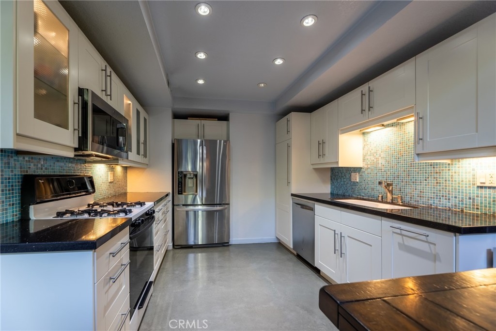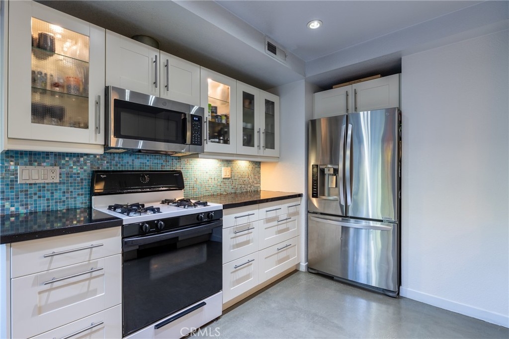 Beautiful End Unit Townhome In The High Demand Hidden Lakes Community Is Waiting For You! Beautifully Maintained Interior! Gorgeous Polished Concrete Flooring Through Out Down Stairs Area! Added On 1/2 Bath Beautifully Done With Permits! Modified Original Kitchen (Done With Permit) And Upgraded It With Lot's Of Beautiful Modern Cabinets , Built In Stainless Steel Appliances , Recessed Lighting , Quartz Counter Top's And Tiled Backsplash! Custom Shelving In Downstairs Living Room! The High Ceilings Along With The Kitchen Modification Gives You A Large Very Open Floorplan! Installed Is A Modern Industrial Handrail And Upstairs Balcony Railing! Large Master Bedroom With High Ceiling And Ceiling Fan! A Beautiful Sliding Glass Barn Door Was Installed For Master Bathroom Privacy! Upgraded Master Bathroom Vanity With Double Sinks! Upgraded Jetted Bath Tub And Shower! Hard To Find Direct Garage Access With Custom Loft Storage! Very Cozy And Tranquil Back Patio with A Calming Association Creek And Lot's Of Vegetation Makes This One Of The Most Sought After Communities In Fullerton! Close To Popular Downtown Fullerton With It's Many Restaurants And Entertainment! Convenient Access To The 91 & 57 Freeways! And Close Proximity To Cal State Fullerton! Your Clients Wont Be Disappointed!