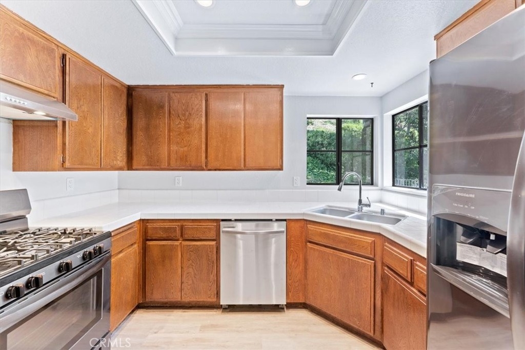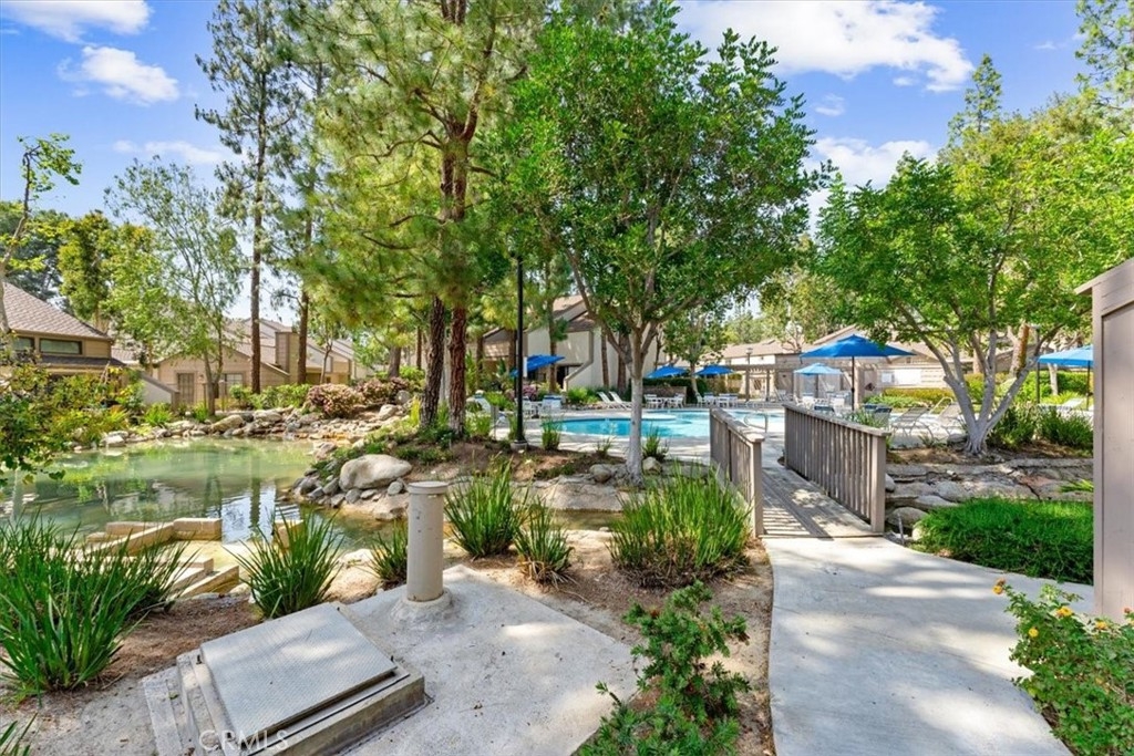 Original owner just completed updating this rare 3 bedroom town home in the desirable Hidden Lakes Community. All 3 bathrooms have been renovated with new vanities, new flooring, new lighting, new toilets and fixtures. Home shows light and bright with additional sunlight unique to this location and to it being an end unit. Living room is bright and spacious. There is a separate dining room and wet bar area. Kitchen has been updated with recessed lighting and new appliances. Full sized washer-dryer hookups in downstairs bathroom. Master bedroom has balcony overlooking the stream. This community was built with Aluminum wiring, Owner just had Fullerton Electric , update to "copper tips" for safety. All outlets were upgraded and garage will be as well as all GCCI's. Patio area is very private but cannot be fenced. Community has resort like pool area an additional spa, 2 tennis courts and lush walking trails. Located close to Downtown Fullerton's Dining, Art and Entertainment. Easy access to both the 57 & 91 Freeways.