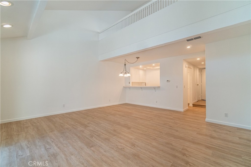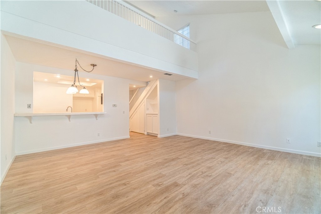 Welcome to this beautiful move in ready loft style design 1 bedroom/ 1 bath spacious condo located in the idyllic Hidden Lakes Community. Set towards the middle of the community, 523 Blue Water Lane is an end unit close to the pool area. The entry flows into an airy floorplan that opens to a great room with plenty of windows and natural light. New luxury vinyl flooring throughout. The kitchen is open to the main living area and has a counter-height breakfast bar that's perfect for entertaining or extra seating. Plumbing is present for possible addition of a downstairs wet bar or bathroom. This home features a vaulted ceiling. You can walk outside on the private patio overlooking the peaceful stream that meanders through the complex. The kitchen includes a gas stove and plenty of storage. Upstairs features the oversized loft bedroom, walk in closet and beautifully upgraded bathroom. The garage has plenty of storage, including a built-in storage area with a pull-down door access. The garage also includes a washer, dryer and direct access to the unit. This community has plenty of parking for family and friends while maintaining the quiet peaceful ambience the Hidden Lakes Community provides. The Hidden Lakes community is close to shopping, freeways, parks, dining, nightlife, as well as close to the Fullerton Loop recreation trails, Coyote Hills Golf Course, Hillcrest Park, schools, grocery store options, and so much more.