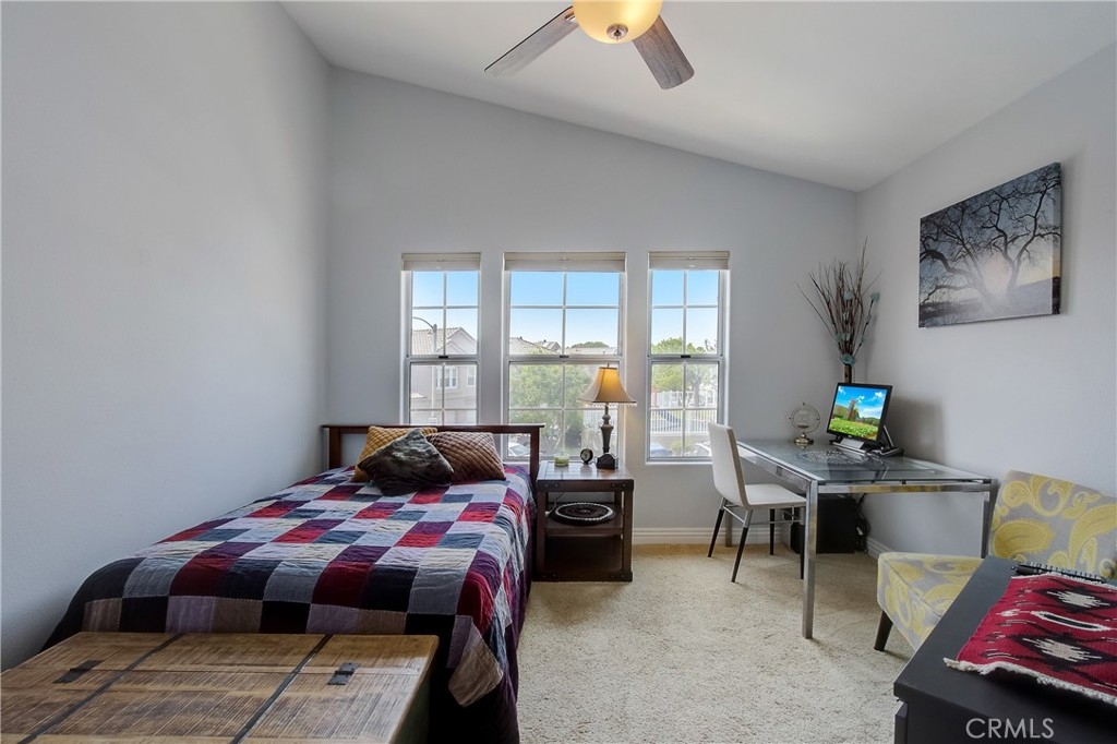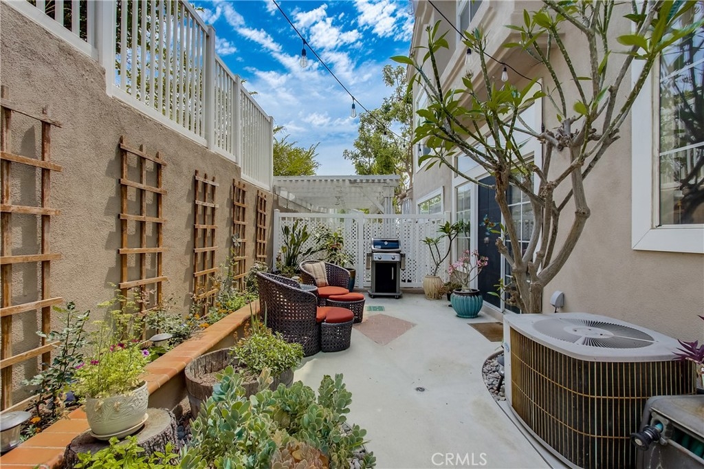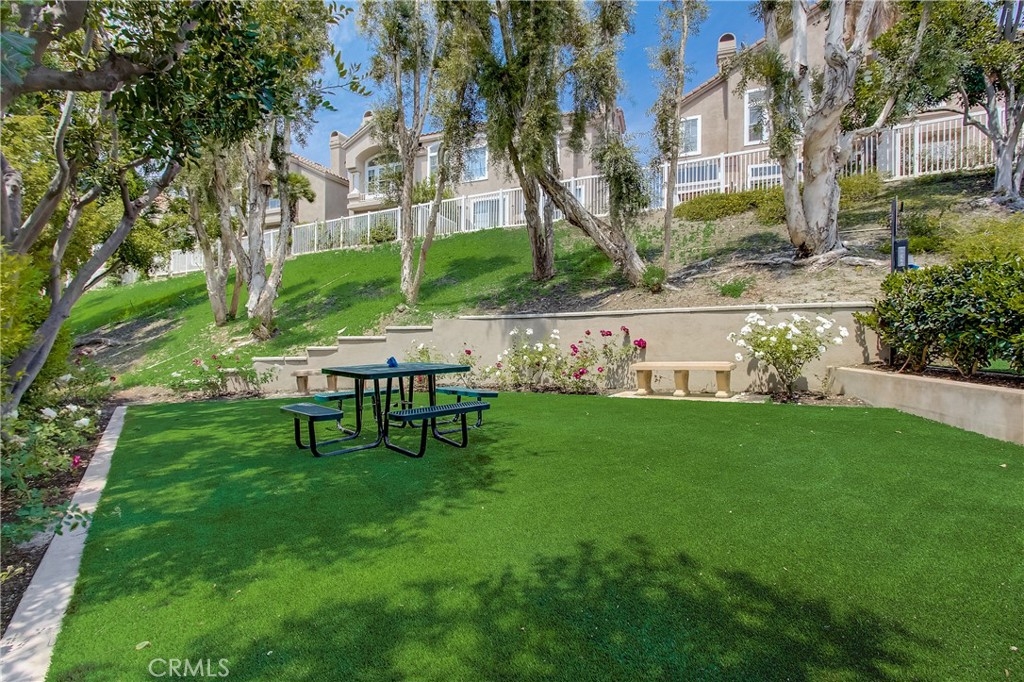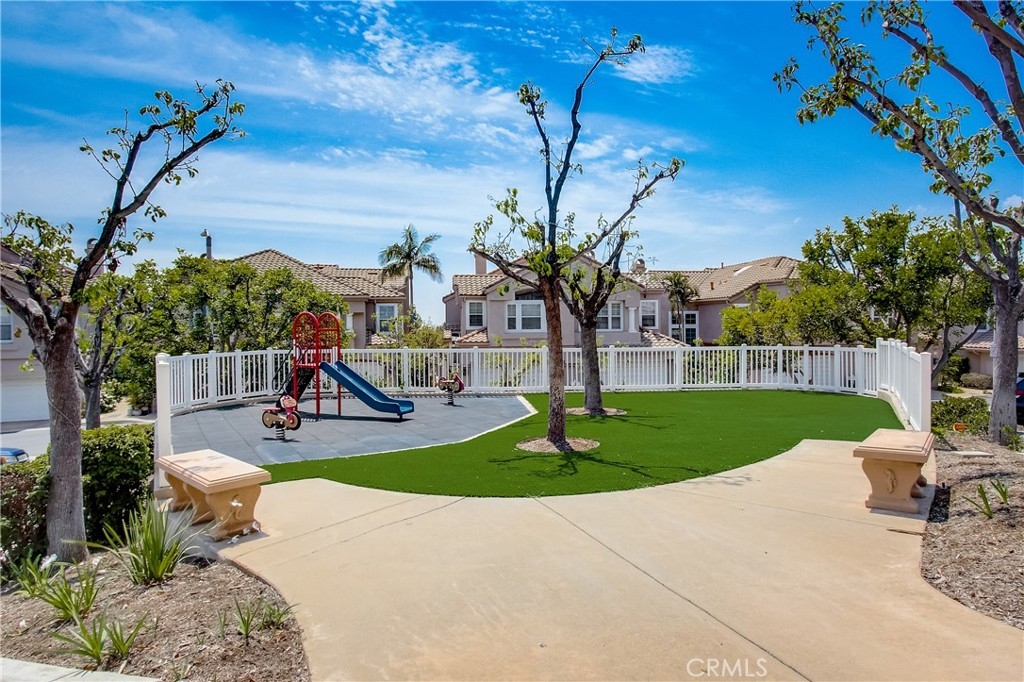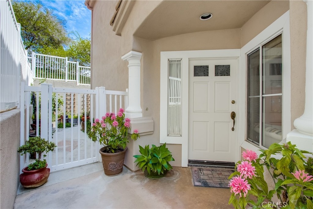 Lovely Townhouse in the highly desirable community of Maison de Fluer of Fullerton. Meticulously maintained this 3 bedroom 2-1/2 bathroom home is ready for its new owners. Open and bright dining room and living room with cozy fireplace and dark engineered wood flooring open to the large patio and backyard filled with bountiful fruit trees and vegetable garden. Dark kitchen cabinets and Granite counters with Stainless steel Appliances plus an attached breakfast nook. Upstairs the large primary suite features vaulted ceilings, a walk-in closet, and a spacious en suite bathroom with a sunroof. The laundry room and linen closet plus 2 generous sized secondary bedrooms share the hall bathroom to complete the upstairs. 2 Car attached Garage with direct access. Association Amenities include a Pool and Spa, Playground, low dues, and no Mello roos. Ideally located across from the tot lot and lots of guest parking. Close to shops, dining, and Ralph B. Clark Park, this home will not last!