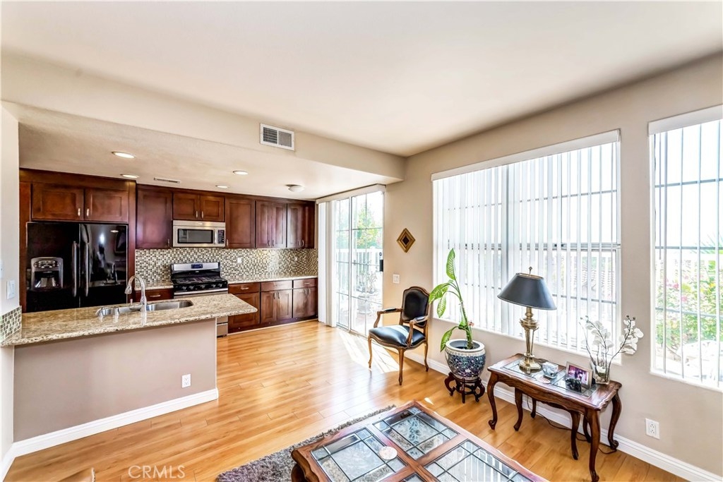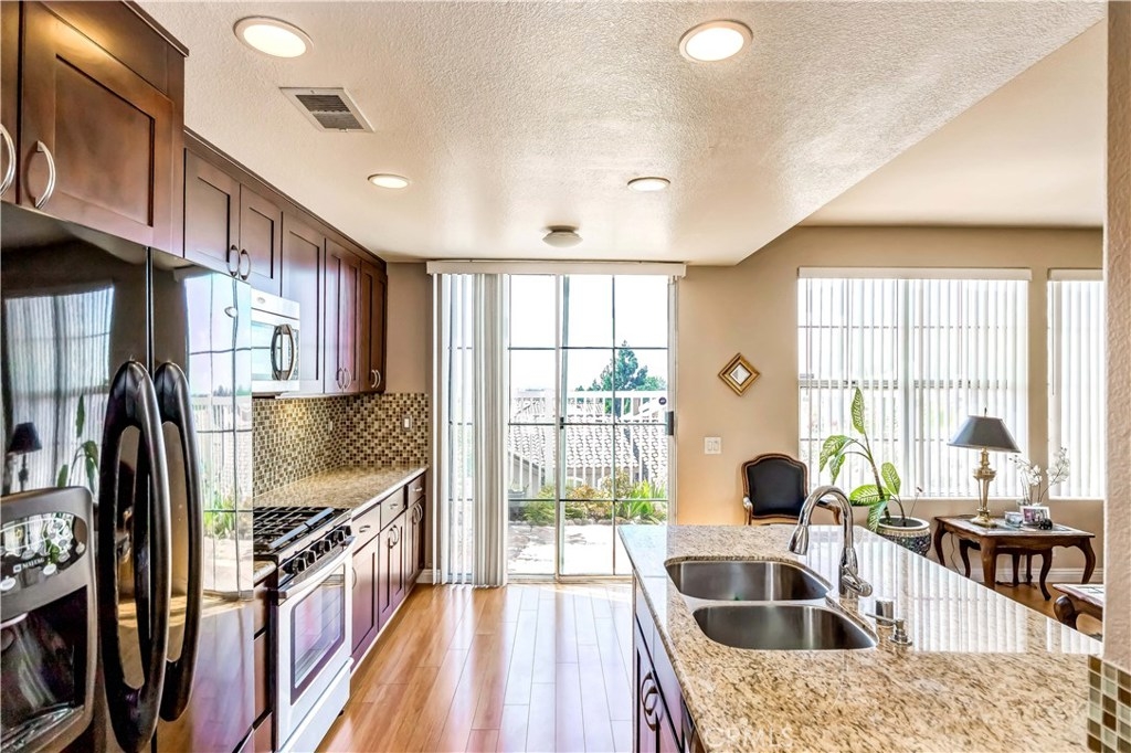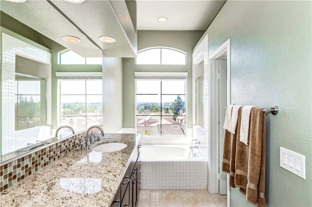 The Best Location In "Maison De Fleur" Community, Spectacular View Townhome!!! Enjoy City Lights View and Disneyland Fireworks!!! Largest Model Attached on Only One Side, Cathedral Ceiling, Skylight and Lots of Windows Make It Extremely Bright and Airy, High Ceiling Master Suite with Granite Counter, Dual Sinks And Spacious Walk-In Closet, Updated Kitchen With Granite Countertop and Custom Tile Backsplash, Laundry Room Is Conveniently Located on Upper Level Individual Room, 2 Car Garage with Direct Access, Plenty of Guest Parking Spaces Right In Front, Close to Shopping, Restaurants and Ralph Clark Park, Absolutely Ready To Move-In!!!
