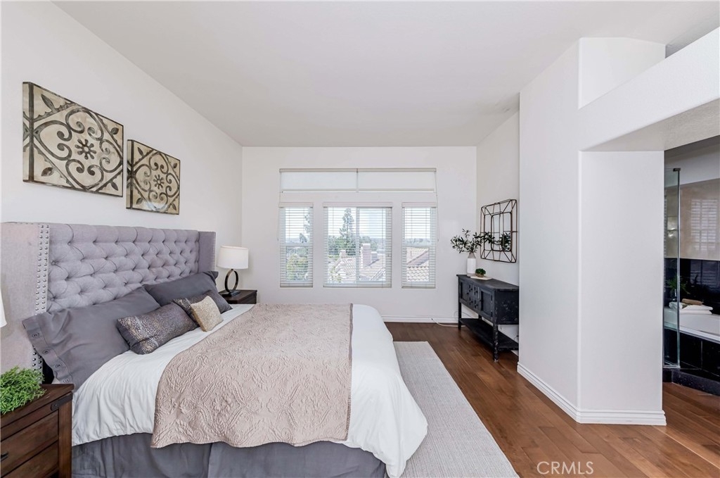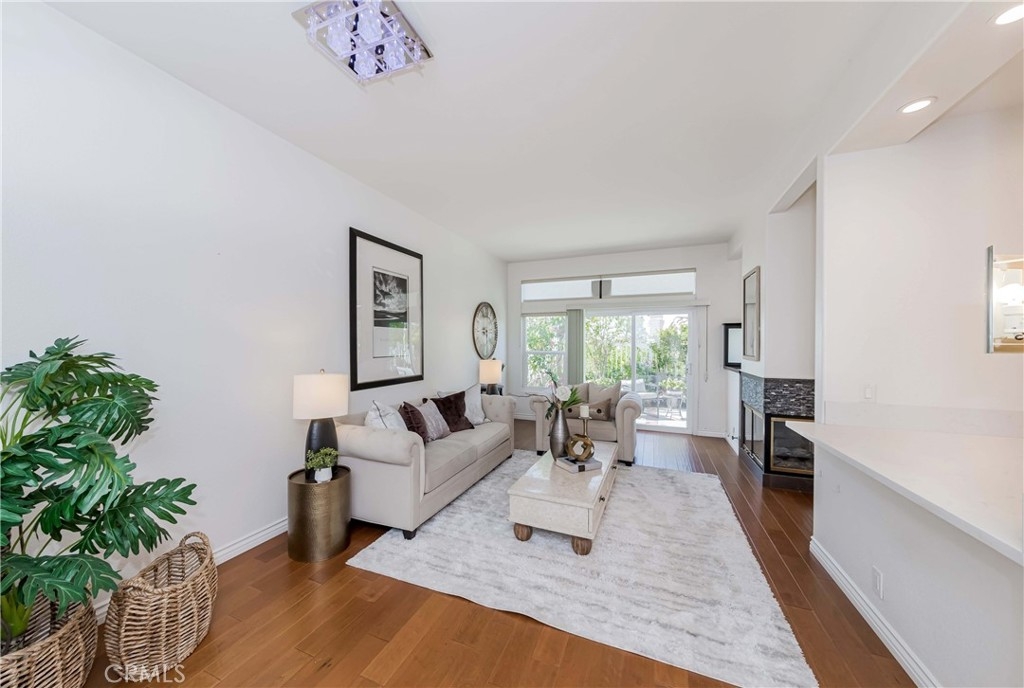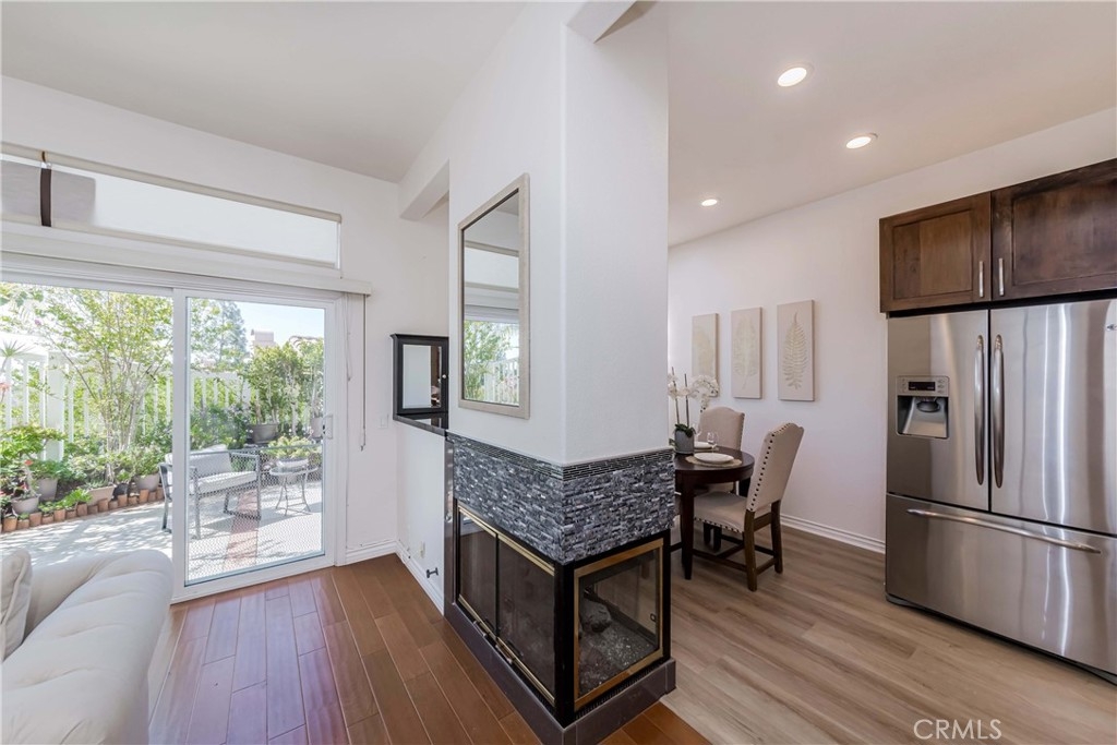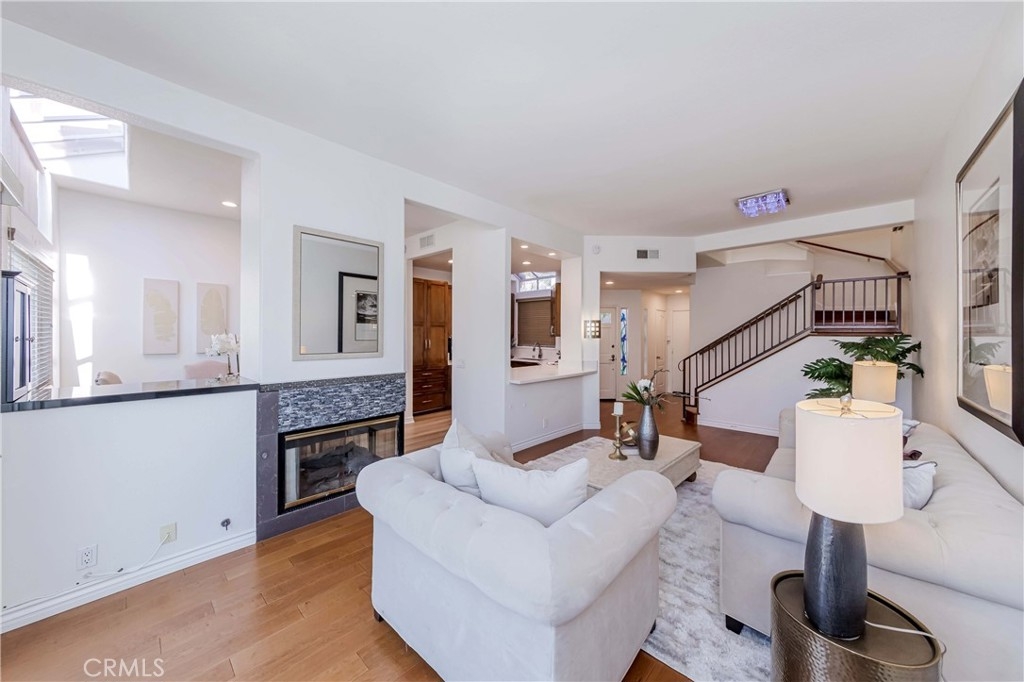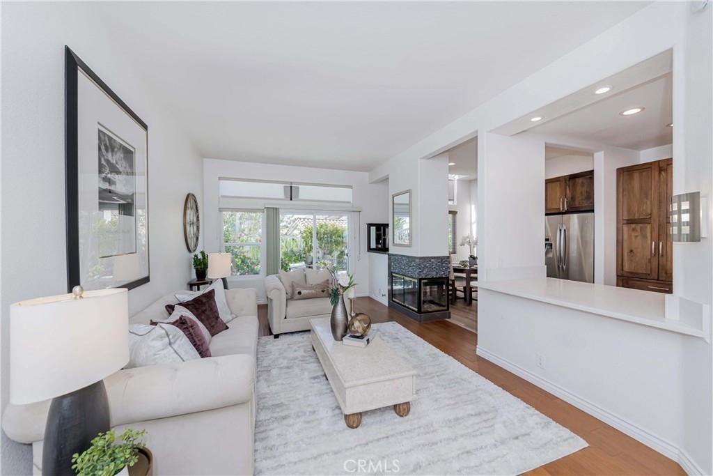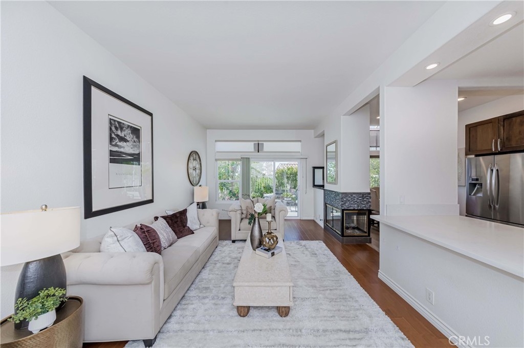 Welcome to this exquisite townhome sits on a premium location overlooking city light VIEW in desirable Maison De Fleur community. Situated at the top of the hill in the back of the complex, this home is attached on only one side, providing a sense of privacy. The private entry and location make this unit feel more like a house than a condo. This modern two-story residence boasts an open floor plan with no one above or below, complemented by large windows that fill the interior with natural light. The spacious living room features stunning engineerwood flooring and a dual-sided fireplace, perfect for cozy evenings. The remodeled kitchen features quartz countertops, stainless steel appliances, custom cabinetry and a breakfast bar. Adjacent to the kitchen, the formal dining area with a solarium window provides a wonderful space for entertaining family and friends. Upstairs you’ll find a private Master Suite with city views, bathroom with sinks, oval tub, separate shower and a walk-in closet. Across the hall are two spacious secondary bedrooms and another full bathroom.The convenient upstairs laundry with full size washer and dryer. The home boasts direct access to your two car garage - plus just a few steps away you’ll find guest parking. The community amenities includes Pool, Spa and Playground. This beautiful home is centrally located near shopping, restaurants and the 105 acre Ralph Clark Regional Park that is just across the street. Must See !!!