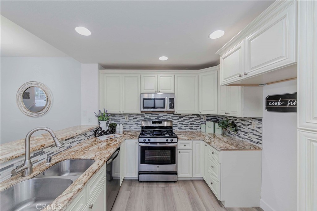 Nestled in the highly sought-after community of Maison De Fleur in Fullerton, this desirable home offers comfort, convenience and charm. Step inside to discover a spacious open floor plan featuring 3 bedrooms and 2.5 bathrooms. The welcoming living room boasts brand new flooring and a cozy fireplace, perfect for relaxing or entertaining guests. The upgraded kitchen includes elegant cabinetry and granite countertops along with a cozy breakfast nook where you can enjoy your morning coffee. Abundant windows for a bright, airy ambiance while skylights bring in plenty of natural light, creating a warm and inviting atmosphere. The master suite includes a walk-in closet as well as a mirrored closet. Down the hall, you will find two additional bedrooms, a full bathroom, and a convenient upstairs laundry chute. Enjoy direct access to a two car garage and spacious back yard. Take advantage of the community's HOA amenities, including a sparkling pool, relaxing spa and children's playgrounds. This home is centrally located near a variety of shopping destinations such as Lowe's, Costco, Walmart, Sam's club and more with a wide selection of restaurants just minutes away. You'll also be within walking distance of Ralph B. Clark Regional Park and Westridge Golf Course offering the perfect balance of nature and neighborhood living.