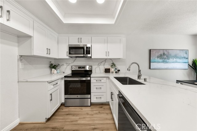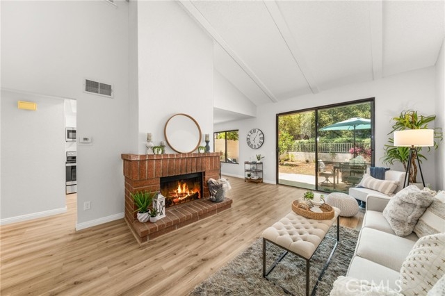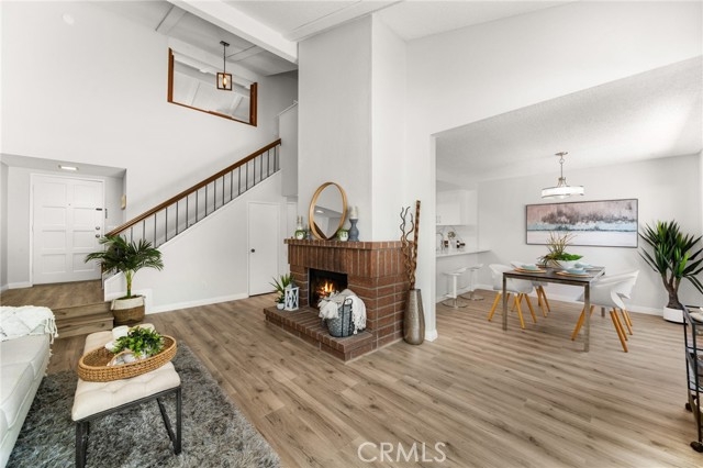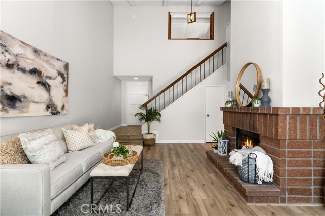 Beautifully remodeled 2 bedroom, 2.5 baths condo located in the highly sought after community of Malvern Creek in Fullerton, truly an awesome floor plan. This is the unit you’ve been waiting for, private, serene inside track location, nice size private backyard with patio overlooking lush landscaping and mature trees. Enter into the spacious living room with vaulted ceilings, tasteful brick fireplace and slider that opens to a lovely backyard with views of beautiful tree lined slope. Kitchen is a complete remodel with white shaker cabinets, gorgeous quartz countertops designed with kitchen bar that can easily accommodate up to four bar stools, new GE stainless steel appliances, stove, microwave and dishwasher, recessed lighting and opens to the dining area with views that extend out to backyard. The expansive primary bedroom is nothing short of spectacular with vaulted ceilings, large walk-in closet with mirrored wardrobe sliding doors, luxury, serenity, harmony are the best words to describe the remodeled primary en-suite bath with white shaker cabinets, dual sinks, fabulous quartz counters, black pulls and plumbing fixtures, walk in designer style tiled shower with large cut out to accommodate all your toiletries complete with on trend hexagon tiled floor. New vanities, countertops, toilets and fixtures in the full upstairs hall bath and downstairs half bath. The 2nd spacious bedroom offers a view to the backyard and beautiful trees. Key features include new trending interior paint, large baseboards, newly installed laminated wood floors throughout, new light fixtures, central air and an area upstairs that’s perfect for a small desk/work area. Good size attached two car garage, laundry hooks ups with direct access to home and accessed from the private driveway shared by only 2 units. Fabulous community amenities include 2 pools, spa, clubhouse, work-out room, well maintained grounds and greenbelts, generous guest parking, walking distance to shopping, restaurants and located in great school district, Sunny Hills High School!