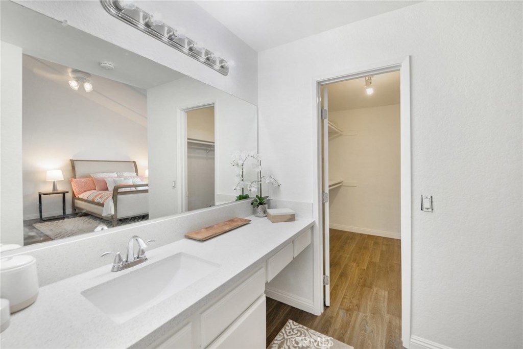 Absolutely perfect home in the desirable Malvern Creek! This gorgeous property features 2 Generous Bedrooms+Loft & 2.5 Bathrooms, approx. 1381 sq ft. Step into your beautiful Open Layout, you will be greeted by an entry w/ High Ceilings, large open Living Room connected to the Back Patio with scenic views of the hills behind. New Flooring throughout! Tastefully remodeled Kitchen w/ granite countertops, white cabinets, newer high-end LG appliances & recessed LED lighting! You have dining options of your private breakfast counter or dine in area. Lead yourself upstairs to be greeted by a large Master Suite w/ high ceilings and walk in closet. Second Bedroom also boasts high ceilings & a great view of the hills. Spacious Loft & hallway bathroom. Some benefits of this home: water softener, water purifier, window blinds/coverings, attached 2 car garage w/ direct access, resurfaced garage floor and laundry hookups. LocationLocationLocation this property is nestled away in the rear of the community so you may enjoy the peace and quiet ambiance! Malvern Creek features; pool, spa, greenbelts, clubhouse & very ample parking for guests. Walking distance to dining, shopping & award-winning Fullerton school district!
