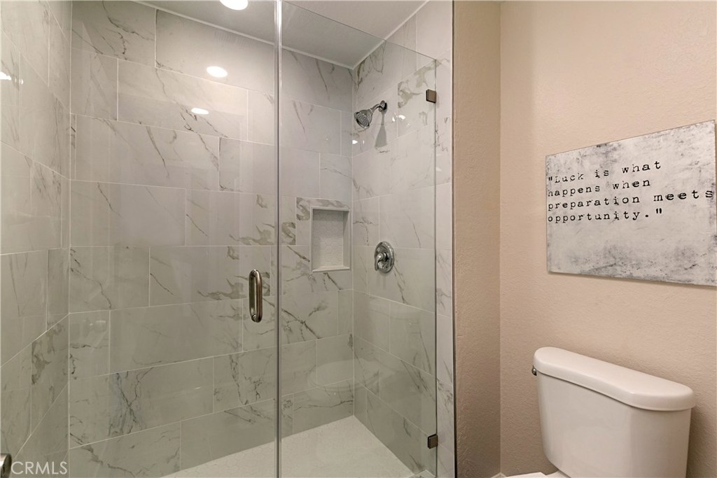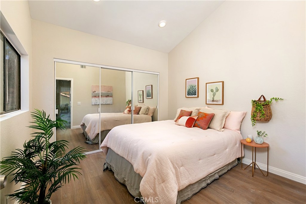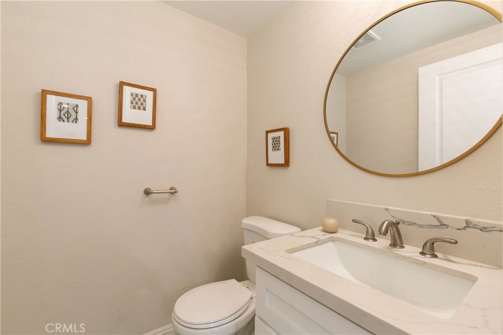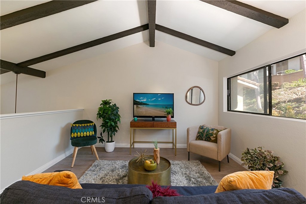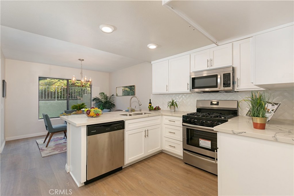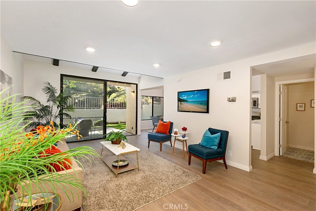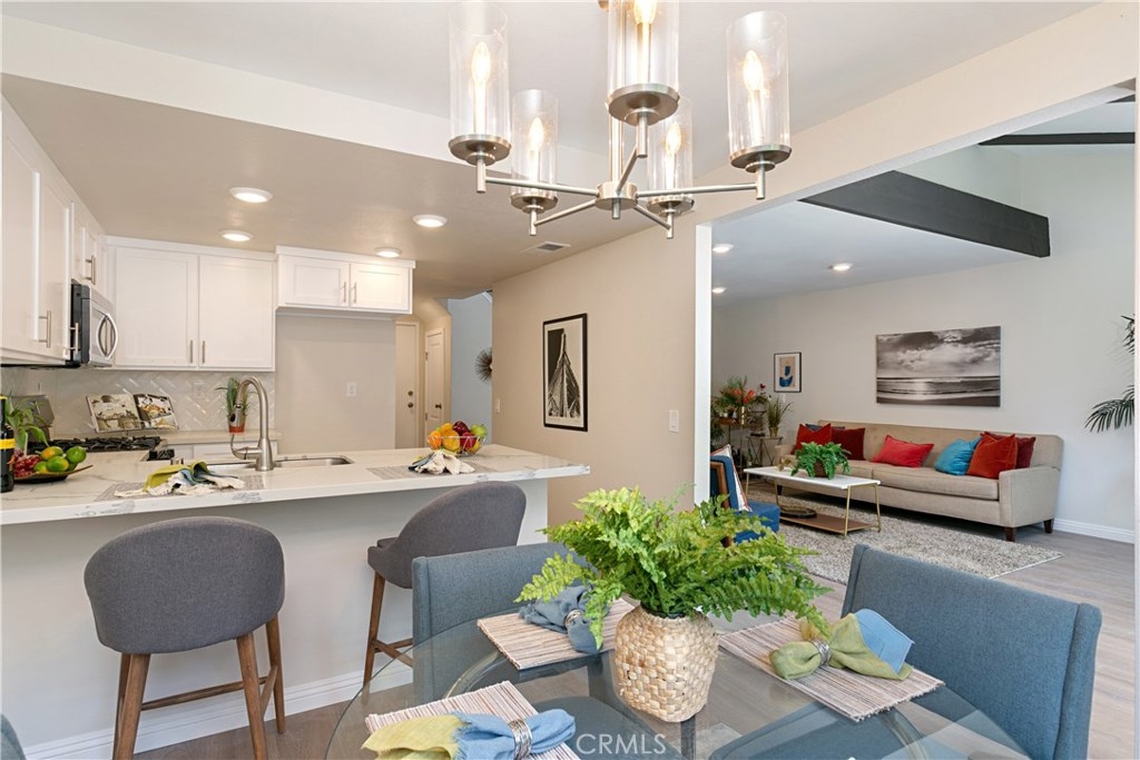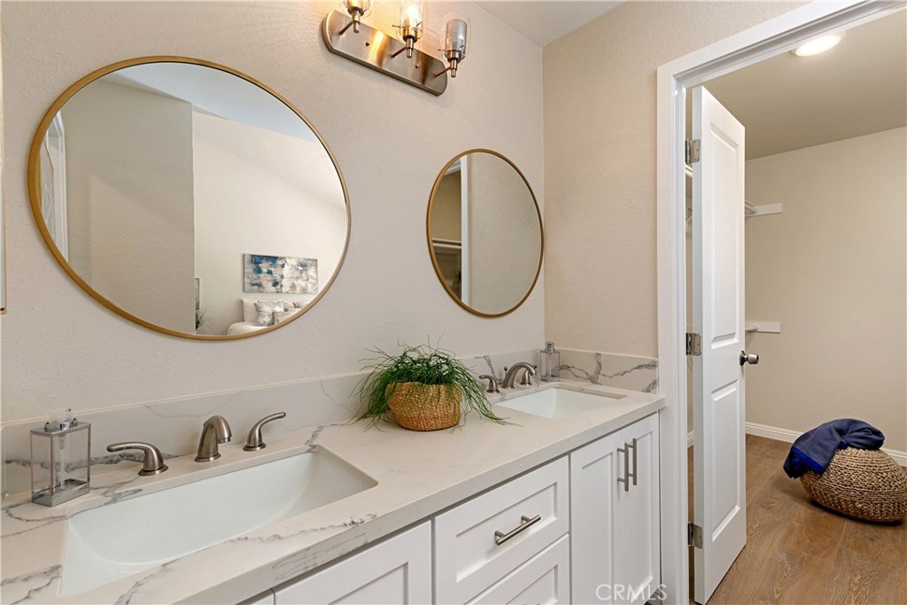 Situated in the coveted Malvern Creek community, this desirable townhouse-style condo has been expertly remodeled. With 2 bedrooms, 2.5 bath & loft you'll find many upgrades throughout including recessed lighting, new stylish laminate flooring and baseboards, new central A/C & heat, and attached 2-car garage with laundry hookups. Upon entry, you are welcomed by vaulted ceilings, an open airy layout, and a herringbone tile foyer. The living room is open on either side providing an effortless flow. Large sliding glass doors lead to your backyard area with concrete patio and new grass. The remodeled kitchen is open to the dining area and has been redesigned with quartz counters, custom white shaker soft close cabinetry, herringbone tile back splash, stainless steel appliances, and breakfast bar. The stylish half bath is located downstairs for your and your guests' convenience. Upstairs, enjoy the spacious loft offering versatile potential for its' use. Adjacent you'll find the remodeled full bathroom with new quartz counters, custom cabinetry, tile floors, and subway tiled bath. The expansive master bedroom is truly a retreat of your own with vaulted ceiling, large walk-in closet, and attached en suite bathroom complete with dual sinks, new quartz counters, custom cabinetry, and frameless glass shower. This well kept community offers a pool and spa. Wonderful location close to award winning schools and shopping and dining of Amerige Heights Town Center.