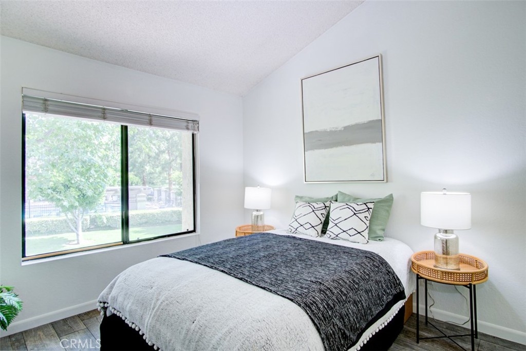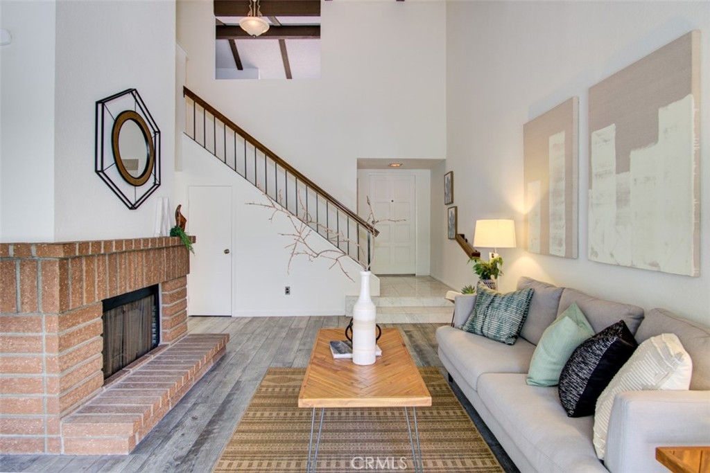 LOCATION, LOCATION, LOCATION! Peaceful setting! Nestled in the hills of Fullerton and one of the BEST LOCATIONS in the highly desirable and popular "Malvern Creek" community. Surrounded by lush mature trees and greenbelts. Fantastic opportunity to live in this exclusive neighborhood. Shows like a model -- very pleasant neutral decor makes this upgraded home a breeze to move into. Lovely two story model with no one above or below. Two bedrooms and 2.5 bathrooms; upon entering you will find a perfectly flowing floor plan with abundance of natural sunlight. Dramatic beamed ceilings, warm and inviting living room with cozy brick fireplace. Downstairs half bathroom, stunning wood grain tile flooring throughout. Nicely remodeled open kitchen with Quartz countertops, upgraded cabinets, black color appliances and casual dinning area. Huge master suite with vaulted ceiling, walk-in shower and spacious walk-in closet with mirrored closet doors. Generous sized secondary bedroom overlooking pool, greenbelt and beautiful woodsy landscape. Big sliding door leading to relaxing private large patio for gardening, enjoying morning coffee, pets, perfect for outdoor entertaining. Direct access to the 2 car garage plus driveway and plenty of guest parking nearby. New electrical circuit breaker panel, new central air conditioning/furnace, all ducts. Freshly painted interior walls. Award winning school district. Walking distance to "Robert Fisler Elementary & Jr." and "Sunny Hills High" schools. Enjoy Association pool/spa/clubhouse. Beautiful grounds, very well kept by the Association. Property sits across the Amerige Heights Shopping Center. Dues of only $266.00/mo. A 10+!