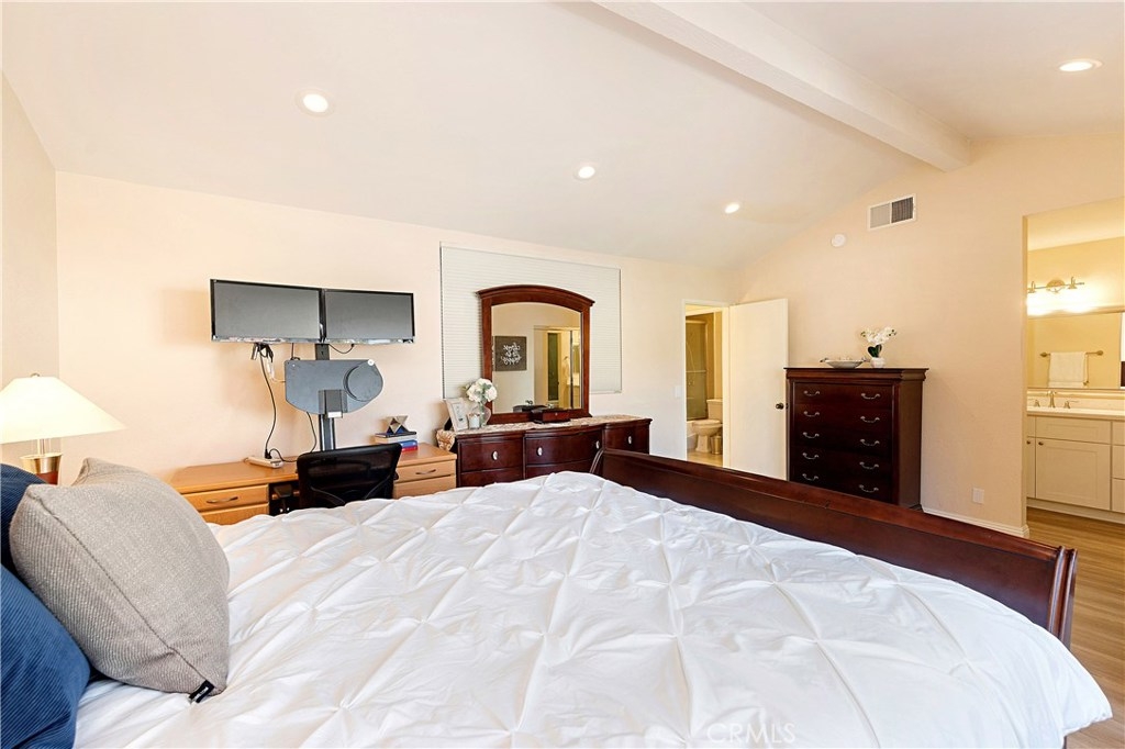 Gorgeously remodeled condo located in the highly sought after Malvern Creek Community offers 2 bedrooms and 2.5 bathrooms. The home shows beautifully with recessed lights, modern wood flooring & trendy tile flooring throughout, lots of natural light with vaulted ceilings. Enjoy the spacious family room with cozy fireplace, sliding door to the lovely patio. The open floor plan presents the formal dining room and is connected to a gourmet kitchen with stainless appliances, granite counter top, wood cabinetry, trey ceiling and it circles back to the family room. Upstairs to the master suite features vaulted ceiling, large closets and is completely remodeled throughout the gorgeous master bathroom with beautiful vanity, quartz counter and custom designed shower stall. Spacious secondary bedroom shares upgraded beautiful hall bath. Private enclosed patio to entertain friends and family. Newer air conditioner and heater. 2 car attached garage with storage cabinets and laundry hook ups. Complex grounds has 2 pools and spas plus serene ground with lots of trees and grass. Great location across from Amerige Heights... close to shopping, dining, and Fisler Elementary and Middle School. Must see to believe it.