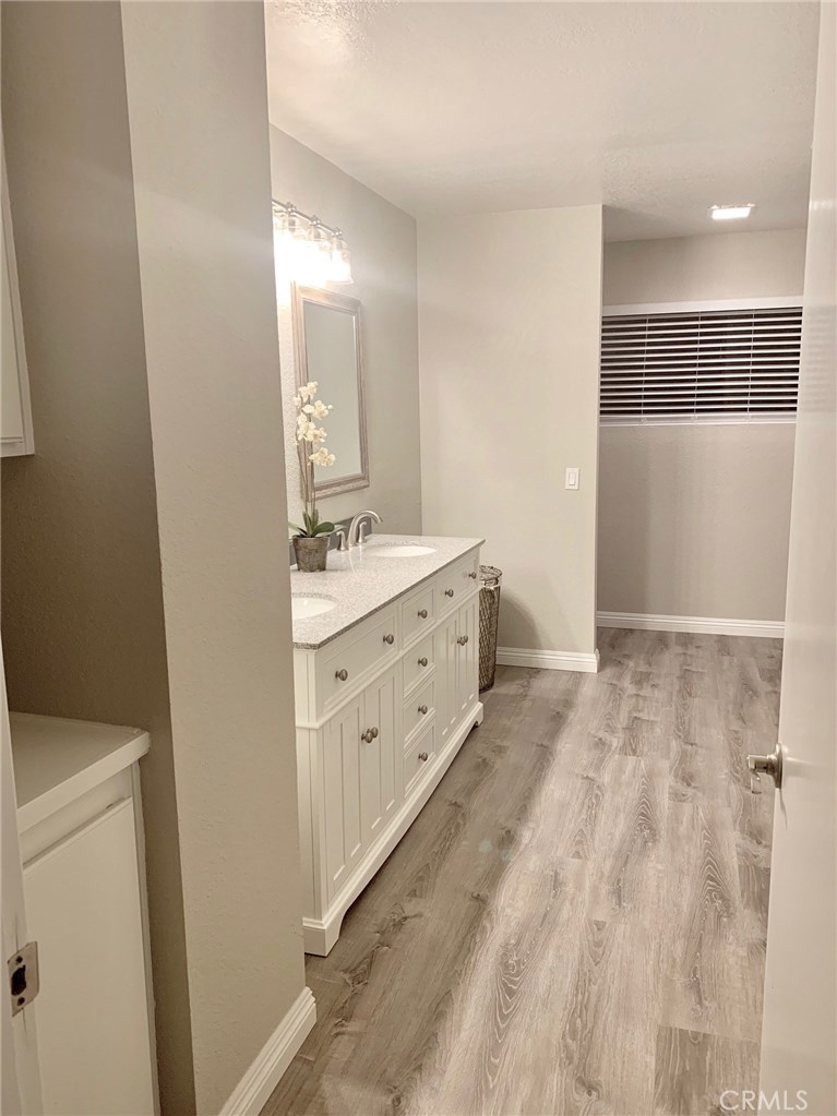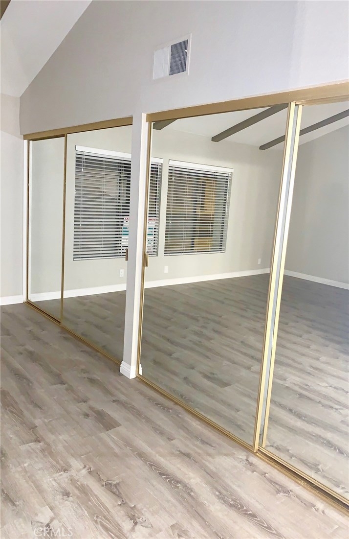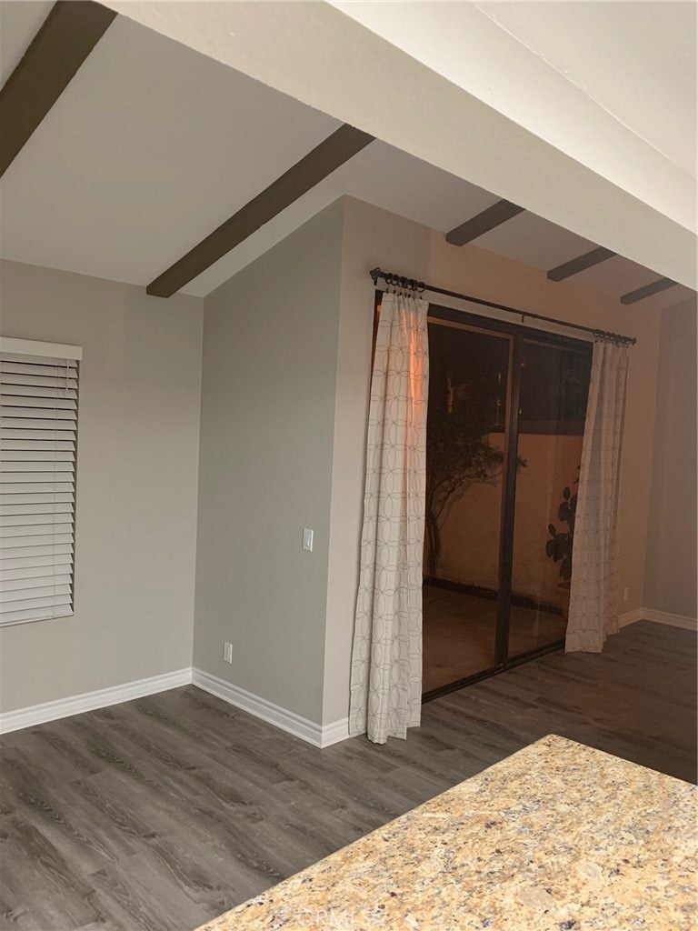 Rare upgraded spacious one bedroom condo in the highly sought after beautiful community of Malvern Creek. This upgraded home is an end unit that is located in a park like setting and is a short walk to the community pool and jacuzzi. The home has a two car attached garage with a laundry area and direct access into the home. The vaulted ceilings with new neutral paint accent the custom baseboards and beautiful laminate wood floors that are throughout the home. The wood burning fireplace is perfect for those cold days and the large private backyard is perfect for a barbeque on warmer days. The upgraded kitchen has white cabinets, granite countertops and a brand new oven. The extra-large master suite is light and airy with vaulted ceilings and a huge closet plus plenty of room for an office space or a sitting area. The upgraded master bath has a new vanity with a granite counter top and a separate shower and bath tub. The home is walking distance to the Amerige Heights Town Center with a grocery store and plenty of restaurants. This home is a must see and will not last!