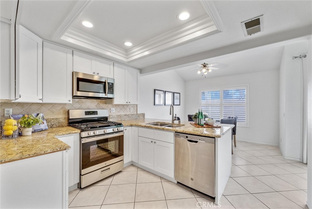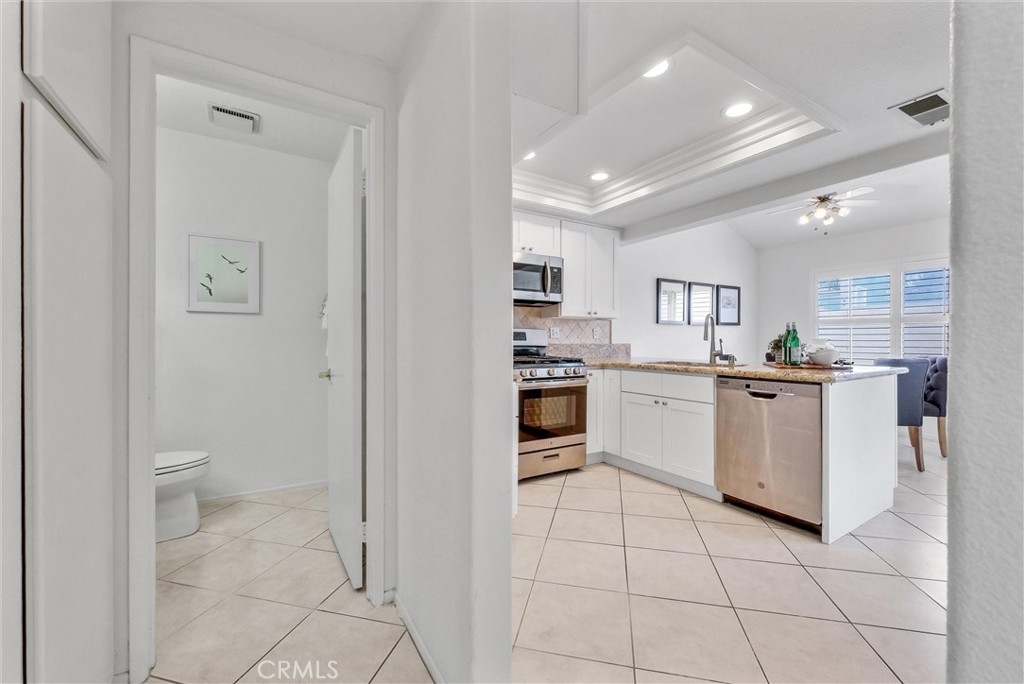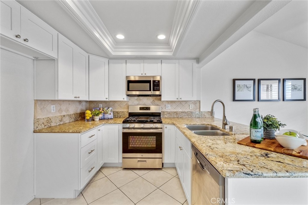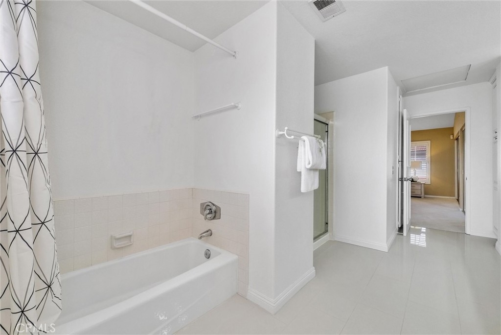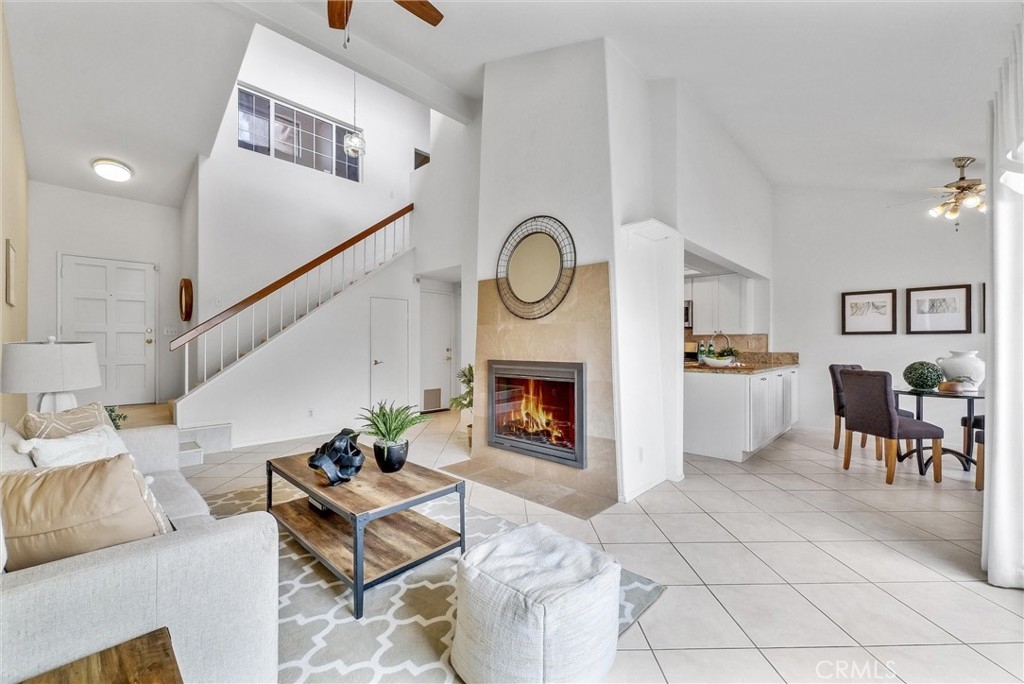 SHOWS LIKE A MODEL HOME! Absolutely picture perfect and in immaculate condition! Nestled in the hills of Fullerton's popular "MALVERN CREEK" community, one of the most desirable neighborhoods, this property sits across the street from the Amerige Heights Town Center. Surrounded by lush mature trees and greenbelts; a wonderful atmosphere. Very nice development, quiet, relaxing community ambiance; surroundings are very well kept by Association. Lovely two story model with no one above or below. Rare one bedroom and 1.5 bathrooms; upon entering you will find a perfectly flowing floor plan with abundance of NATURAL SUNLIGHT. Dramatic cathedral ceilings, warm and inviting living room with upgraded fireplace. Powder room with white pedestal sink. Stunning tile flooring downstairs and carpeting in staircase and in bedroom. Gorgeously remodeled kitchen with granite countertops, upgraded white cabinets featuring lazy Susan, stainless steel/black appliances, trey ceiling, recessed lighting and casual dinning area. Huge master suite with vaulted ceiling, double mirrored closet doors, luxurious bathroom (tub & separate walk-in shower), dual sinks, Quartz countertop and nice tile flooring. Plantation shutters, ceiling fan and upgraded light fixtures. Both bathrooms have been remodeled/upgraded. Upgraded big sliding door leading to relaxing private large patio for enjoying morning coffee, pets, perfect for outdoor entertaining. Direct access to the 2 car garage and plenty of guest parking nearby. Award winning school district. Walking distance to "Robert Fisler Elementary & Jr. High" and "Sunny Hills High" schools. Enjoy Association pool/spa/clubhouse/greenbelts area. Beautiful grounds! Convenient location; close to the Buena Park Metrolink Station, restaurants, parks, grocery markets, banks, transportation & golf courses.