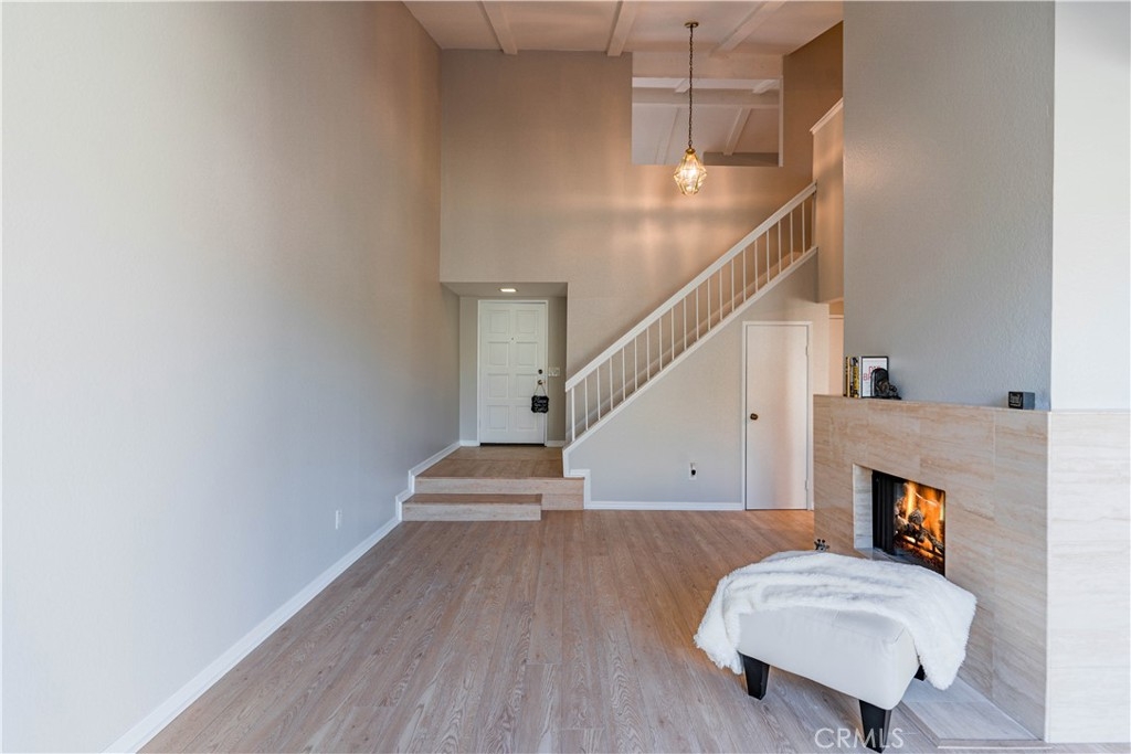 Move right into this spacious "Malvern Creek" townhome. Peaceful neighborhood with lots of guest parking and close proximity to The Amerige Heights shopping center across the street. Entertain in your own private outdoor patio. Kitchen has granite counters and breakfast bar which opens to the sunny dining nook area. Plenty of cabinet space and newer recessed lighting. Main floor has laminate flooring and all new interior paint. Primary bedroom upstairs has high beamed ceilings, walk in closet and primary bath with a shower. Secondary bath has a tub for relaxing. Enjoy the association amenities with a pool, spa, gym in the clubhouse, and plenty of open greenbelts. Picnic area and playground for the family. No mello roos, and low HOA dues which includes landscape maintenance. 2 car garage has direct access, and washer/dryer area. Plenty of storage. This Location is close to the golf course, restaurants, college, Disneyland, freeways, and more. Check out the video link