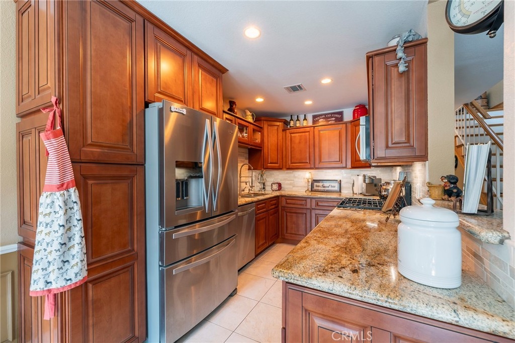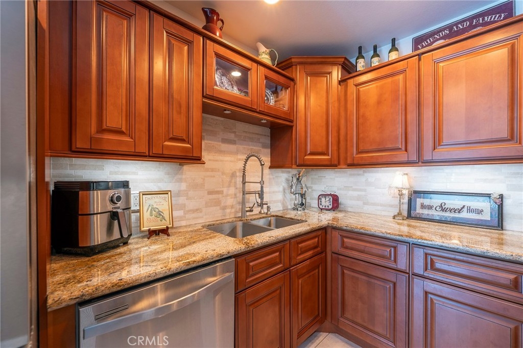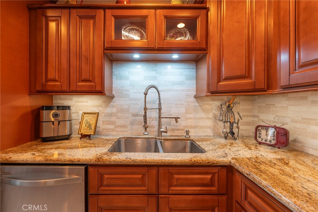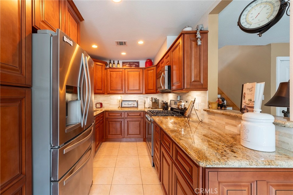 Welcome to this tastefully upgraded townhome in one of Fullerton’s most desirable neighborhoods. This open-concept home features a spacious primary suite and two additional bedrooms—one currently used as a cozy TV room and home office. The stylish kitchen boasts a raised ceiling, maple cabinets with slide-out drawers, granite countertops, stainless steel appliances, a chef’s faucet, under-cabinet lighting, and a custom backsplash—perfect for any cooking enthusiast. Downstairs features elegant travertine tile and a custom solid oak staircase. Upstairs, enjoy oak flooring with 5” baseboards throughout. The primary bathroom includes a custom-tiled shower with a teak fold-down seat, a modern vanity, and dual sinks. The second full bathroom offers a spa-like soaking tub, shower wand, towel warmer, and refined finishes. A remodeled guest half-bath is located on the main level. Additional highlights: dual-pane vinyl windows, dual-pane sliding patio door, custom shutters, brick gas fireplace, newer outlets and switches, six-panel doors with updated hardware, and a newer entry door with custom glass. Two private patios provide ideal space for outdoor relaxation or entertaining. This home is in excellent condition and move-in ready. The Mark III Community features a pool and spa, tennis court, clubhouse, and sport court. Ideally located near Downtown Brea, Cal State Fullerton, Fullerton College, Troy High School, and Coyote Hills Golf Club. HOA includes water, trash, and insurance. A perfect blend of comfort, style, and location—don’t miss this one!