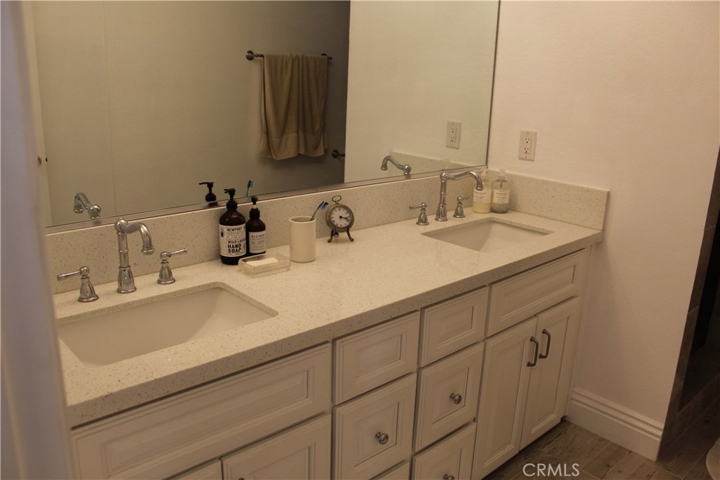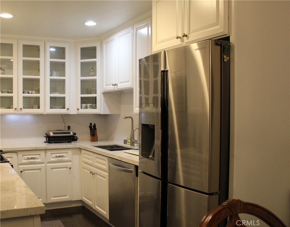 Welcome to this model-quality home in across street of Coyote Hills Golf Course Club House. This HIGHLY AND FULLY upgraded residence is an entertainer’s dream. Enjoy cozy evenings under the stars from the patio, the spacious living room with a stunning fireplace and a kitchen with white color theme of granite countertops, white cabinetries, stainless sink, faucets and pantry. The upgrades include: new wooden flooring, a stone-wall fireplace in the living room, an upgraded powder room with beautiful white quartz countertops. Upstairs, the private master bedroom features a fully upgraded bathroom. Two secondary bedrooms and a fully upgraded bathroom complete the second level of this home. In addition, there is a crown molding throughout all rooms and recess lighting. Just a short stroll to all the neighborhood restaurants, cafes, bank and the Coyote Hills Golf Course. This home is a wonderful opportunity to live in a completely turn-key home in the heart of the community of Mark III.