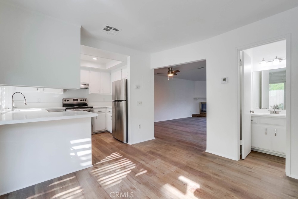 This two-story townhome features 2 bedrooms and 2.5 bathrooms and was updated in 2021 with new paint and flooring throughout, as well as new light fixtures, including recessed lights and ceiling fans. The kitchen has new granite counters and refinished cabinets and brand new appliances. At 1254 SF, the dual master bedrooms are spacious, both with updated bathrooms. The unit boasts a huge living room with a fireplace and a charming patio off the dining room. It has a detached two-car garage with plenty of storage. This home is conveniently located in Fullerton, near La Habra and Brea, and a short distance from many parks, including Laguna Lake Park and Loma Vista Memorial, as well as a 10-minute drive to Cal State Fullerton and Fullerton College. The community includes a pool, hot tub, and laundry facilities. (Current photos were taken when the property was vacant, the property is currently occupied)