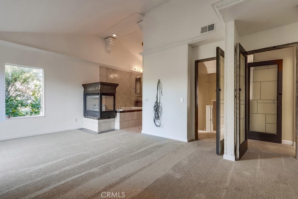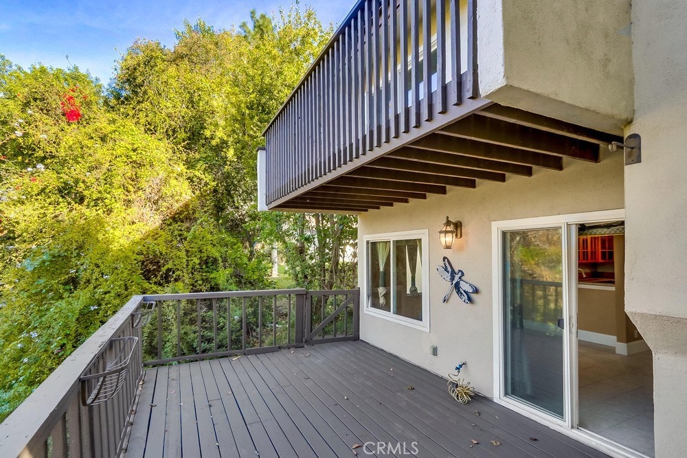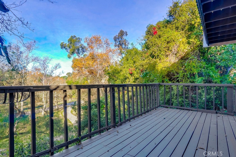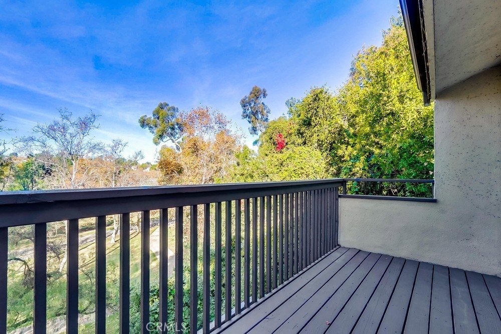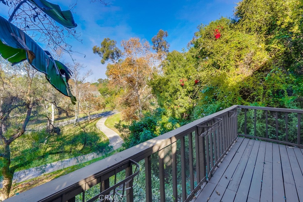 Wonderful end unit in a smaller Fullerton complex with a fantastic view of Craig Park from both the living room level and bedroom deck. Large 1640 sq ft corner unit with a remodled kitchen with stainless dishwasher and frirge. Large pantry right off kitchen, fireplace in living room, large dining room, atrium off living room could be used as a water feature. One bedroom and bathroom at entry level and master bedroom suite on upper level with two bathrooms upstairs.The master bathroom has a seperate shower with sitting area, large bathtub with fireplace and great view as well. Fantastic wood patio deck on the living room level and master bedroom level with gorgeous views of Craig park. Two car garage with laudry in the garage and added storage with stairs in garage. Community pool and guest parking nearby. Lots of great features in this unit.