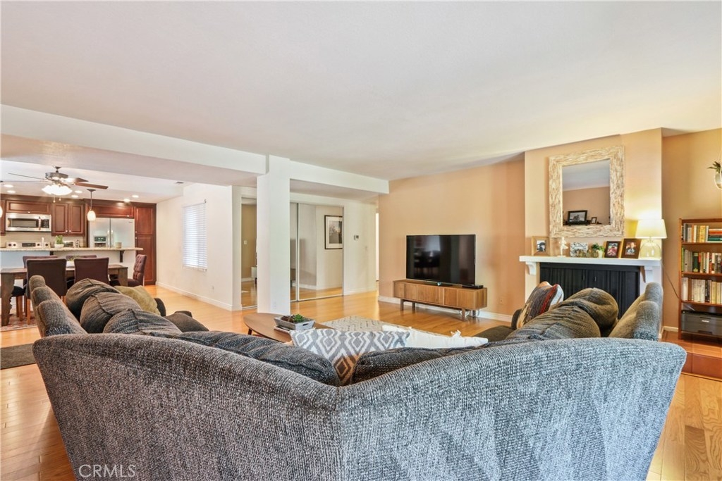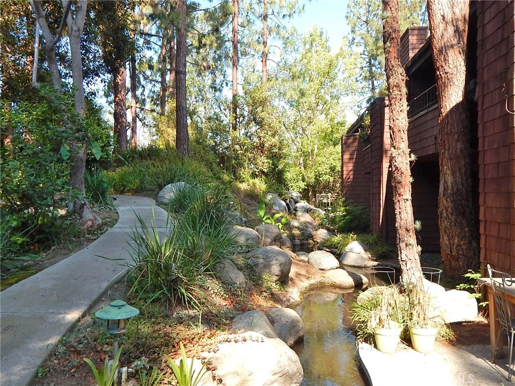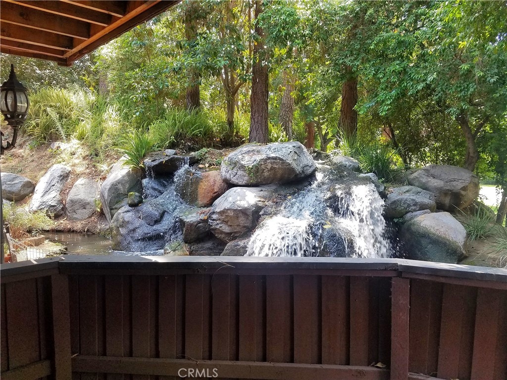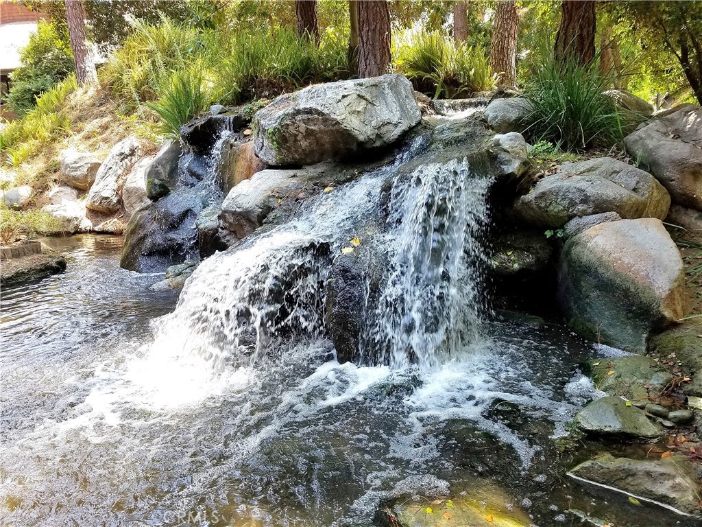 Spectacular remodeled, single story, end unit home! Fabulous open floor plan with an abundance of light. Beautifully remodeled kitchen with gorgeous wood cabinets, granite counter tops, breakfast bar, stainless steel appliances and recessed lighting. Kitchen is open to open to dining room and huge living room with fireplace, large window and slider to patio. Smooth ceilings, beautiful wood floors throughout the living area, newer dual pane windows and sliders throughout. Both bedrooms are spacious with nice carpet and mirrored wardrobe doors. Master bath beautifully remodeled with tile shower with decorative inlay, newer vanity, counter top, dual sinks and tile floor. Nice secondary bath with tiled tub/shower and tile floor. Inside full size laundry hookups. Newer air conditioning will keep you cool. There's a spacious patio off the living room and a very private space for another patio just outside the master bedroom with view (and sound) of waterfall. Sought after Quail Ridge community is lushly landscaped with pine trees, streams, waterfalls, bridges and meandering walkways. This outstanding community offer a clubhouse, pool, spa and tennis court as well as earthquake ins., water and trash included in dues. 2 assigned parking spaces and plenty of guest parking. Fabulous location close to Brea Mall, Craig Park, restaurants, shopping, Fullerton University and 57 fwy