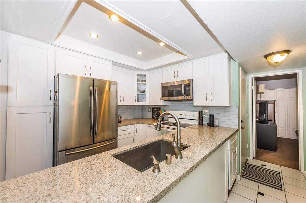 This beautiful condo is located in the great community of Quail Ridge. One large master bedroom with a loft that is currently being used as a second bedroom. The kitchen was completely remodeled with quartz counter tops, new flooring, soft closing hinges, white shaker cabinets, lazy susan, spice rack and a glass tile back splash. The bathroom was remodeled with quartz counter tops, newer tub, new plumbing and new flooring. This great end unit is located on the interior of the community close to the pool and spa. There is an assigned carport that is located right in front of the unit for convenience. The HOA includes water, hot water, trash, exterior maintenance, landscaping, pool, spa, tennis courts and club house. Near Cal State Fullerton, Brea Mall, dining and Ketchum University! Easy to jump on the 57 freeway.