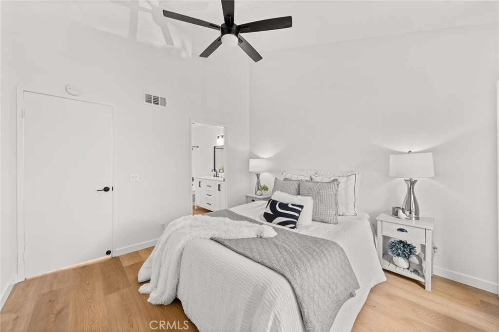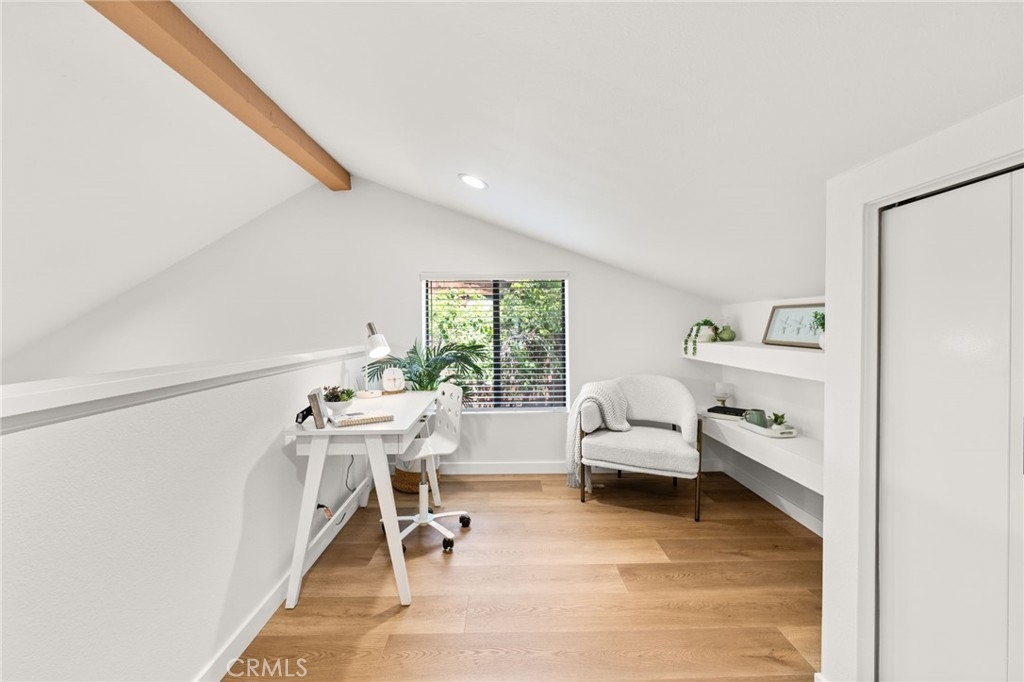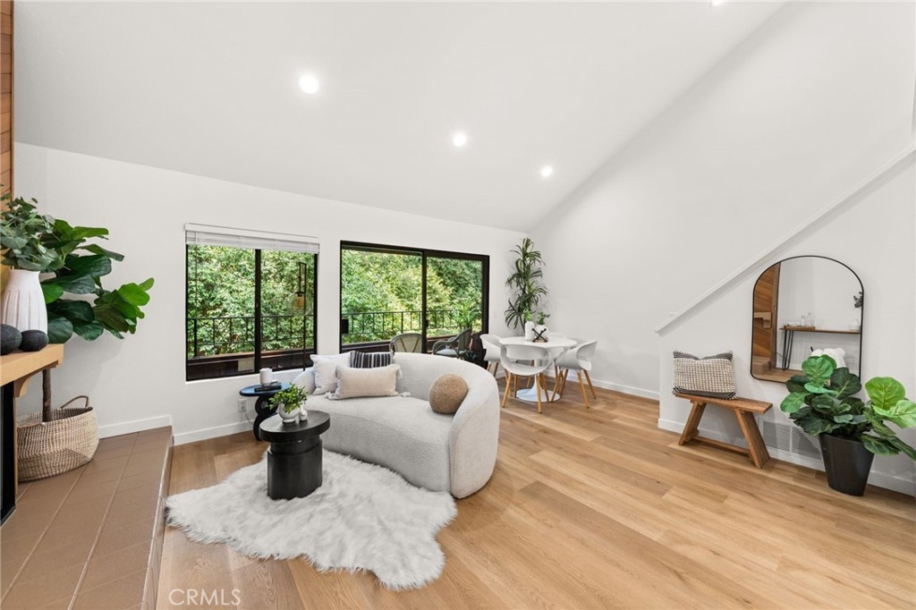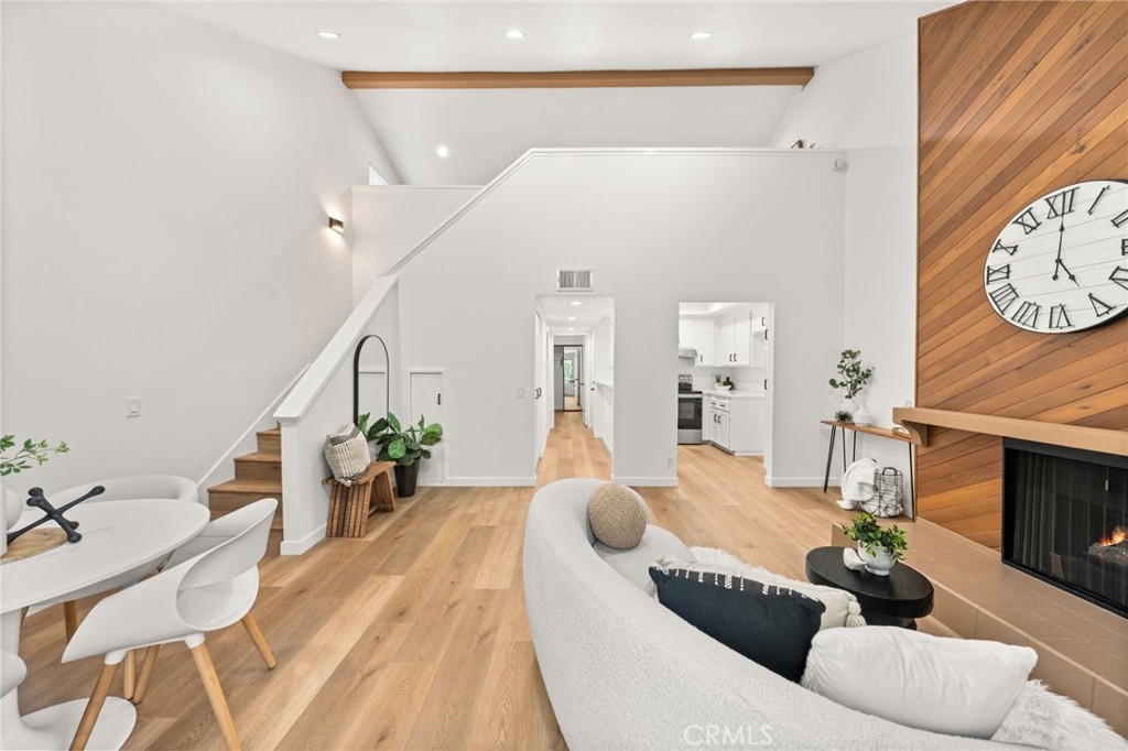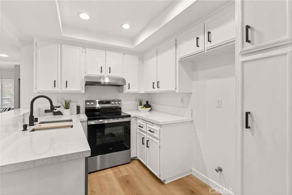 Beautiful 2 bedroom condo located in the serene community of Quail Ridge in Fullerton, complete with streams, waterfalls and nature paths all in a secluded wooded environment, offering a sense of tranquility and a true connection to nature. This condo has been completely remodeled and is ready for it’s new owner. The remodeled kitchen features white cabinets accented with contemporary black hardware, gorgeous quartz countertops, new stainless steel sink with fitted cutting board, drying rack and strainer and is complimented with a modern black faucet and new stainless steel appliances. Open and spacious living room and dining area with vaulted ceiling, cozy wood panel fireplace, storage closet under the stairs and a slider leading to a private balcony with tranquil view of trees and flowing stream. The balcony offers a spacious outdoor storage room. Other features include new recessed lighting, new paint and baseboards and newly installed light natural wood luxury vinyl flooring throughout (including stairs), new hardware on interior doors and indoor stackable laundry closet. Comfortable Master Bedroom, with dual closets, new modern black ceiling fan, cozy little nook area with window that looks out to the community and an en-suite beautifully remodeled bathroom, complete with new dual vanity, quartz countertop, light fixture, mirror, sinks, toilet and plumbing hardware. Secondary Bedroom at top of stairs is large open loft concept with an alcove area perfect for an office and features a closet, attractive built-in shelves and recessed lighting. Condo includes a dedicated covered carport parking space right in front of the unit and lots of guest parking. In addition to the abundance of natural elements, the community offers two tennis courts, and a large pool and spa and clubhouse all in a resort like setting. It is across the street from Craig Regional Park and is in close proximity to Brea Mall, Cal State Fullerton, freeways, restaurants and shopping.