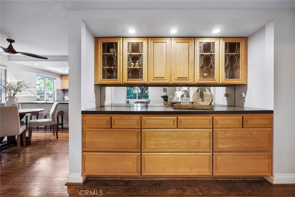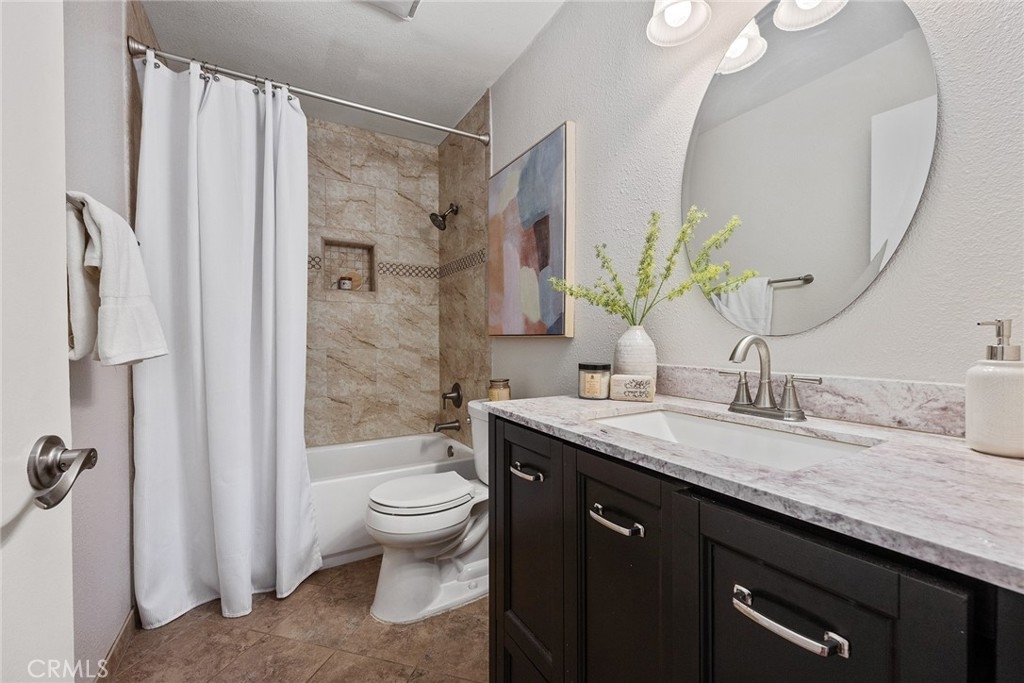 Welcome to your personal oasis in the heart of the renowned Quail Ridge community—celebrated for its unique resort-style ambiance, surrounded by mature trees, tranquil streams, and cascading waterfalls. This ground-level, single-story gem offers seamless accessibility with NO steps, making it perfect for all ages. Prime Location Across from Craig Park. Situated directly across from Craig Park, you'll have endless opportunities for outdoor activities—play, run, or enjoy quality time with friends and family. Plus, you're just moments away from Downtown Brea, Downtown Fullerton, CSUF, premier shopping, entertainment, and have easy access to the 57 FWY. Stunning Interior Features Spacious Living Room: Cozy up by the fireplace or admire the serene views through sliding doors that lead to a large patio with a storage room, all overlooking lush trees, streams, and waterfalls. Elegant Master Suite opens to a private patio adorned with artificial grass and pavers, offering a mountain-retreat vibe where you can unwind and enjoy leisure time. Modern Upgrades: Features all double-pane windows and sliding doors, scraped and textured ceilings with recessed lighting, and ceiling fans in the dining room and both bedrooms. Gourmet Kitchen equipped with a pantry featuring roll-out shelves and tile flooring, the kitchen seamlessly opens to the dining room with laminate flooring and a ceiling fan. Luxurious Bathrooms:Both bathrooms have been meticulously remodeled with quartz and marble countertops and elegant tile floors. The master bathroom boasts a convenient walk-in shower for a spa-like experience. Energy-Efficient Comfort: Stay comfortable year-round with the state-of-the-art HVAC unit, completely replaced in 2019 with the most energy-efficient model on the market. Enjoy optimal climate control while saving on energy costs. Resort-Style Amenities: As part of the community, indulge in exceptional amenities: Sparkling Swimming pool and spa; Modern clubhouse for gatherings; Two tennis courts for recreation; Comprehensive exterior maintenance. Convenience and Accessibility: This unit comes with two assigned carports and is MOVE-IN READY! With no steps to navigate, it offers effortless living in a picturesque setting. Don't Miss This Jewel in Paradise:Experience the perfect blend of luxury, comfort, and convenience in a home that feels like a permanent vacation. This is more than just a home—it's a lifestyle awaiting you. See it yourself and make it yours today!