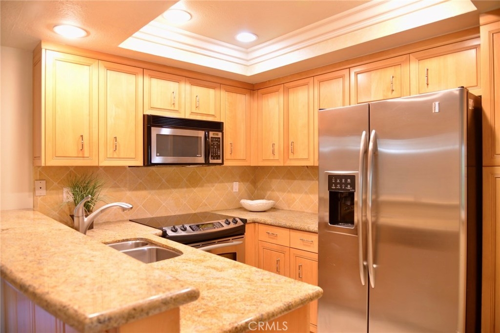 Welcome to a sought after Quail Ridge Community in Fullerton, ideally located near downtown Fullerton, Brea and Brea Mall, Entertaining and Dining, Walking Distance to Cal State Fullerton, Western Law School and School of Optometry. Enjoy your leisure time or morning run in a beautiful Craig park right across the street from you. Newer kitchen cabinets with Stainless Steel appliances, Granite Counter Tops, Tile floor, Scraped Ceilings throughout with Recessed Lighting, Efficient Double Pane Windows, Tile Floor, New Carpet in the bedroom, Remodeled Bathroom, Inside Laundry hook-ups. Living Room with Cathedral Ceiling, Warm and Cozy Fireplace, Built-in Desk & Entertainment Center (TV is included), Wide Sliding Door to the balcony, faces mature trees, green belt and babbling creeks with waterfalls that you will enjoy all year round, giving you the feeling of vacationing in the mountains. Community Facilities include a large recently remodeled Club house for family and friends gathering, Pool, Spa, 2 Tennis Courts. HOA dues include Fire Insurance, Water, HOT WATER, Trash and Roof Maintenance. Exceptional Value in Orange County. Easy access to 57/91 Freeways.