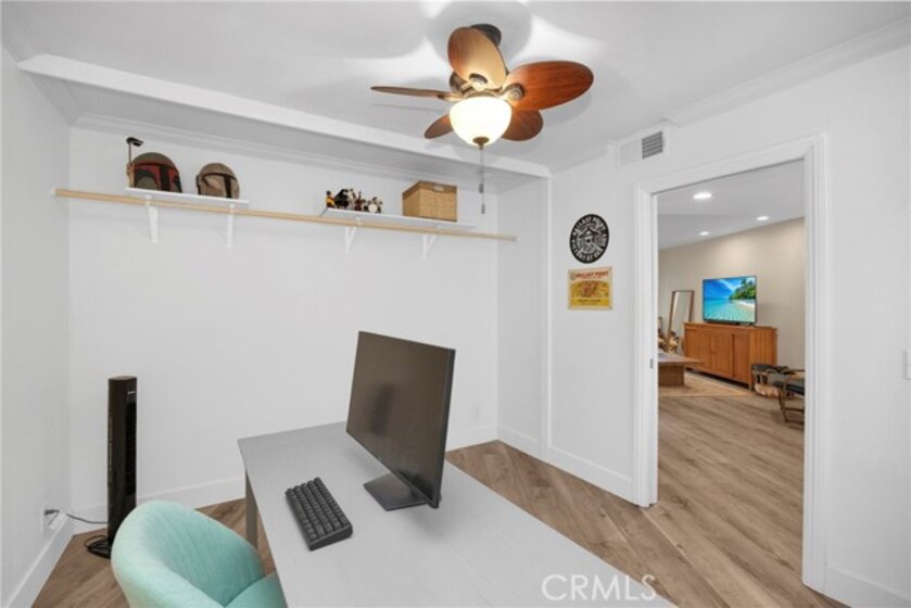 Welcome to your new home in the peaceful and serene community of Quail Ridge! This charming 2 bedroom, 2 bathroom home offers a unique bonus feature with a converted 3rd bedroom, perfect for guests or a home office. Step inside and be greeted by a spacious living room with newer vinyl flooring that flows into the open concept kitchen, completed with upgraded quartz countertops, custom cabinets and modern appliances. Master bath is upgraded. Venture outside to the backyard oasis, where you'll find a tranquil pond and a view of the association clubhouse. Imagine relaxing on the patio, listening to the soothing sounds of the water and enjoying the peaceful surroundings. The amenities don't stop there- take the stairs in the backyard to access the HOA clubhouse, where you can enjoy the pool/jacuzzi, gym, tennis courts and rentable spaces for parties/gatherings. Nearby is Cal State University of Fullerton, shopping centers, restaurants and entertainment. This home truly offers the perfect balance of comfort, convenience and luxury living. Don't miss your chance to own this stunning condo in Quail Ridge!